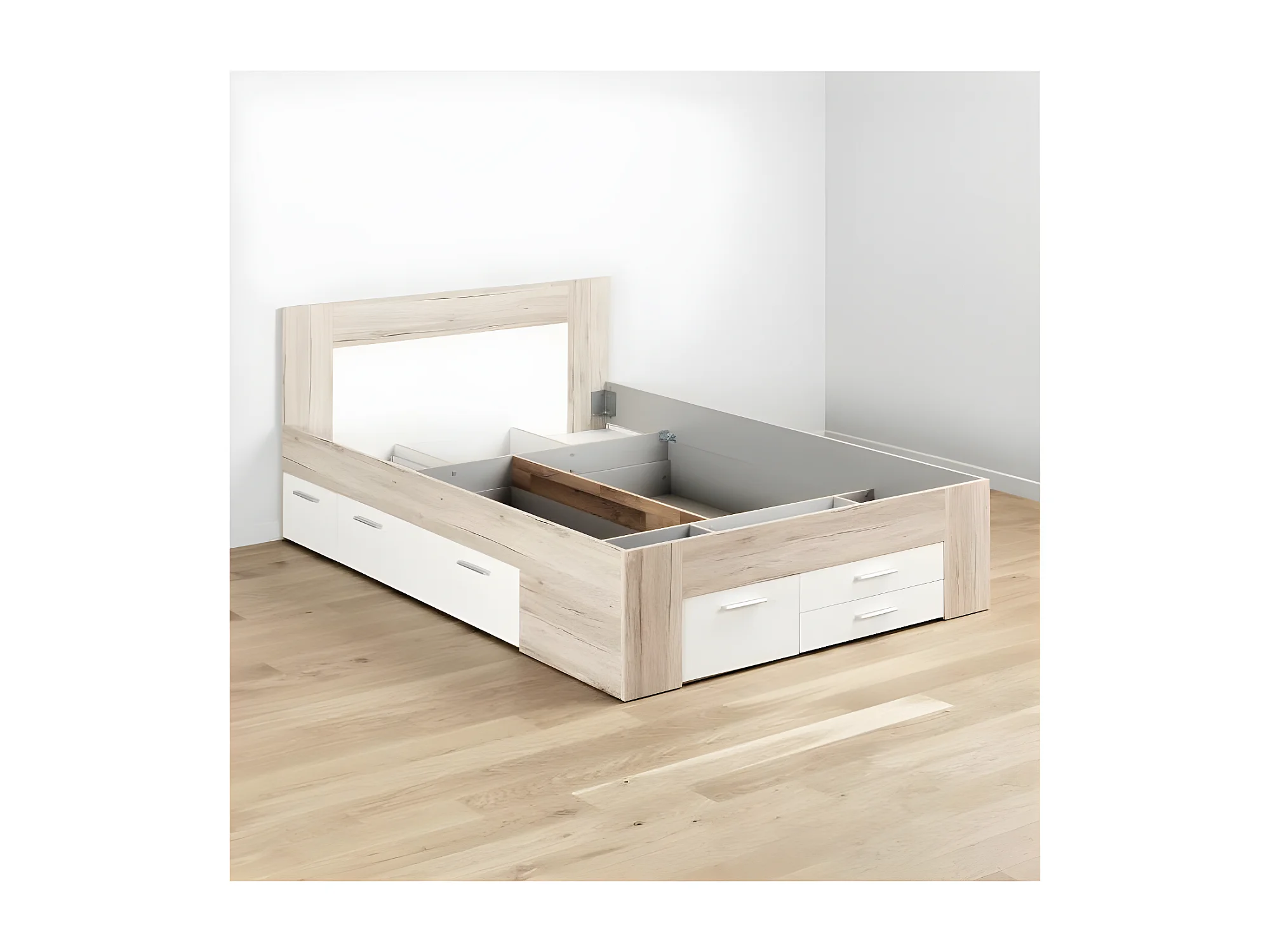 Lit adulte contemporain UDINE chene cendré et blanc mat avec rangement - 140 x 200 cm