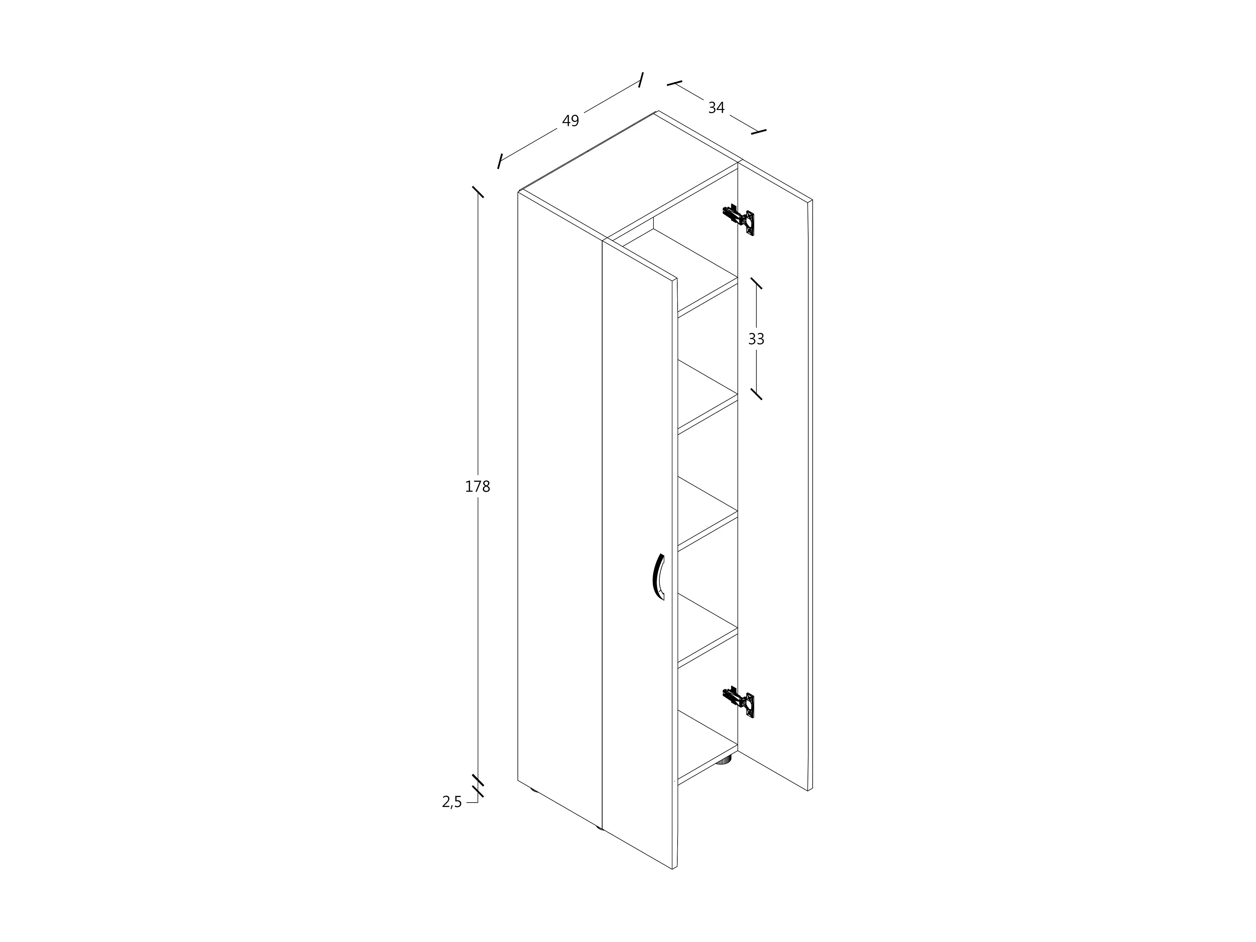 Office cabinet Ulas Honey oak H. 178 x W. 49 x D. 34 cm