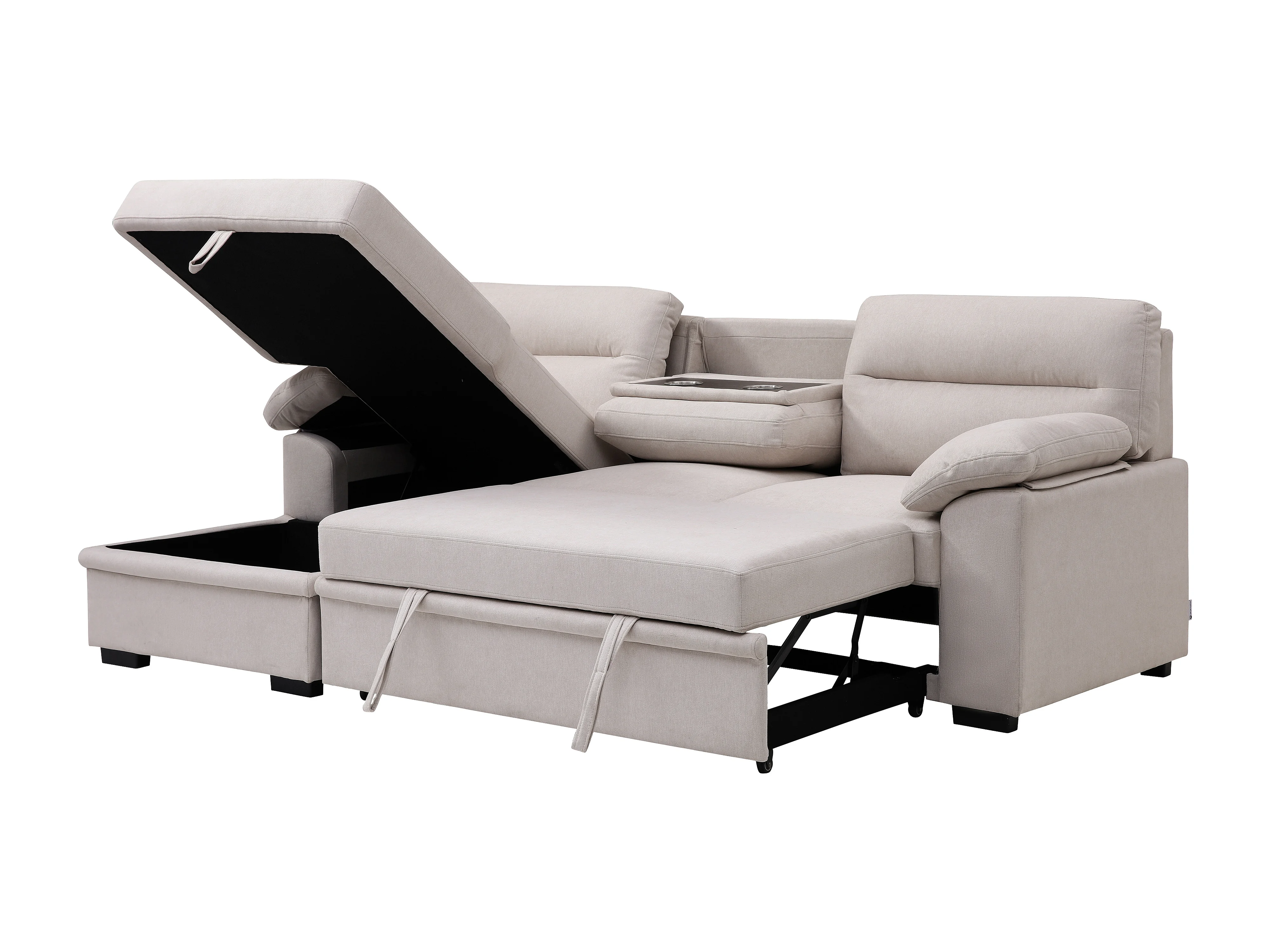 Canapé d'angle gauche convertible en tissu beige avec tablette ULENIO