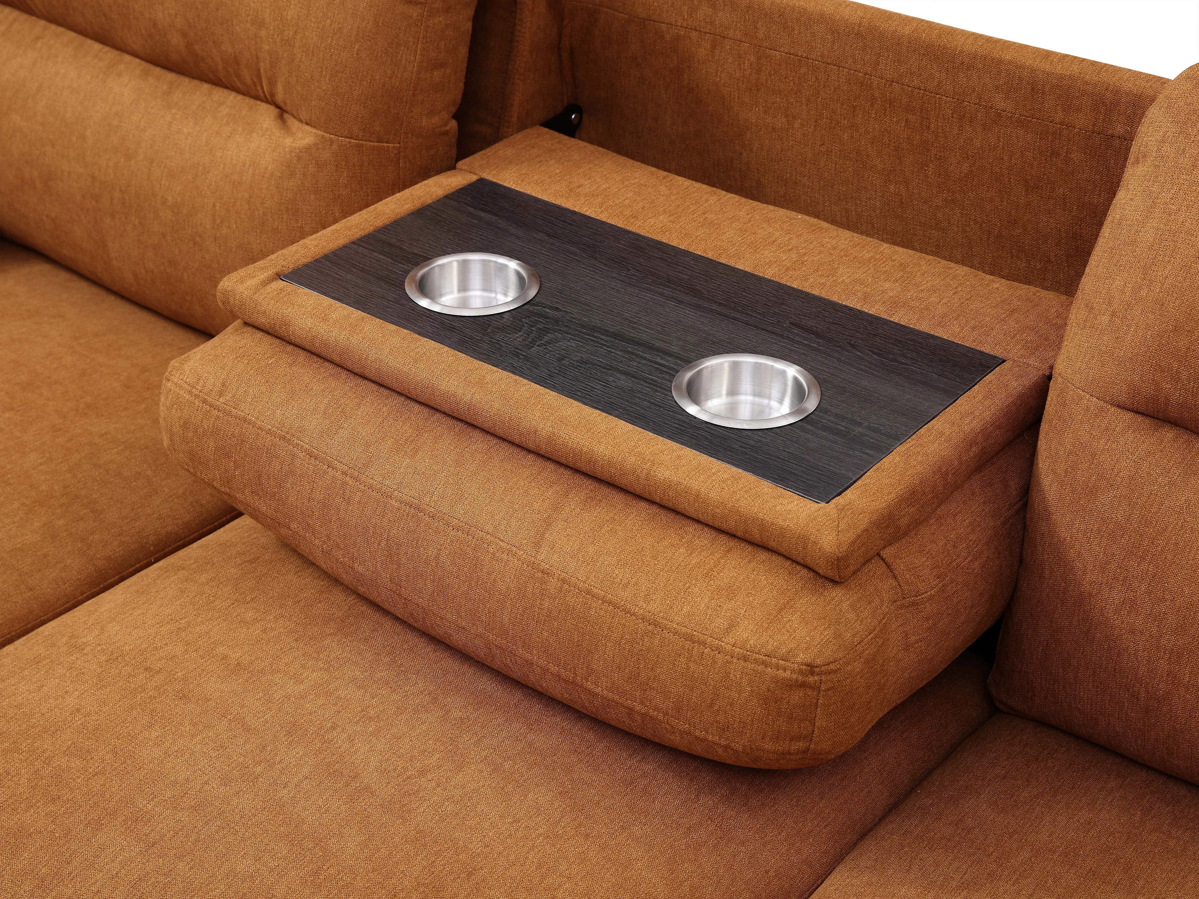 Canapé d'angle gauche convertible en tissu terracotta avec tablette ULENIO