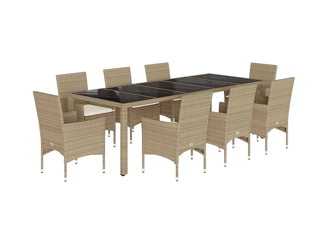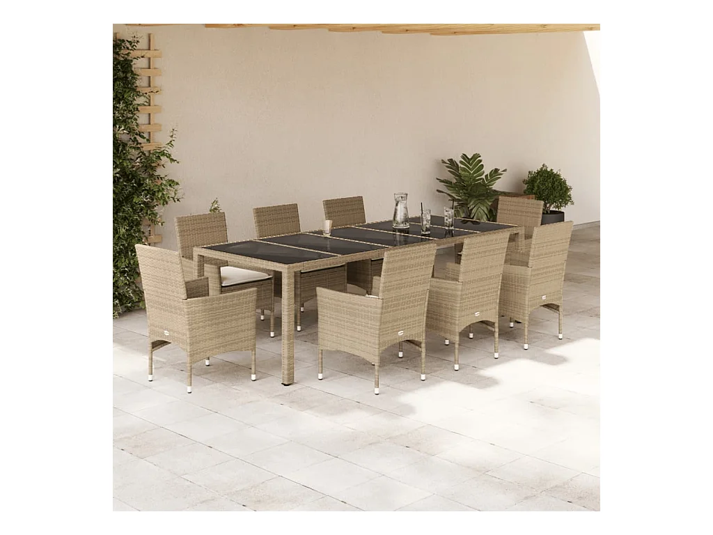 Ulric Ensemble à manger de jardin et coussins 9 pcs beige rotin verre