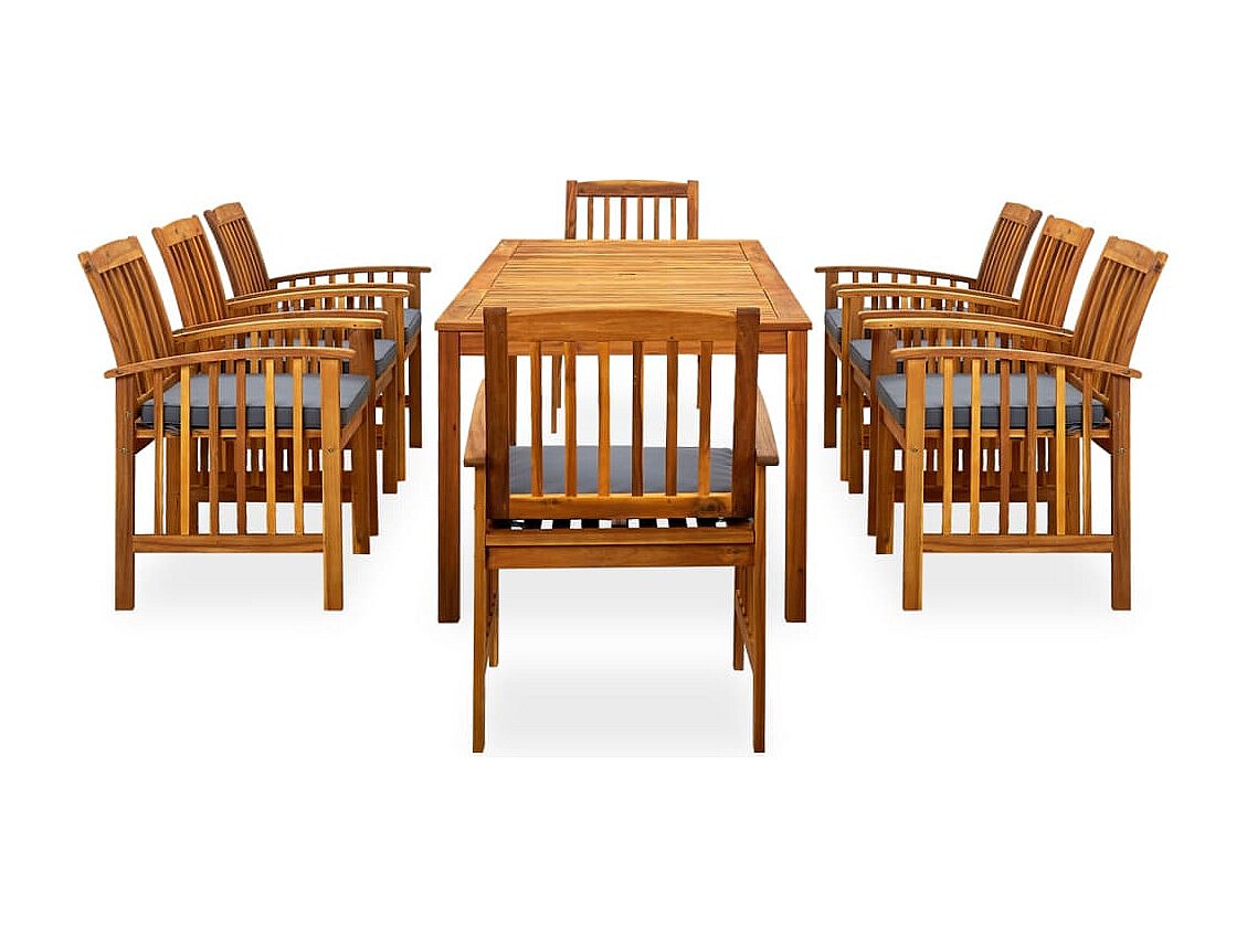 Ulvin Ensemble à manger de jardin 9 pcs avec coussins Acacia solide