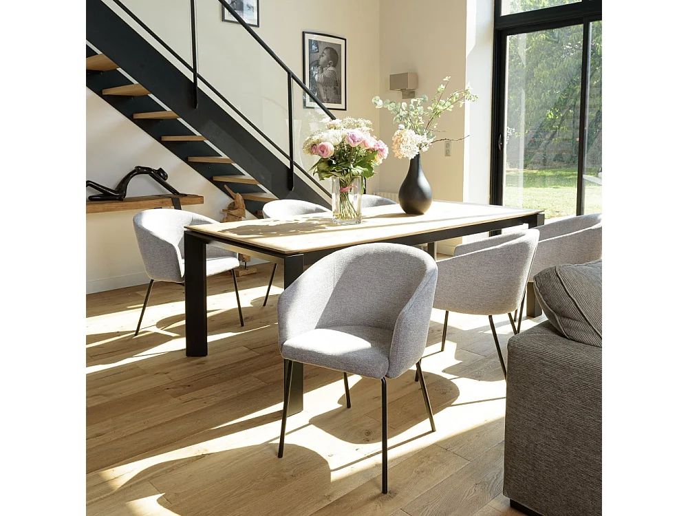 ULYSSE - Lot de 2 chaises tissu gris clair pieds acier noir