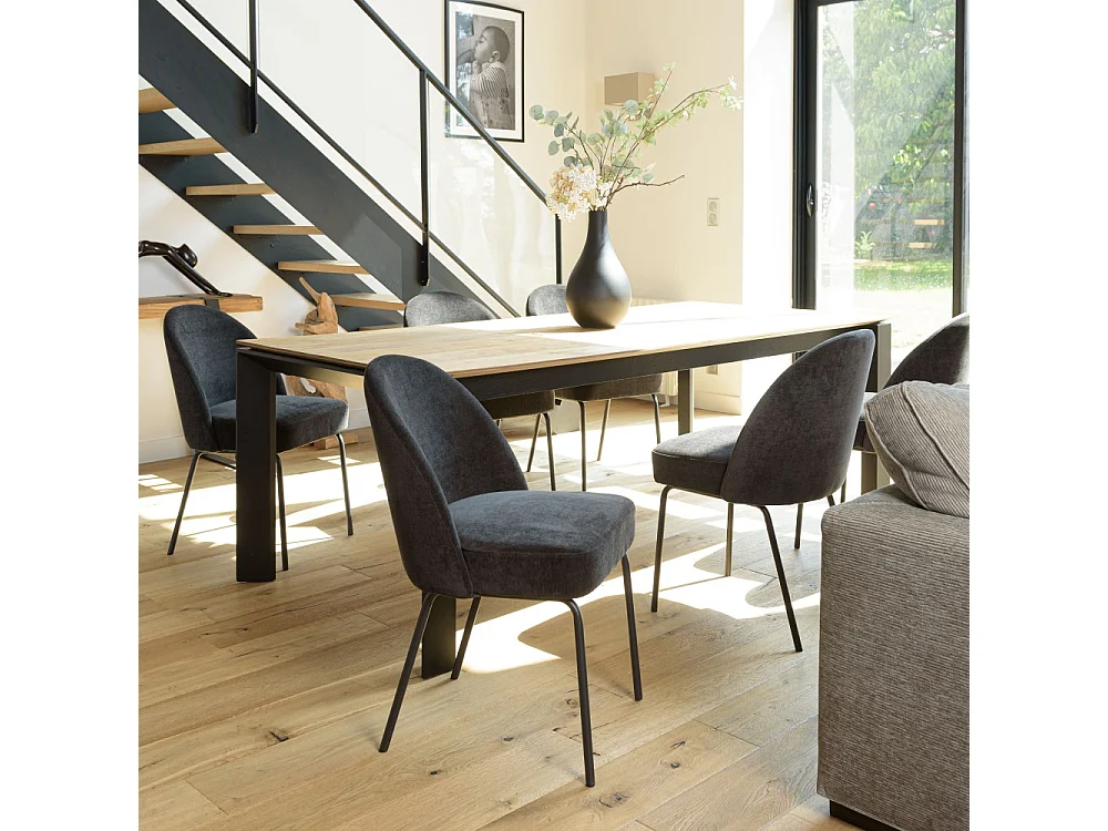ULYSSE - Lot de 2 chaises tissu noir pieds acier noir