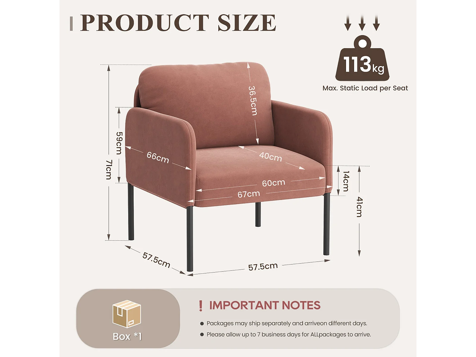 Fauteuil Salon Confortable Rose Velours LQD2788