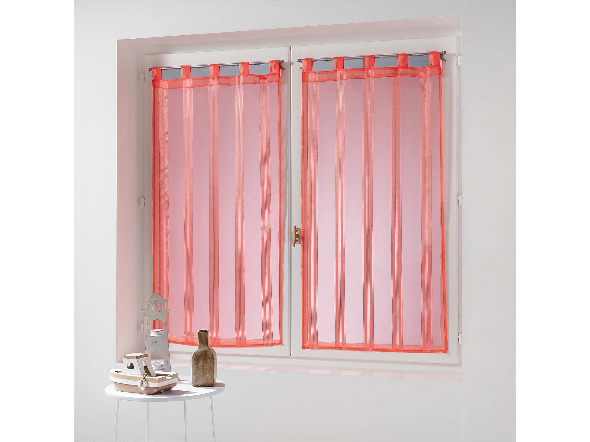 Une paire de voile raye jacquard bandas corail 60 x 90 cm