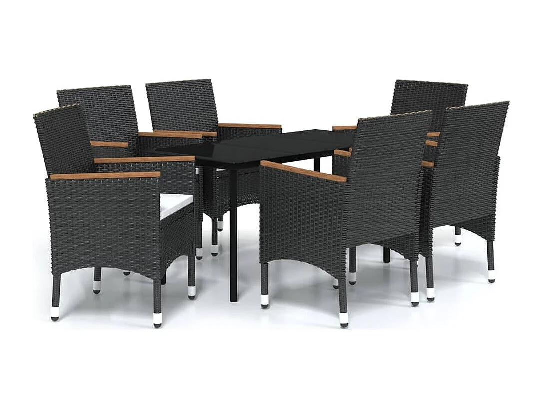 Union Ensemble à manger de jardin avec coussins 7 pcs Noir