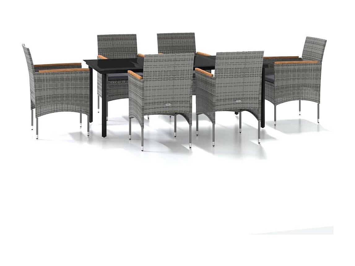 Union Ensemble à manger de jardin coussins 7pcs Gris et noir