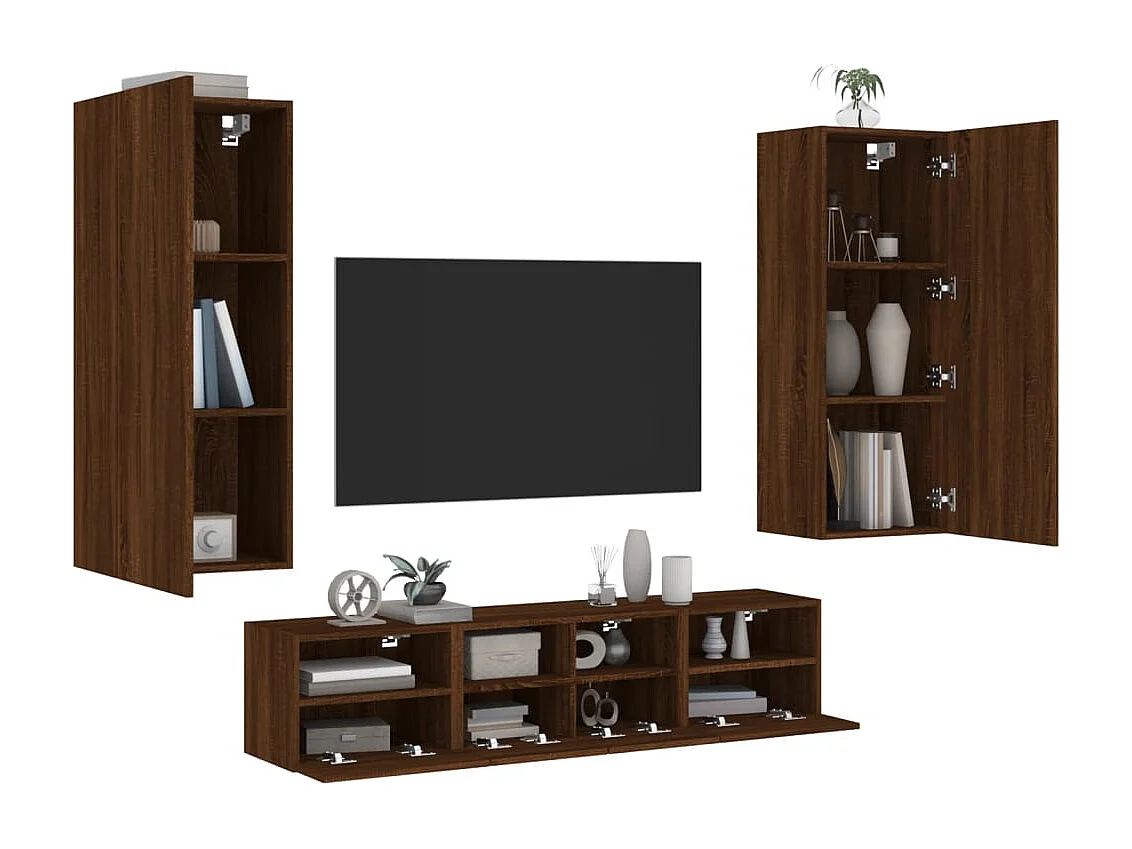 Unités murales TV 5 pièces chêne marron bois d'ingénierie