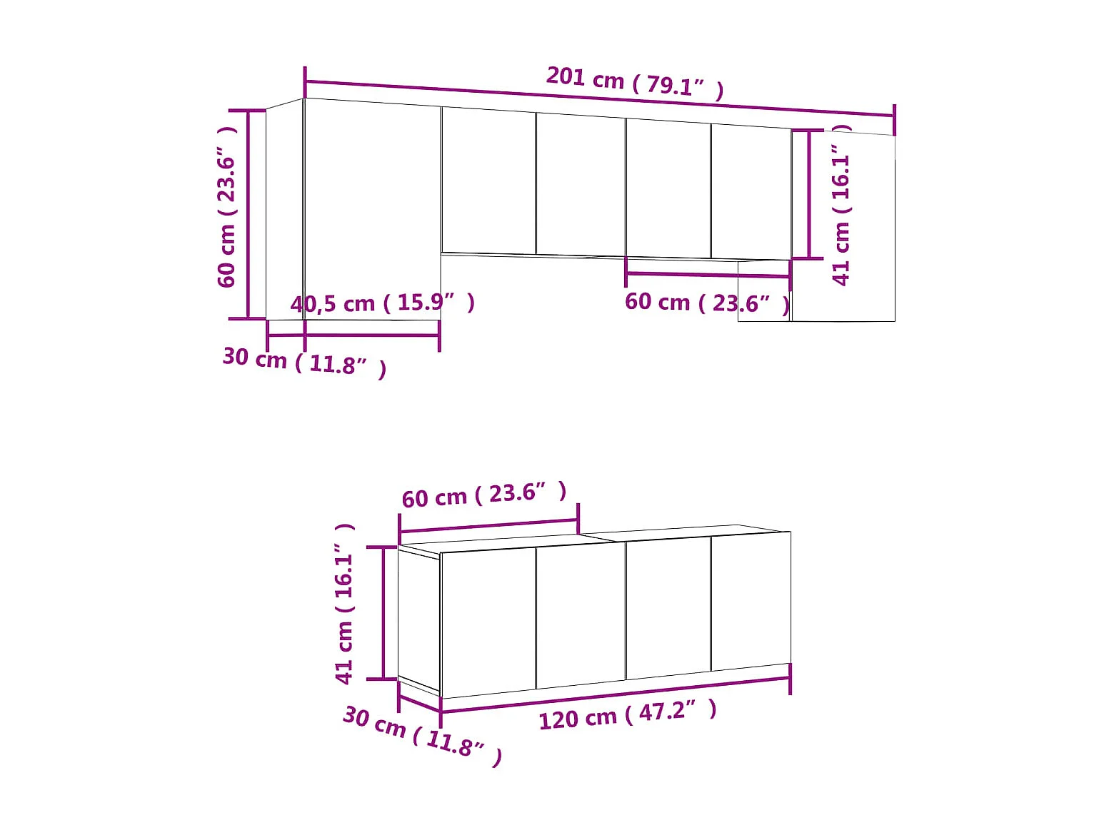 Unités murales TV 6 pcs chêne marron bois d'ingénierie