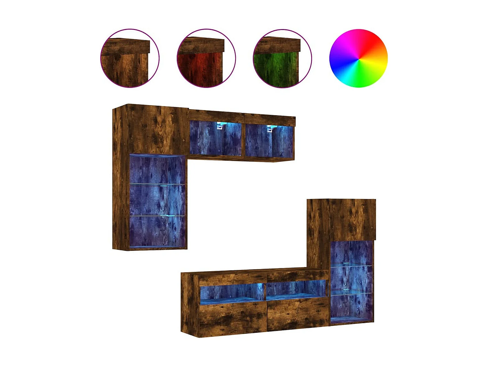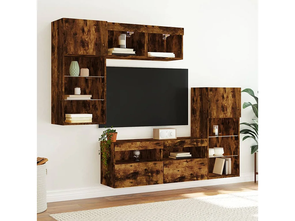 Unités murales TV avec LED 5 pièces chêne fumé bois d'ingénierie