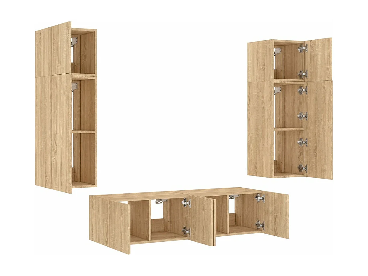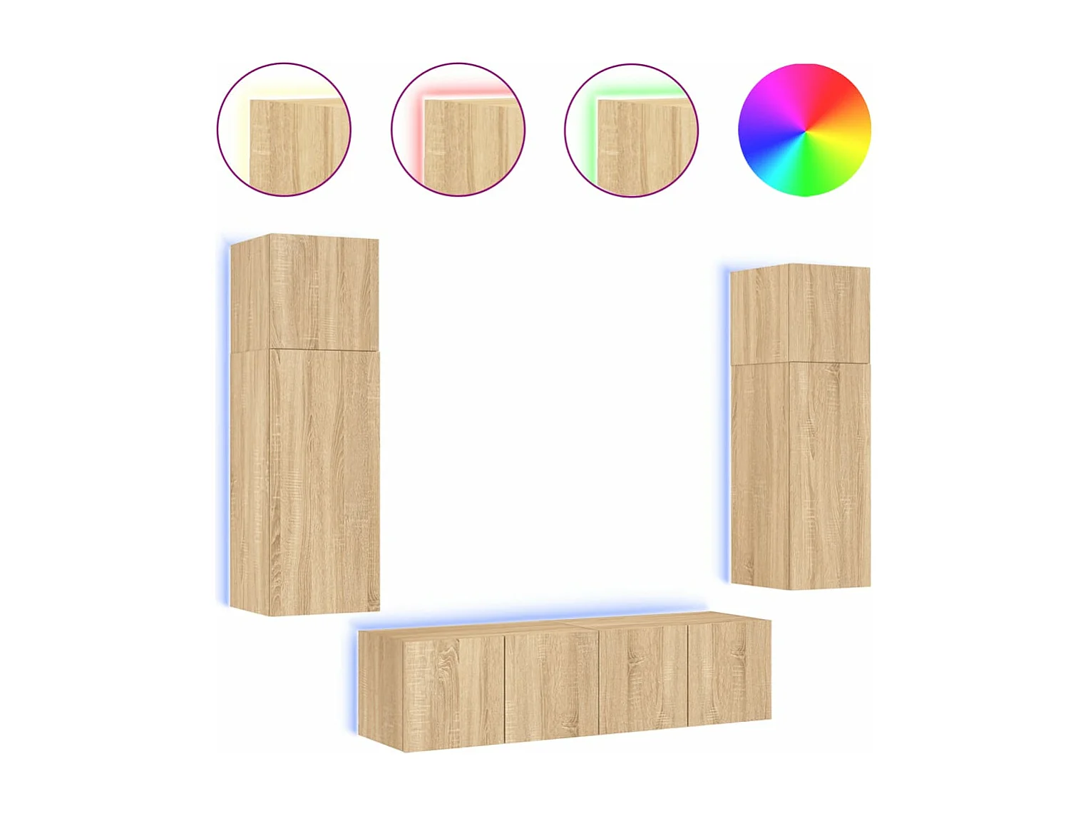 Unités murales TV avec LED 6 pièces chêne sonoma bois d'ingénierie