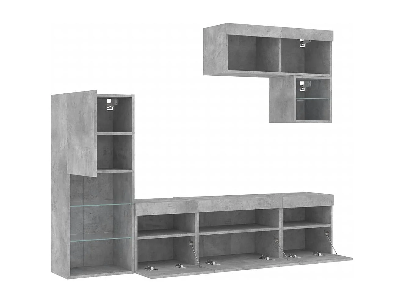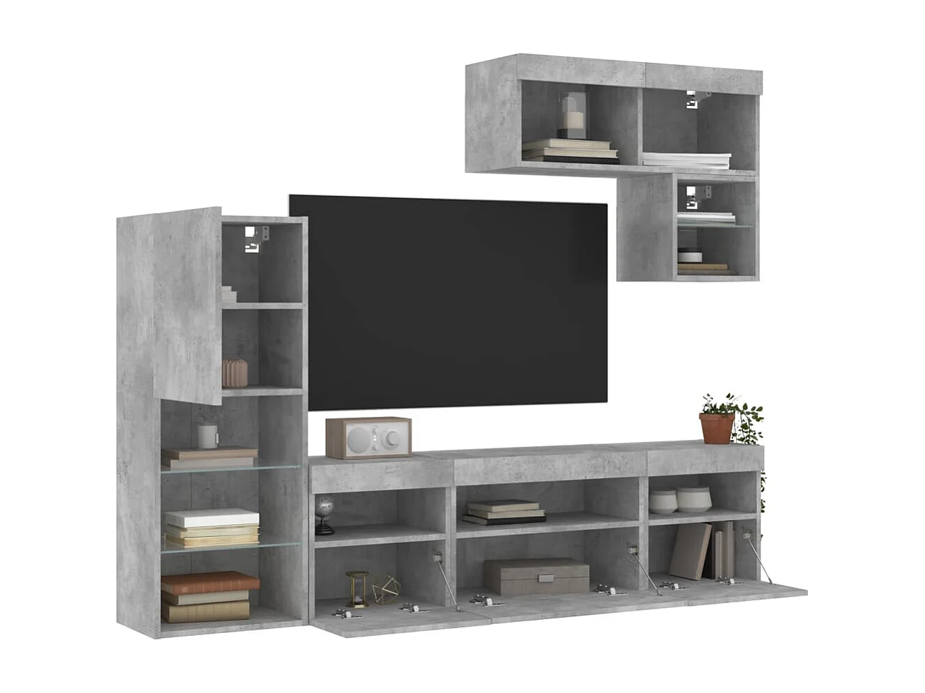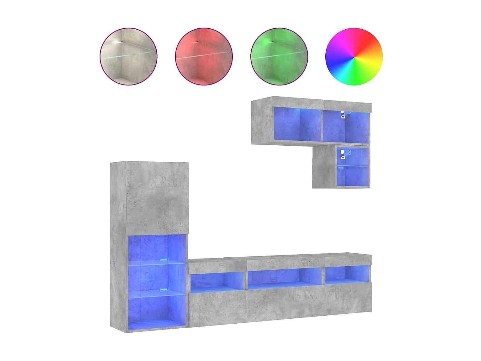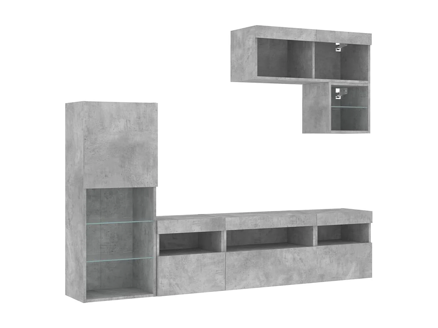 Unités murales TV avec LED 6 pièces gris béton bois d'ingénierie