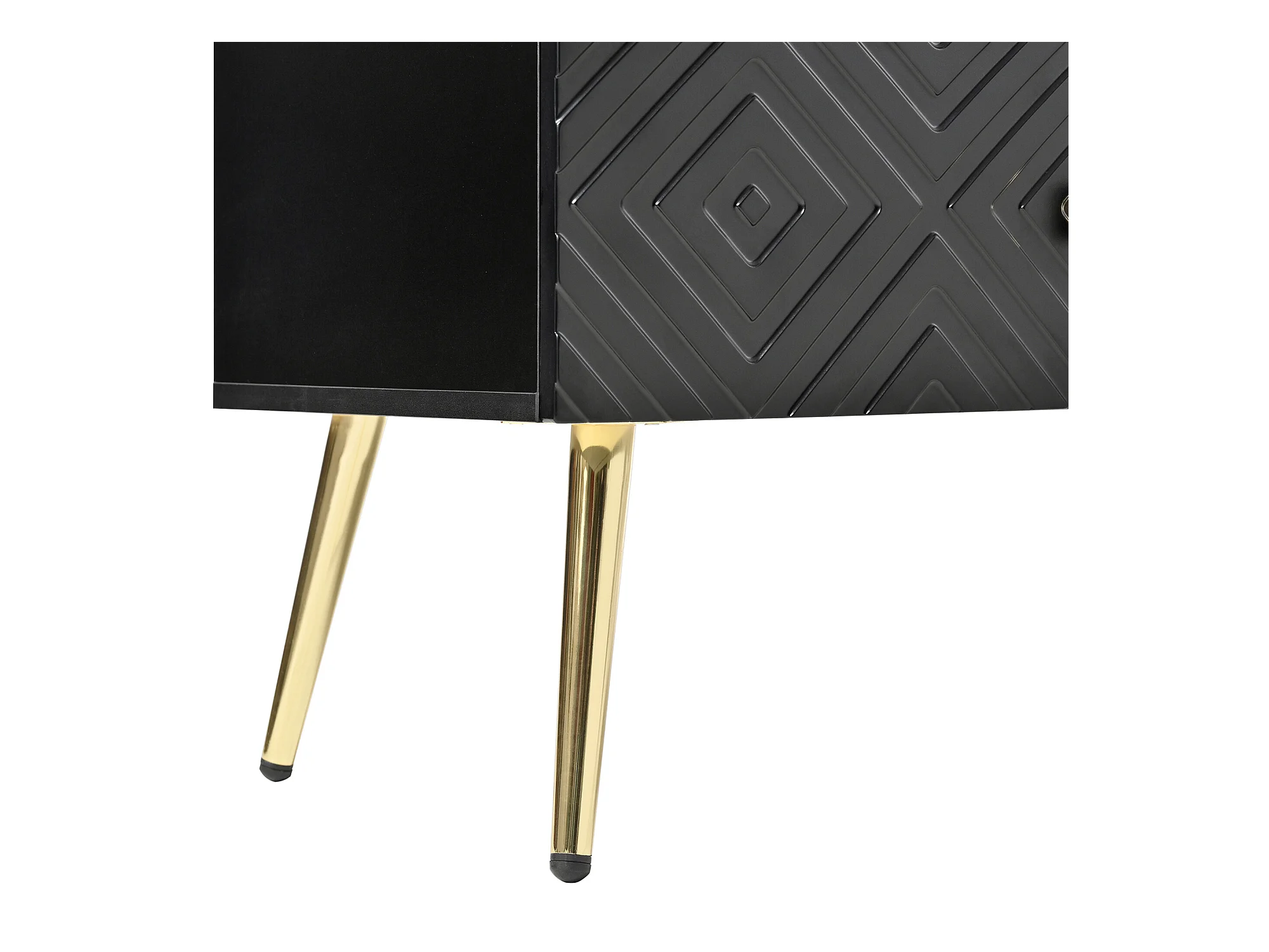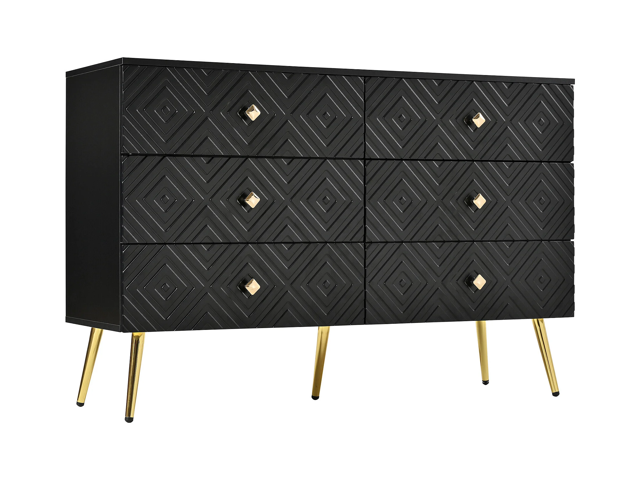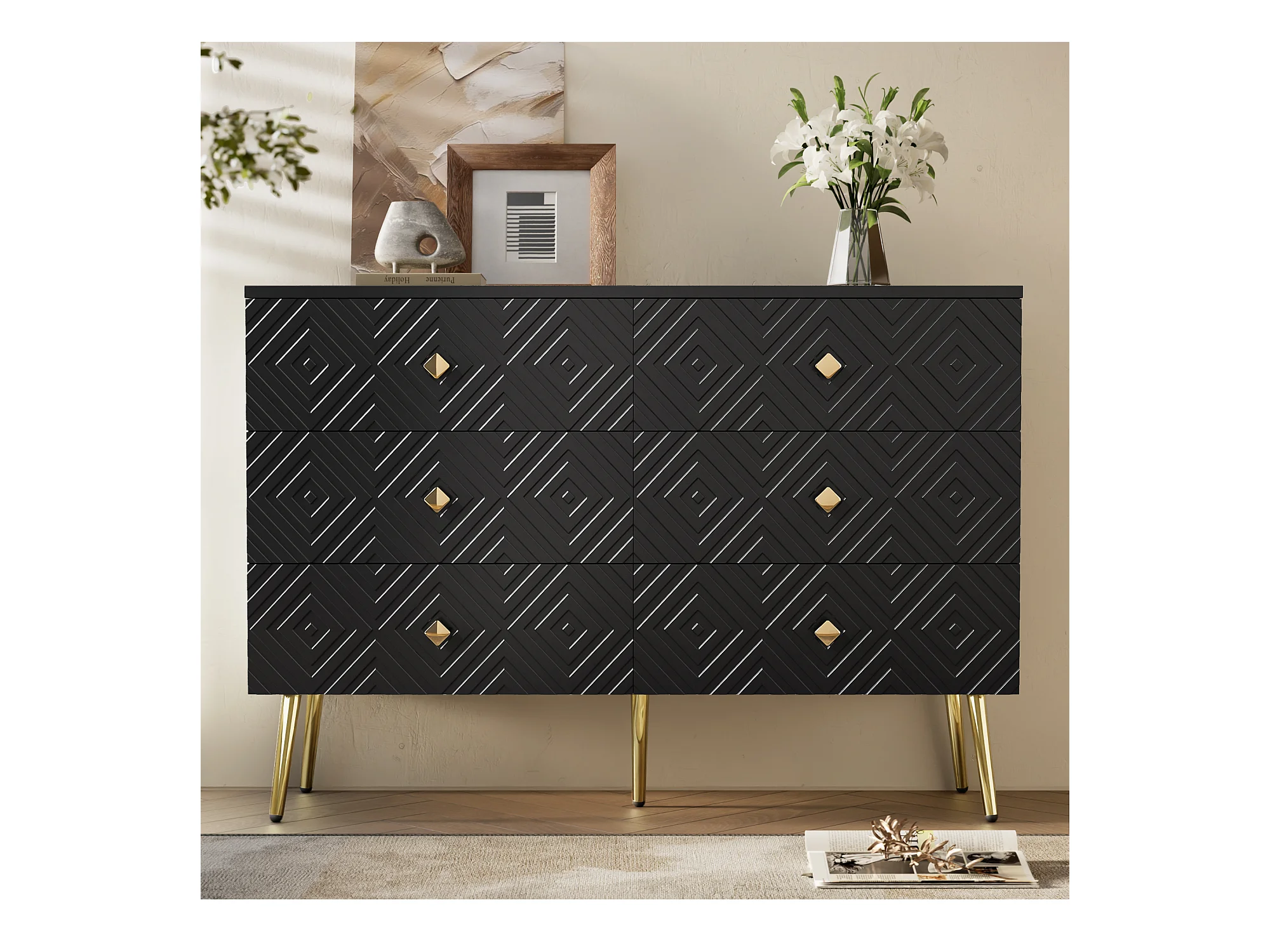 URBAN MEUBLE Buffet 6 tiroirs noire avec motifs géométriques et pieds dorés