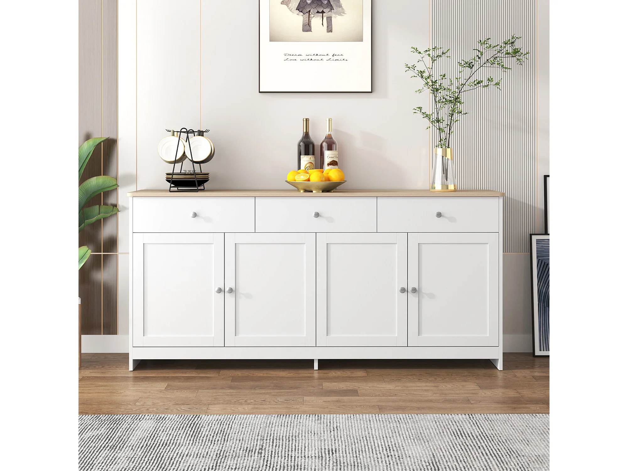 URBAN MEUBLE Buffet blanc et effet bois 4 portes 3 tiroirs 160*37*75cm