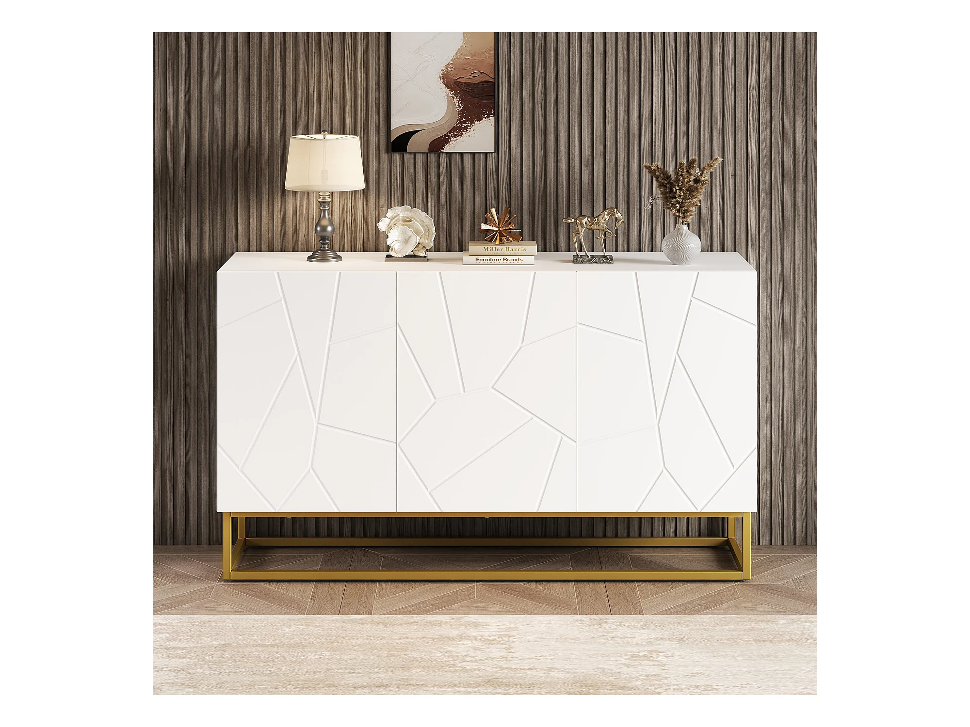 URBAN MEUBLE Buffet contemporain blanc motif texturé accent doré