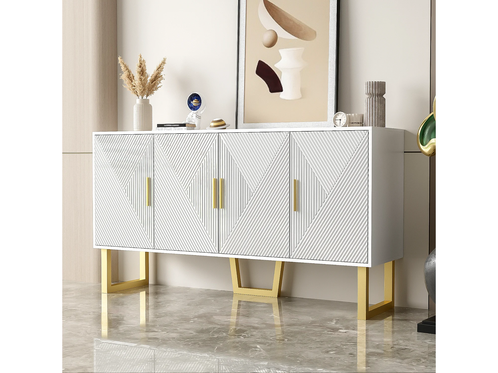 URBAN MEUBLE Buffet luxe blanc laqué portes texturées et accents dorées