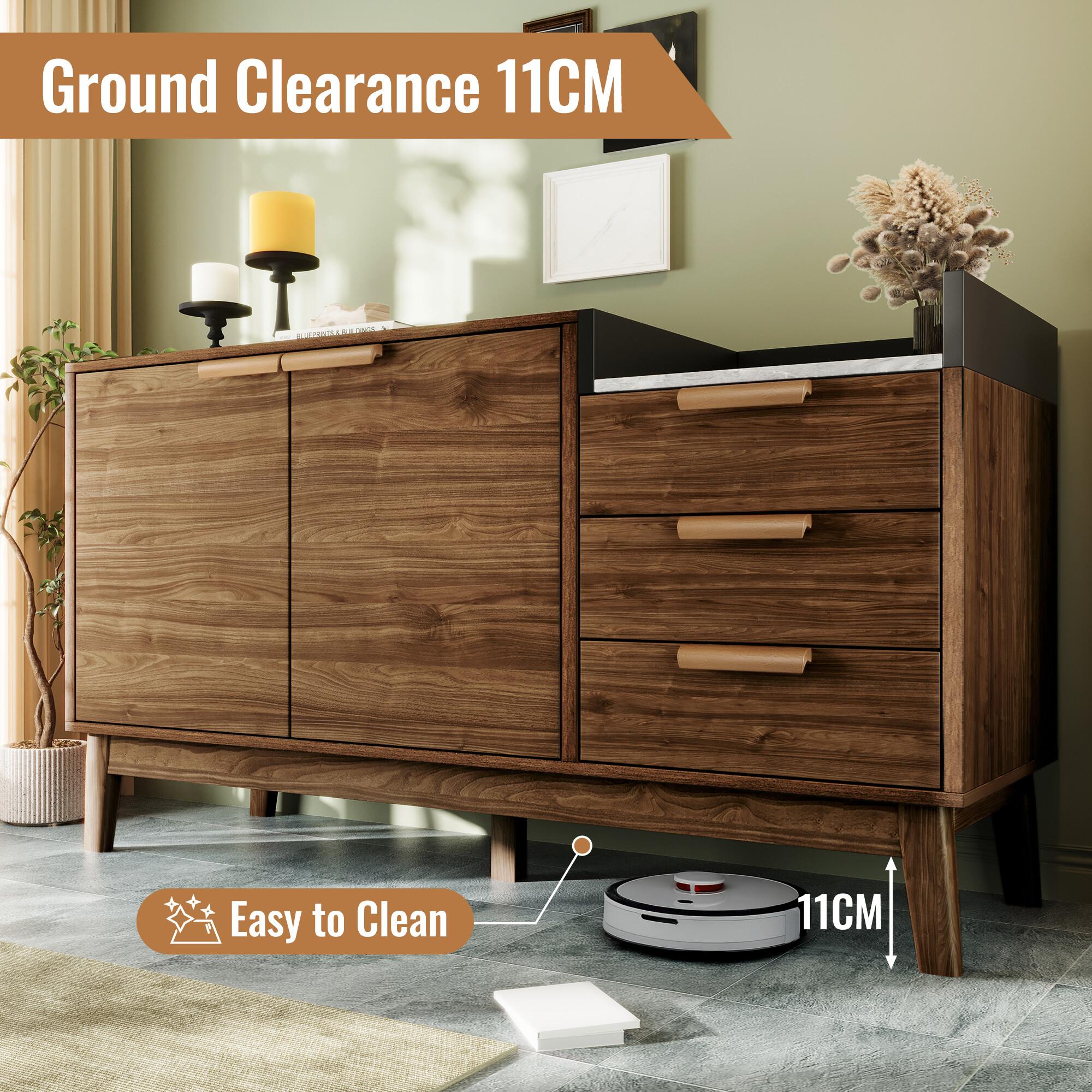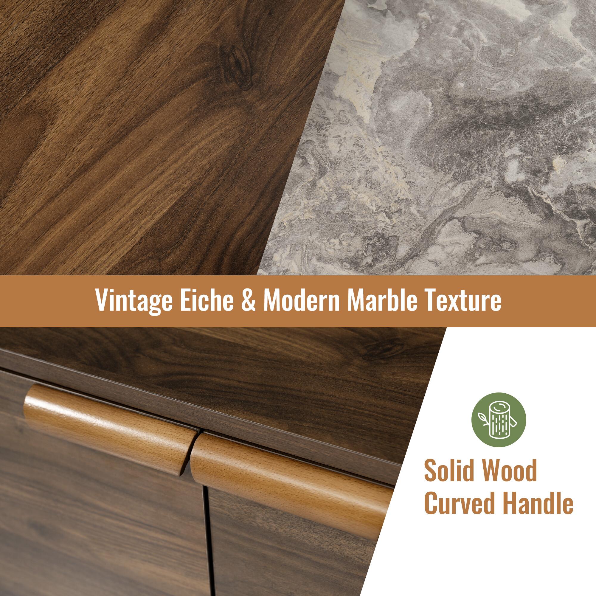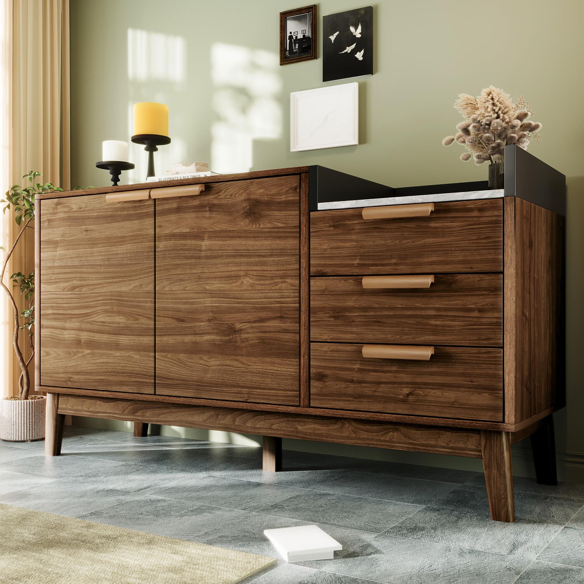 URBAN MEUBLE Buffet marron effet bois 2 portes 3 tiroirs effet faux marbre gris blanc