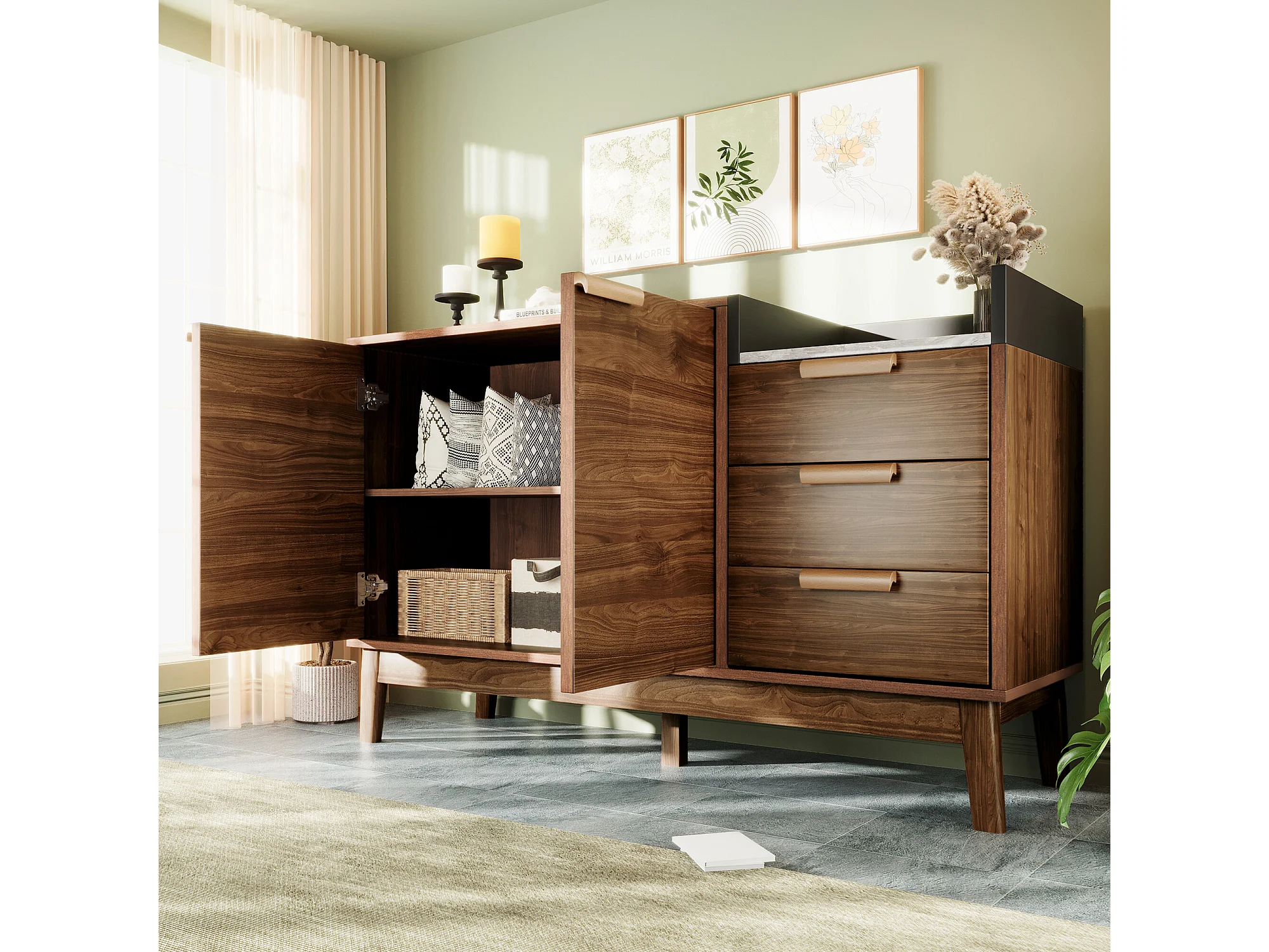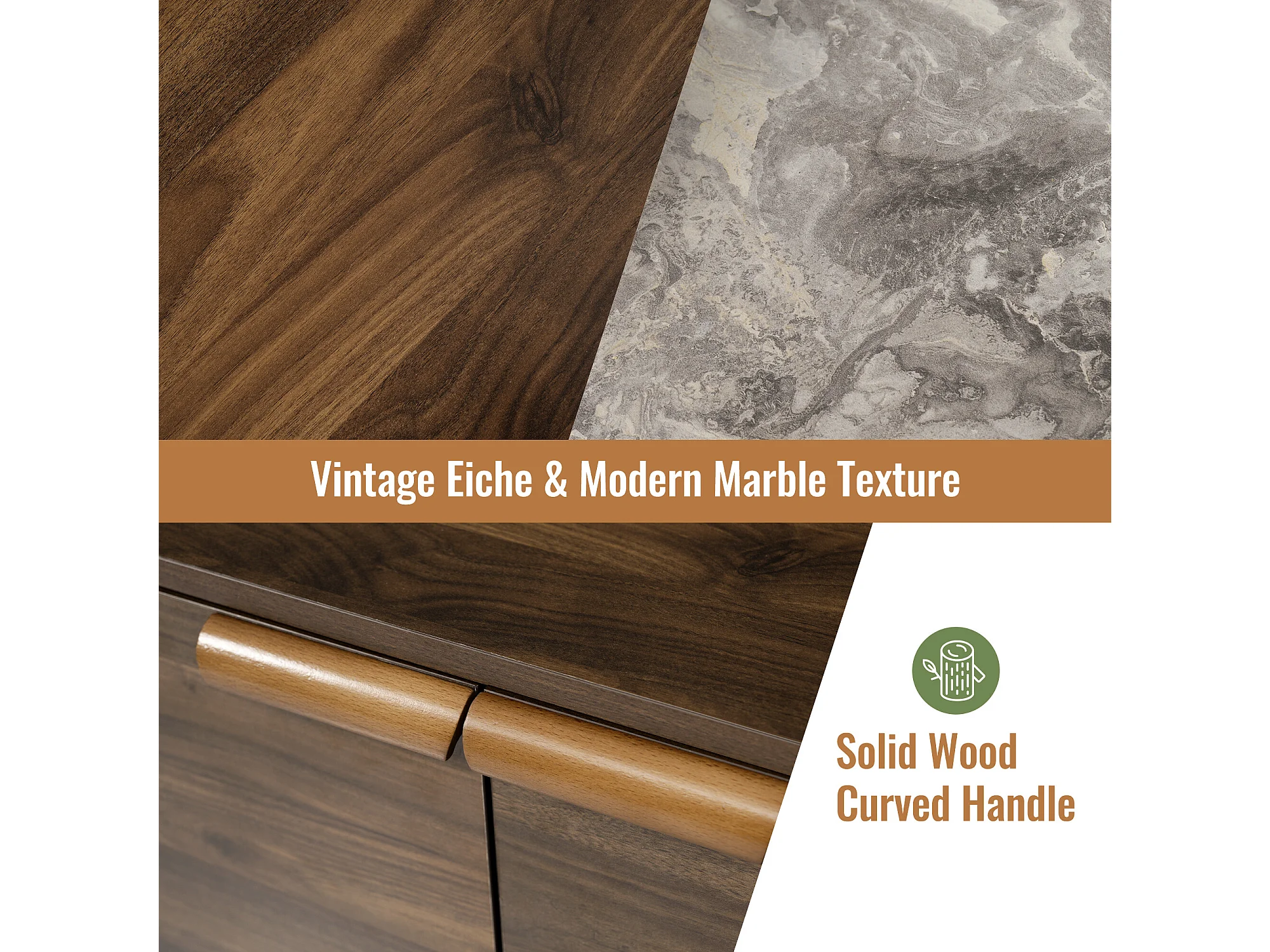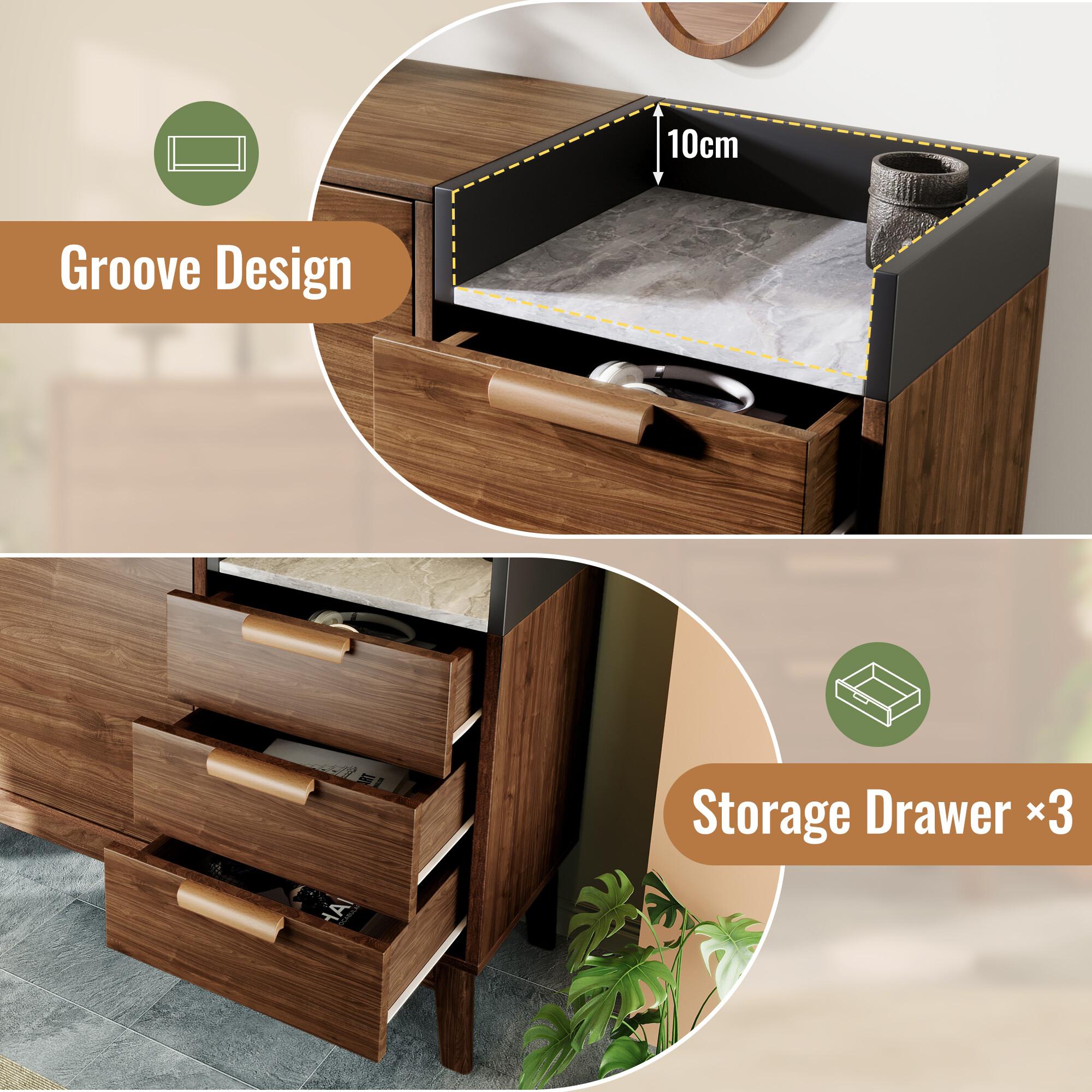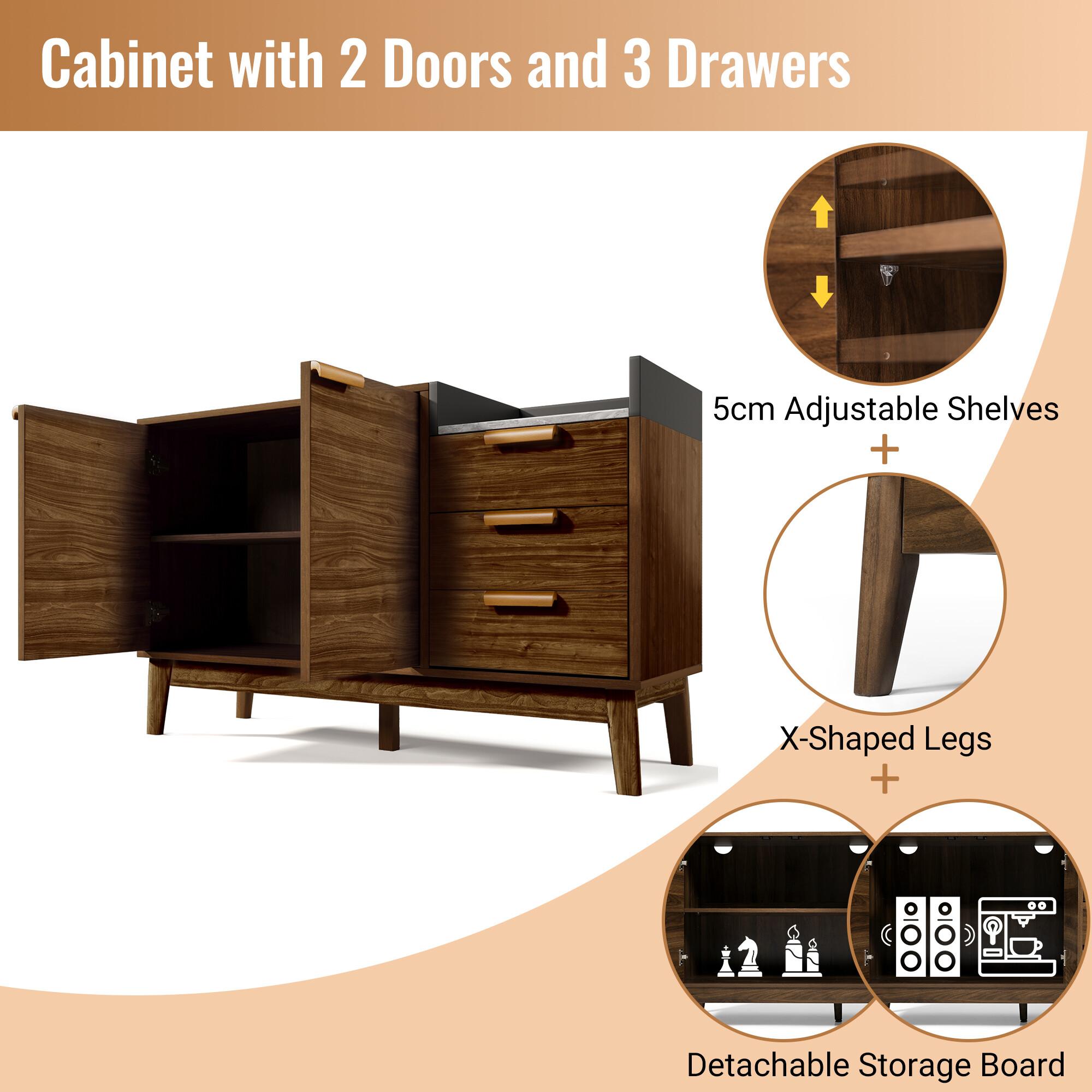 URBAN MEUBLE Buffet marron effet bois 2 portes 3 tiroirs effet faux marbre gris blanc