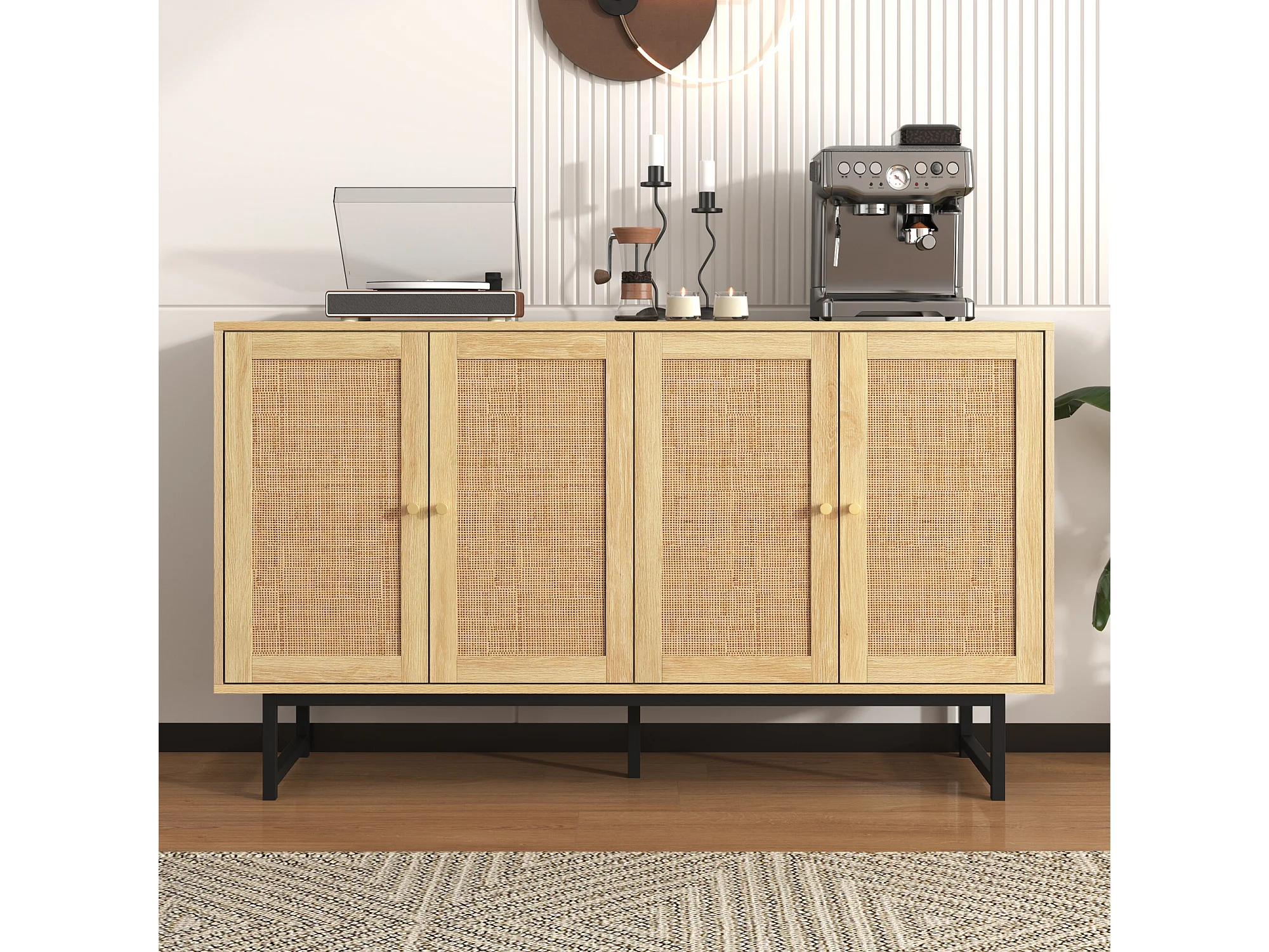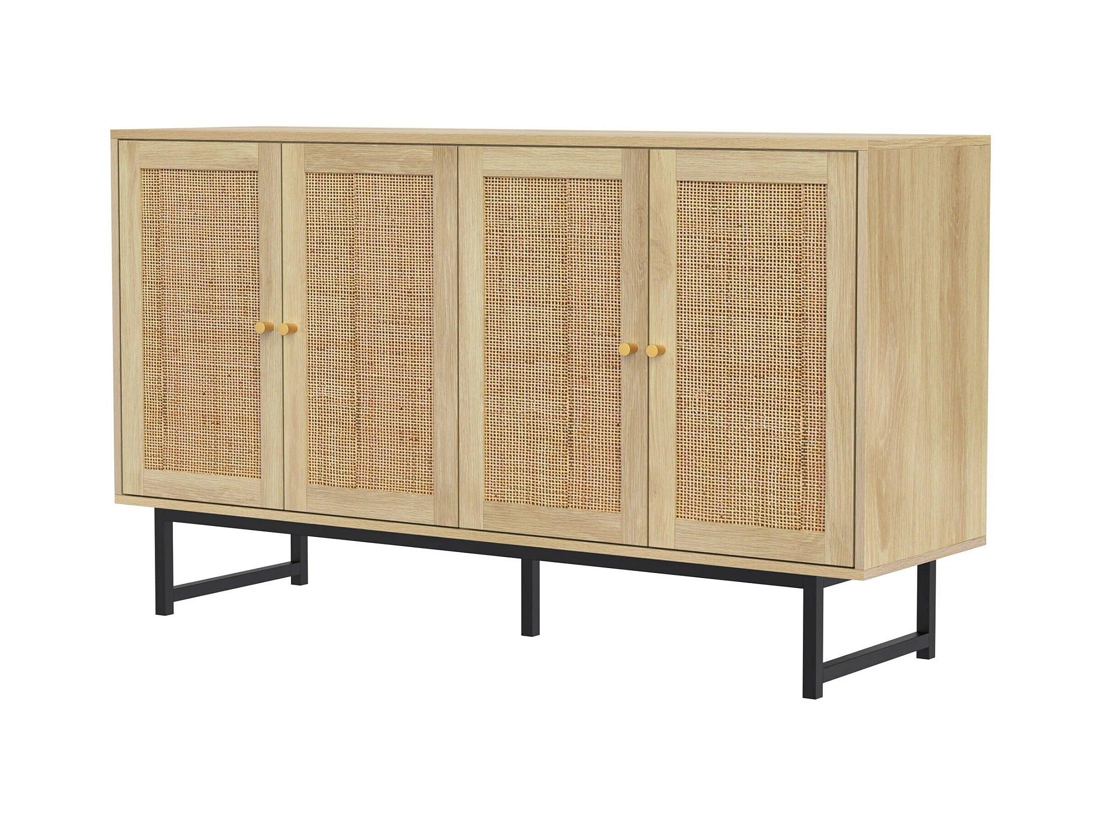 URBAN MEUBLE Buffet naturelle effet bois 4 portes en rotin 140*39*80cm