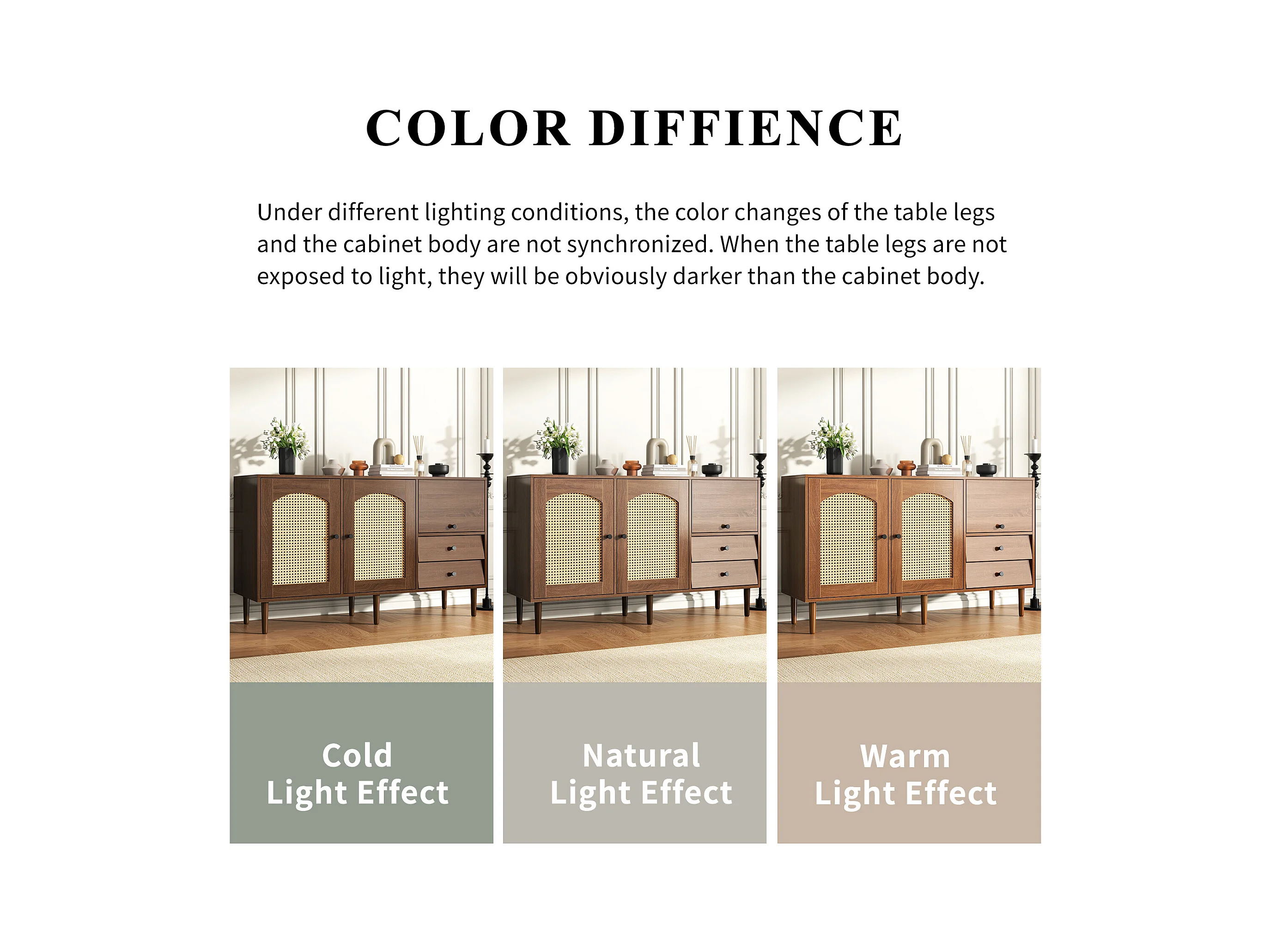 URBAN MEUBLE Buffet vintage effet bois avec portes en rotin 2 portes 2 tiroirs 130x75,5x40cm