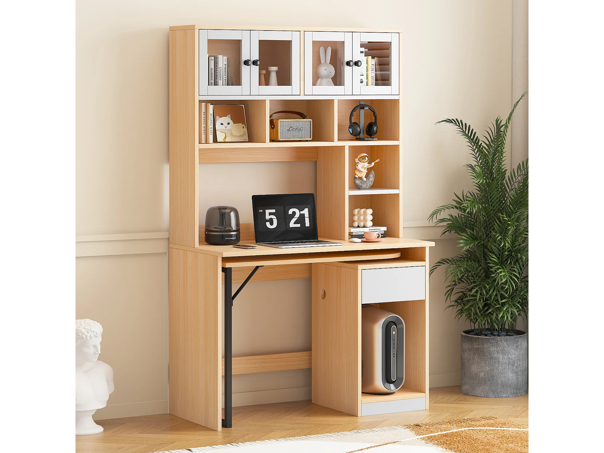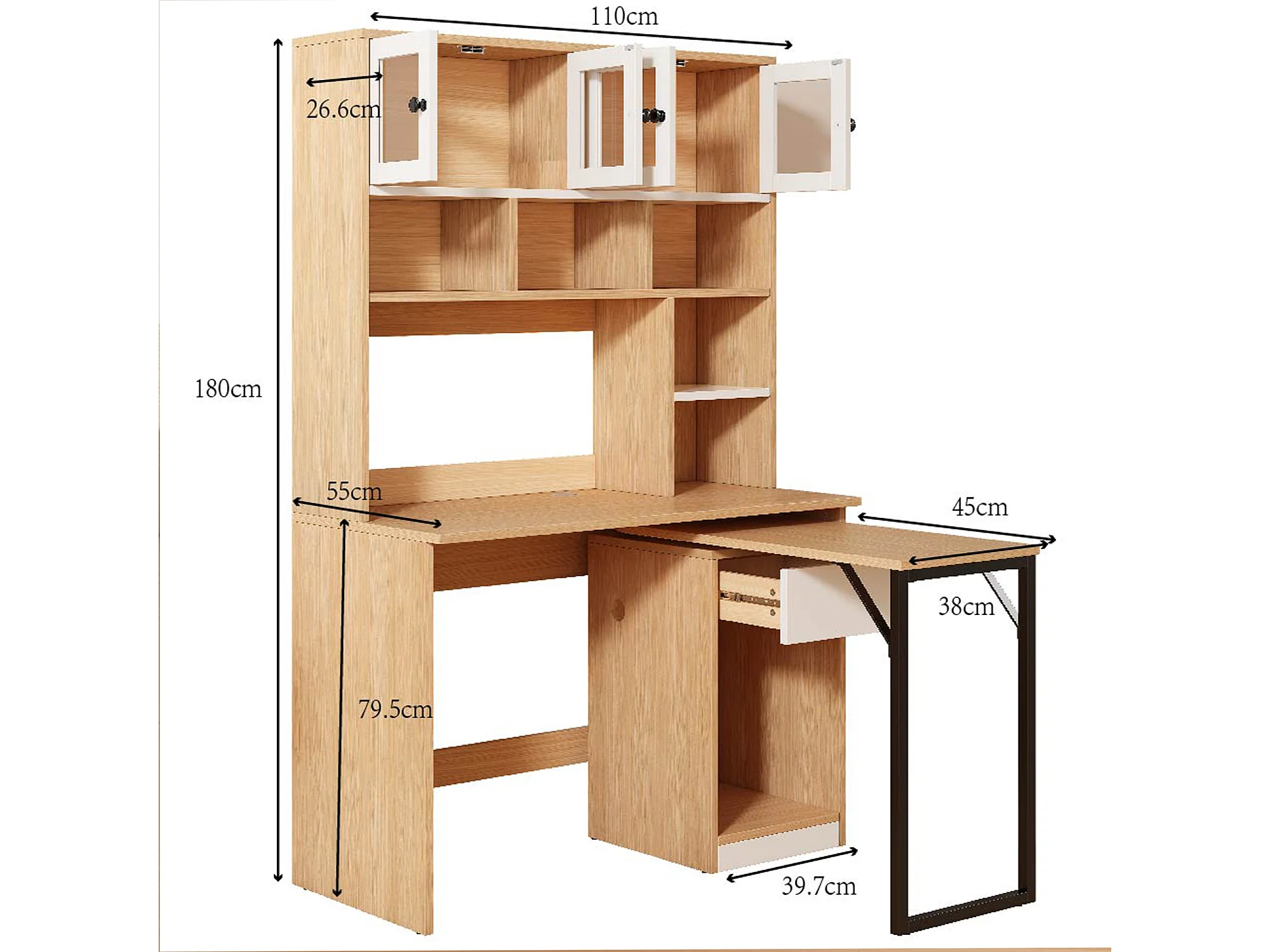URBAN MEUBLE Bureau effet bois avec étagère rangement tablette rétractable 110*55*180cm
