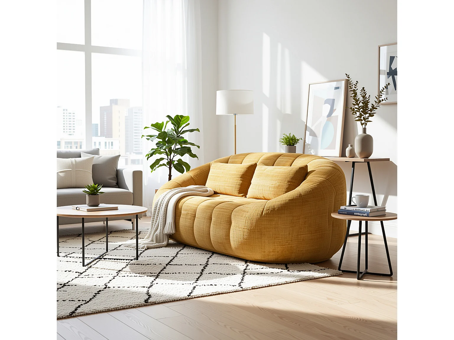 URBAN MEUBLE Canapé compact rond 2 places Loveseat en tissu chenille jaune et 2 cousins