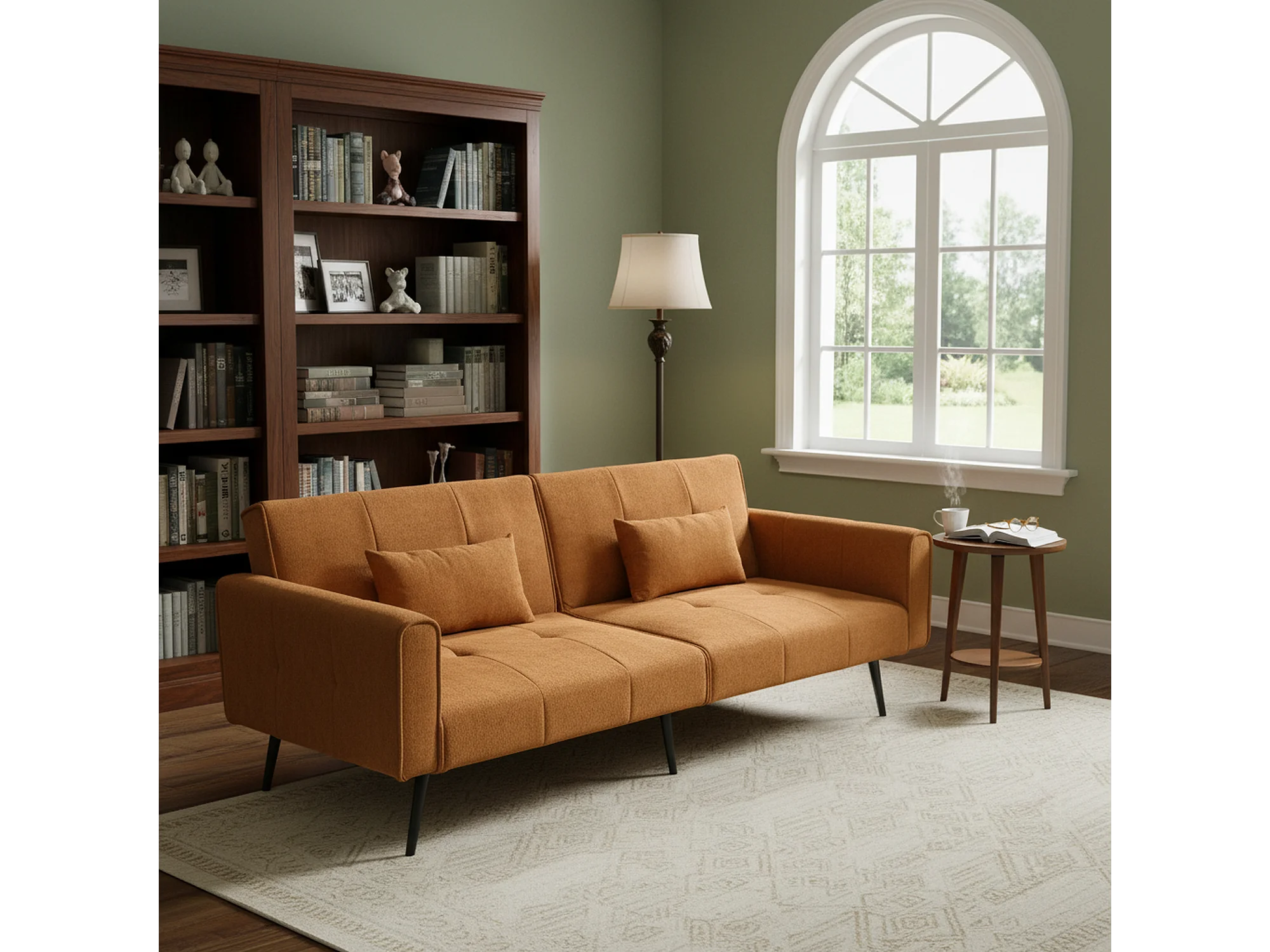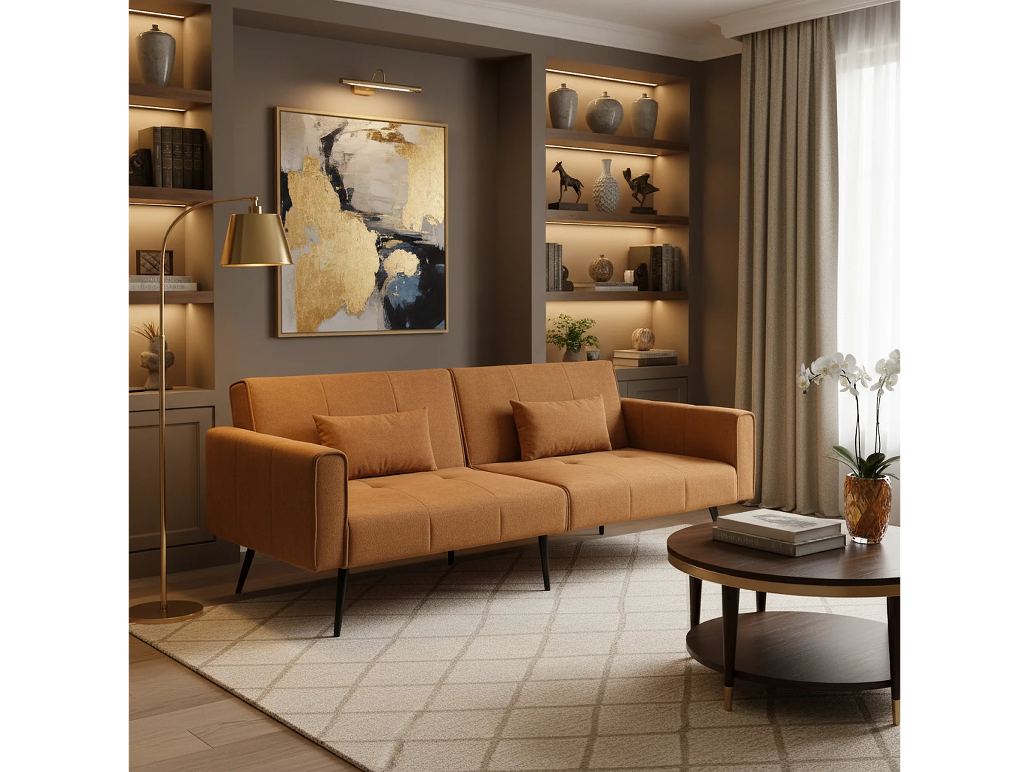 URBAN MEUBLE Canapé-lit 3 places velours côtelé jaune moutarde avec pieds en métal