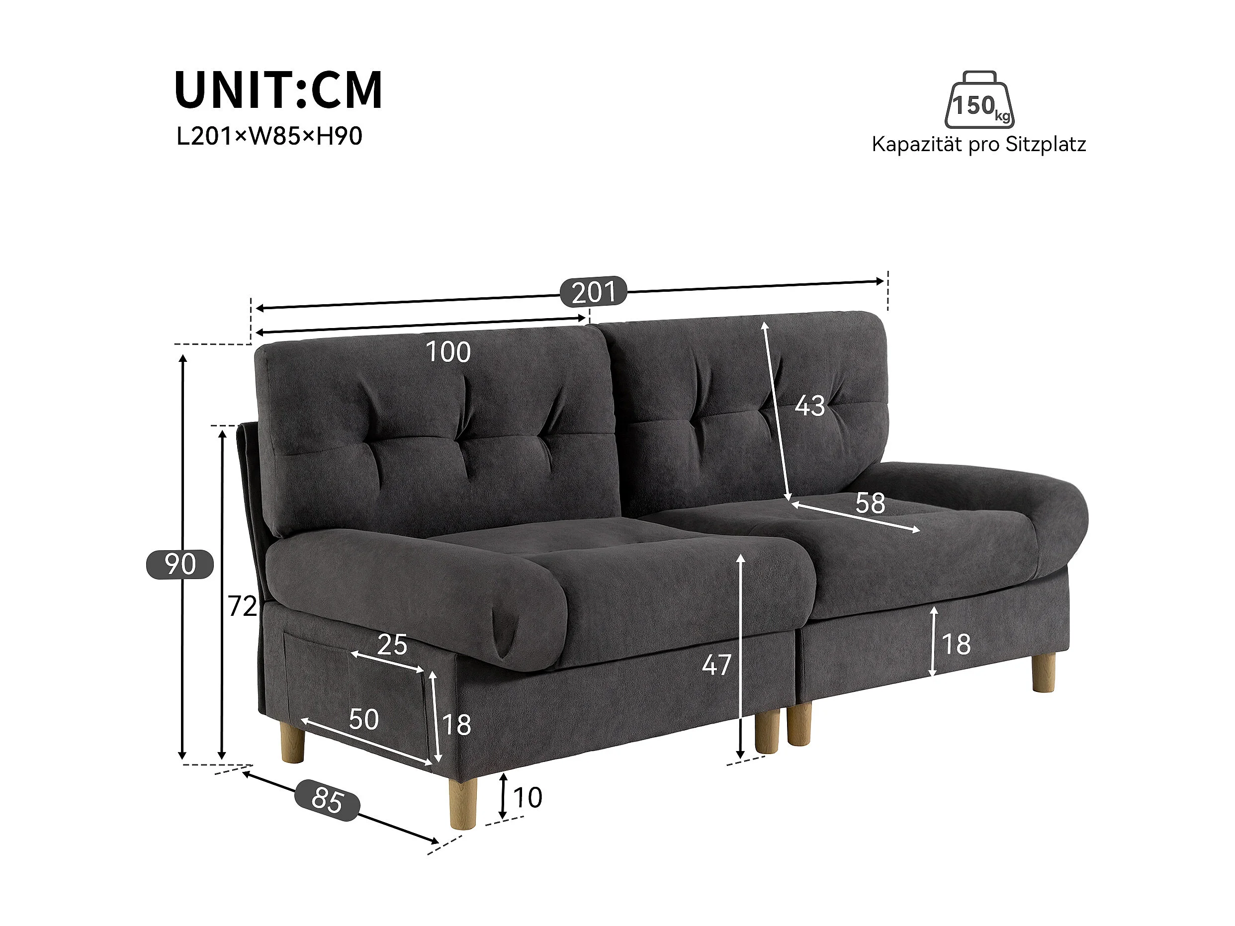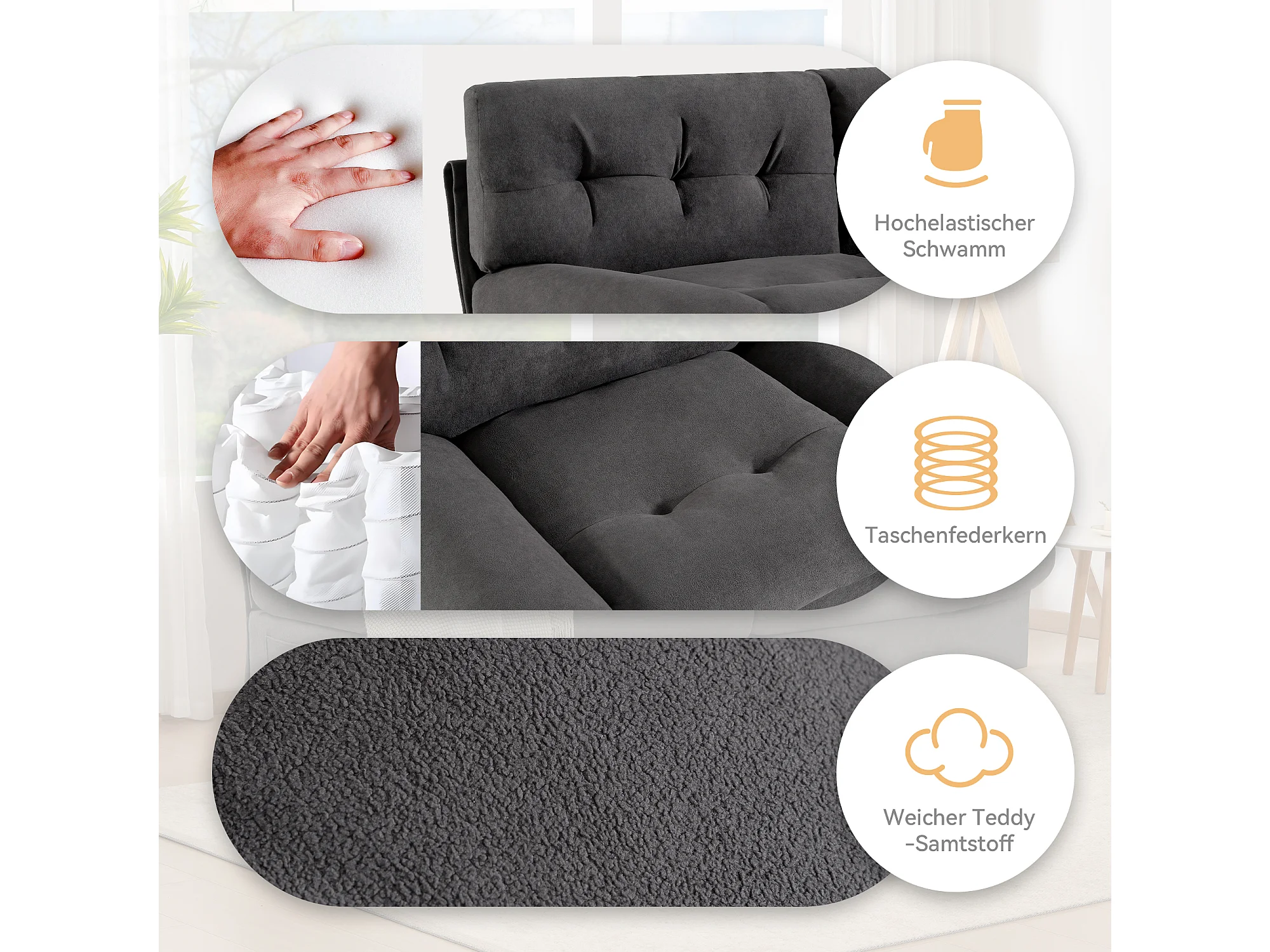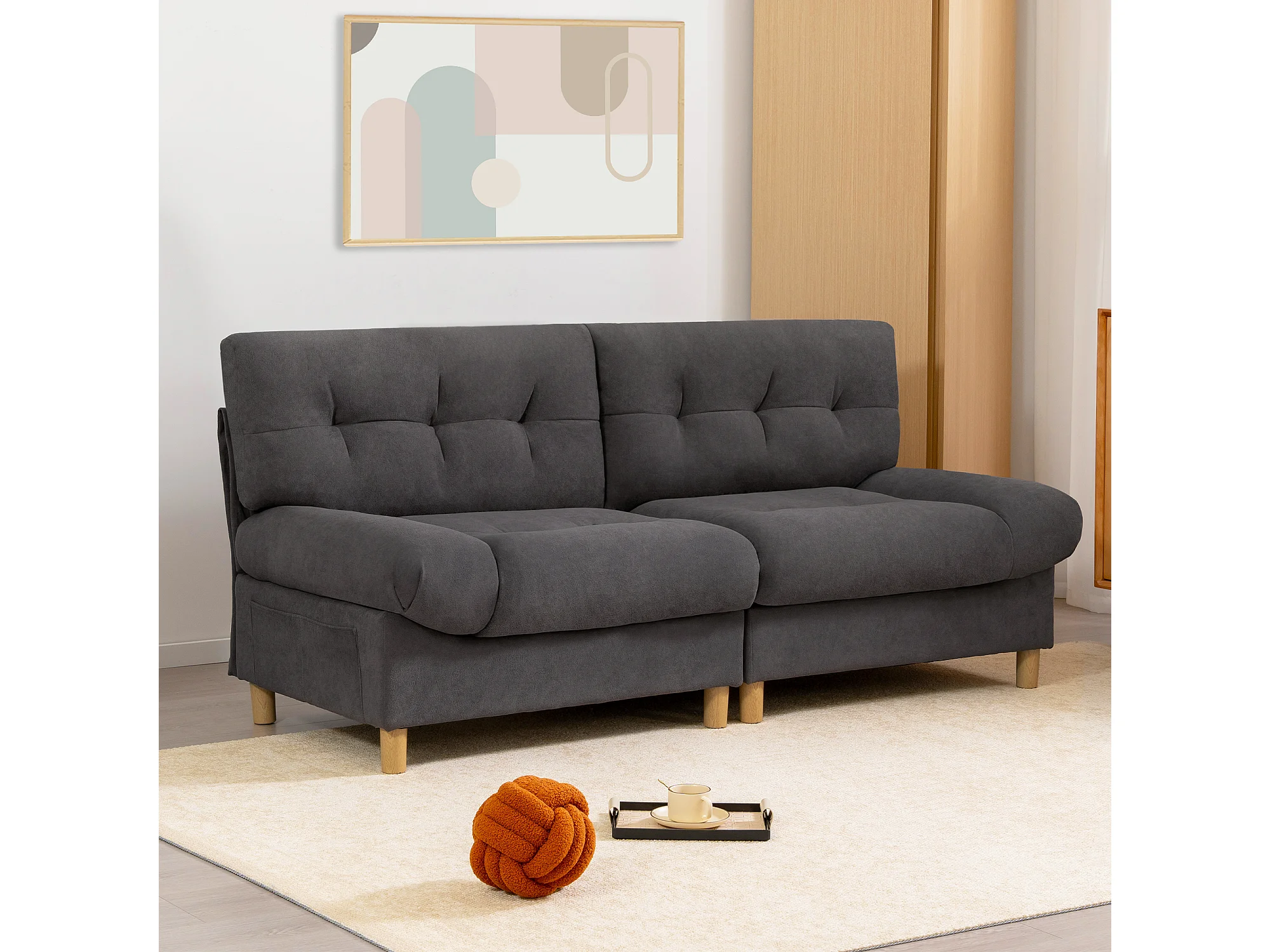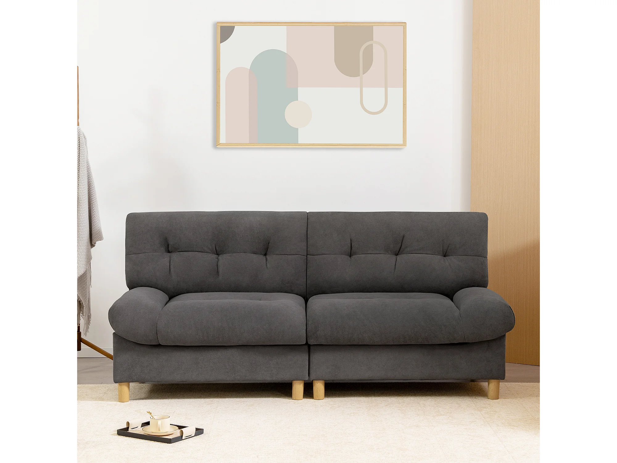 URBAN MEUBLE Canapé velours teddy gris 2 places pieds bois
