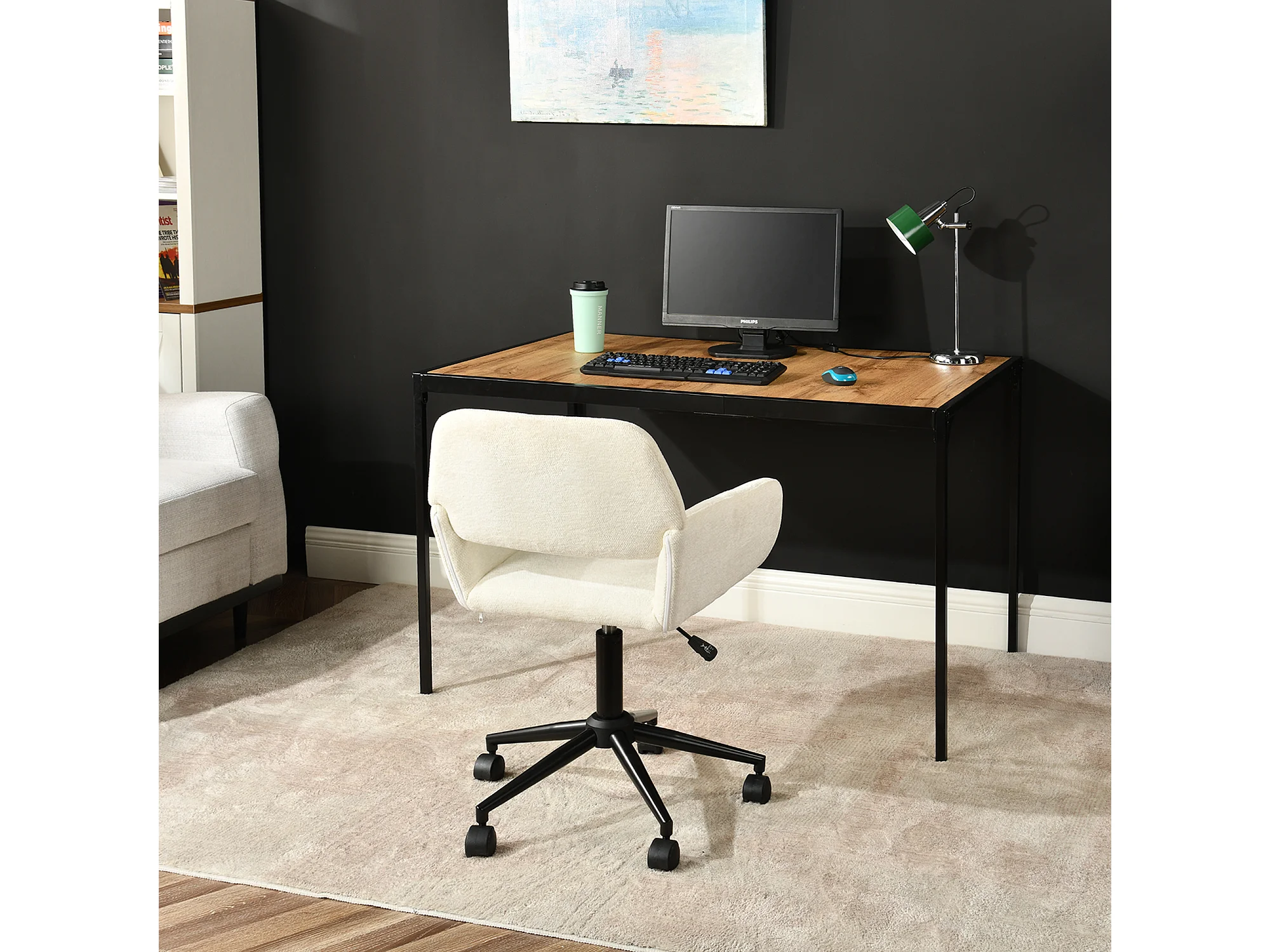 URBAN MEUBLE Chaise de bureau en tissu éponge beige, réglable en hauteur, rotation à 360°