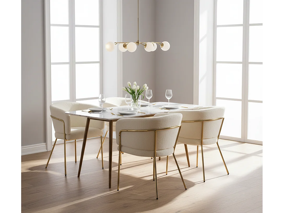URBAN MEUBLE Chaise de salle à manger, chaise coiffeuse tissu bouclé beige, avec pieds métalliques dorés