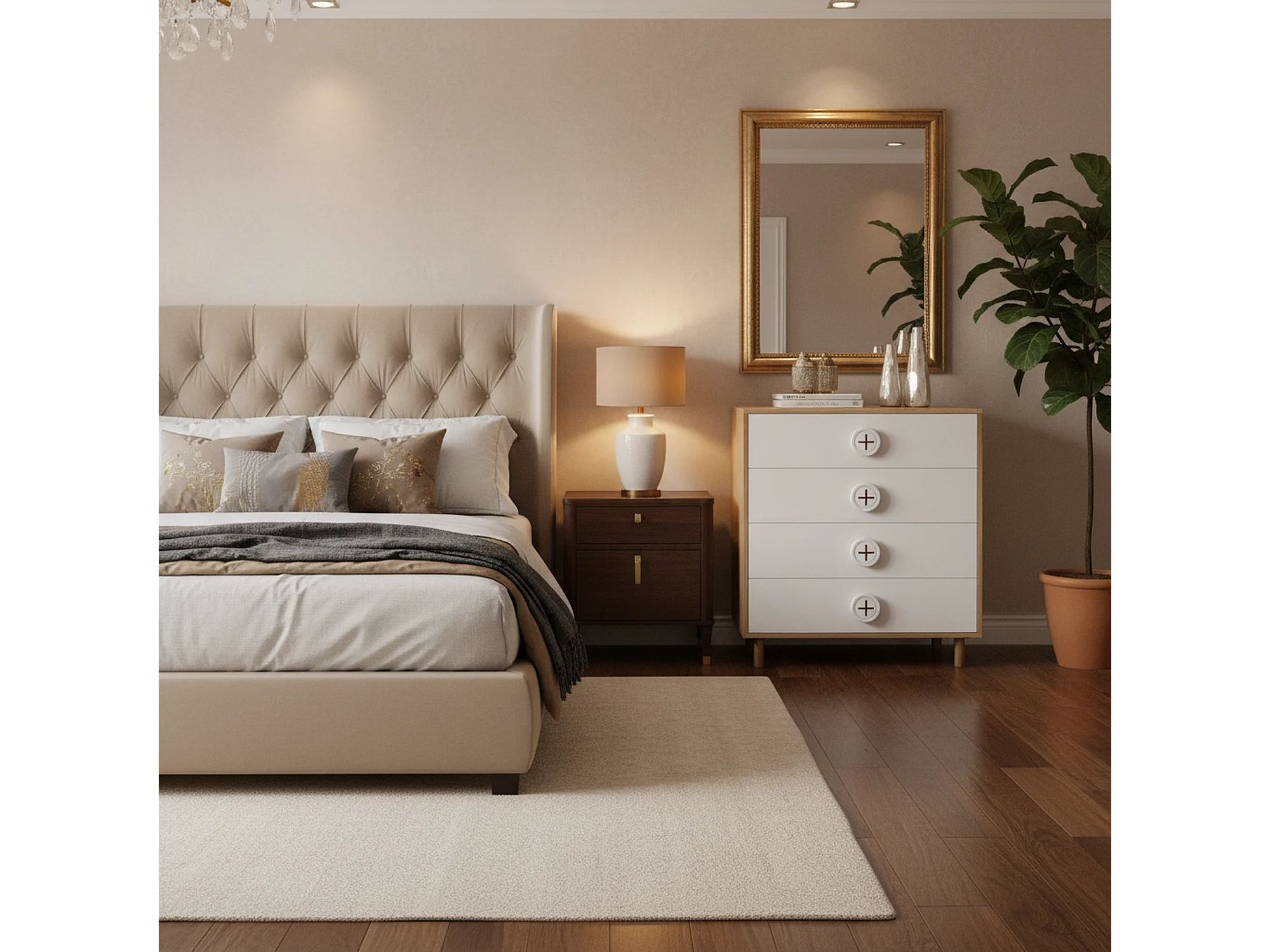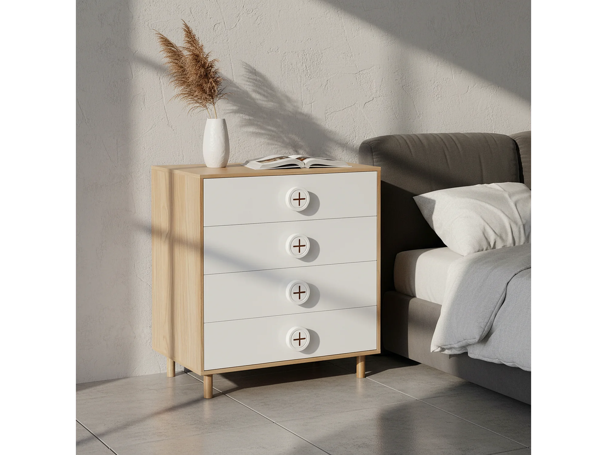 URBAN MEUBLE Commode 4 tiroirs bicolore blanc effet bois poignées décoratives