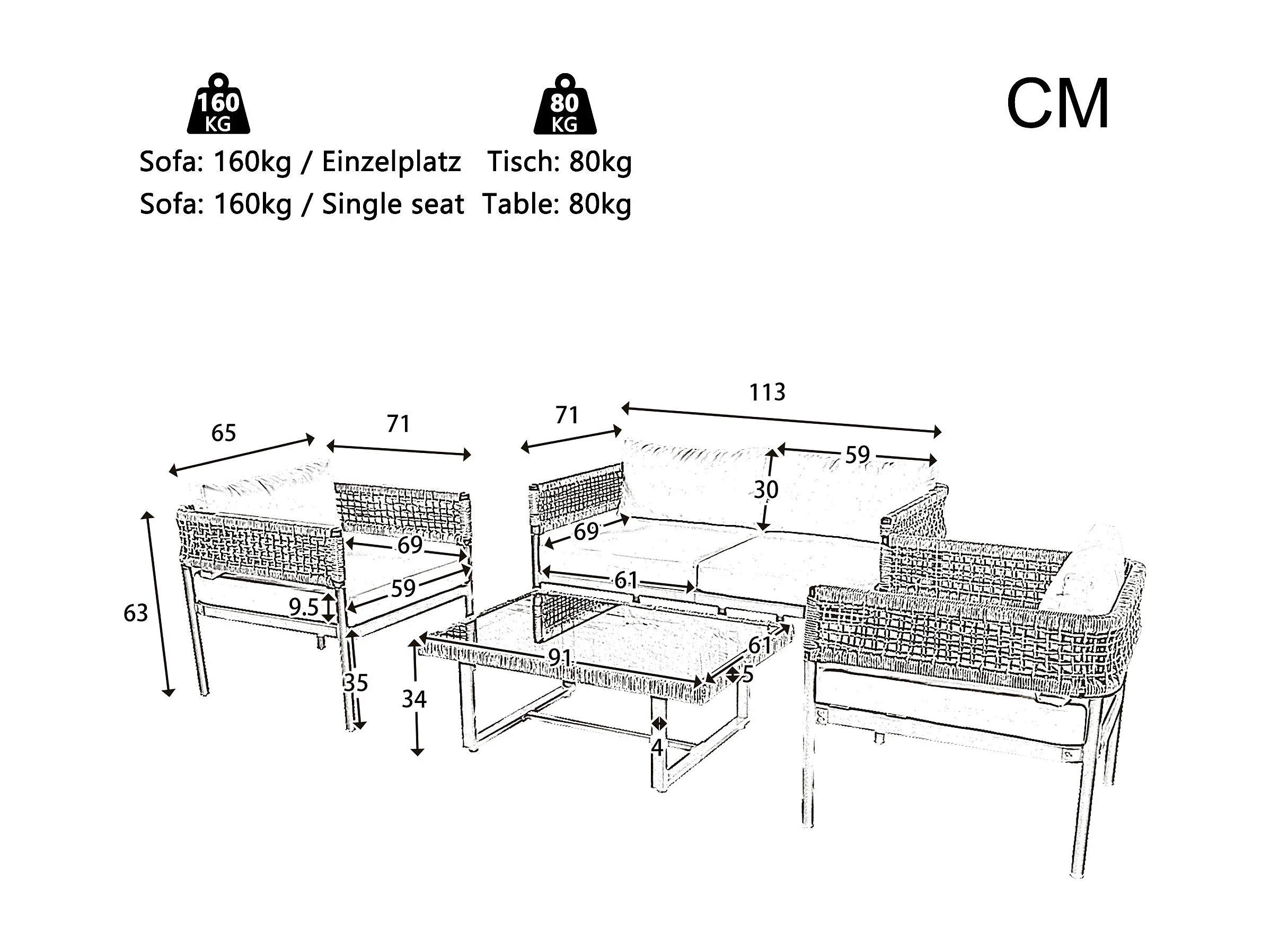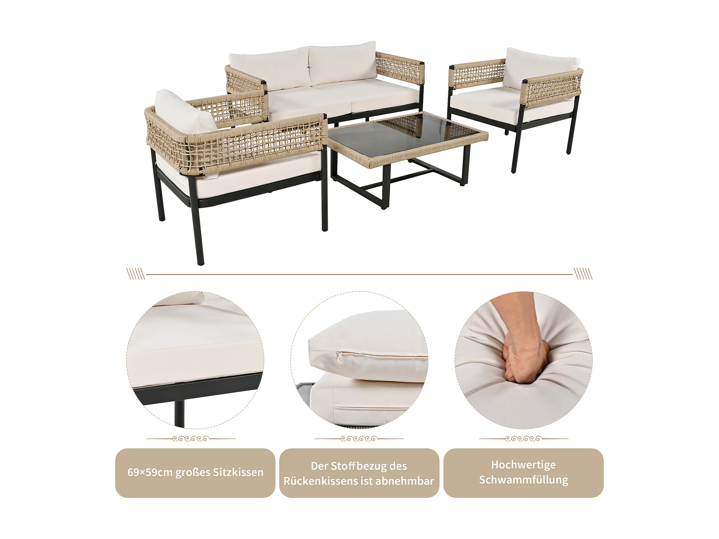 URBAN MEUBLE Ensemble de salon de jardin 4 pieces beige avec coussins