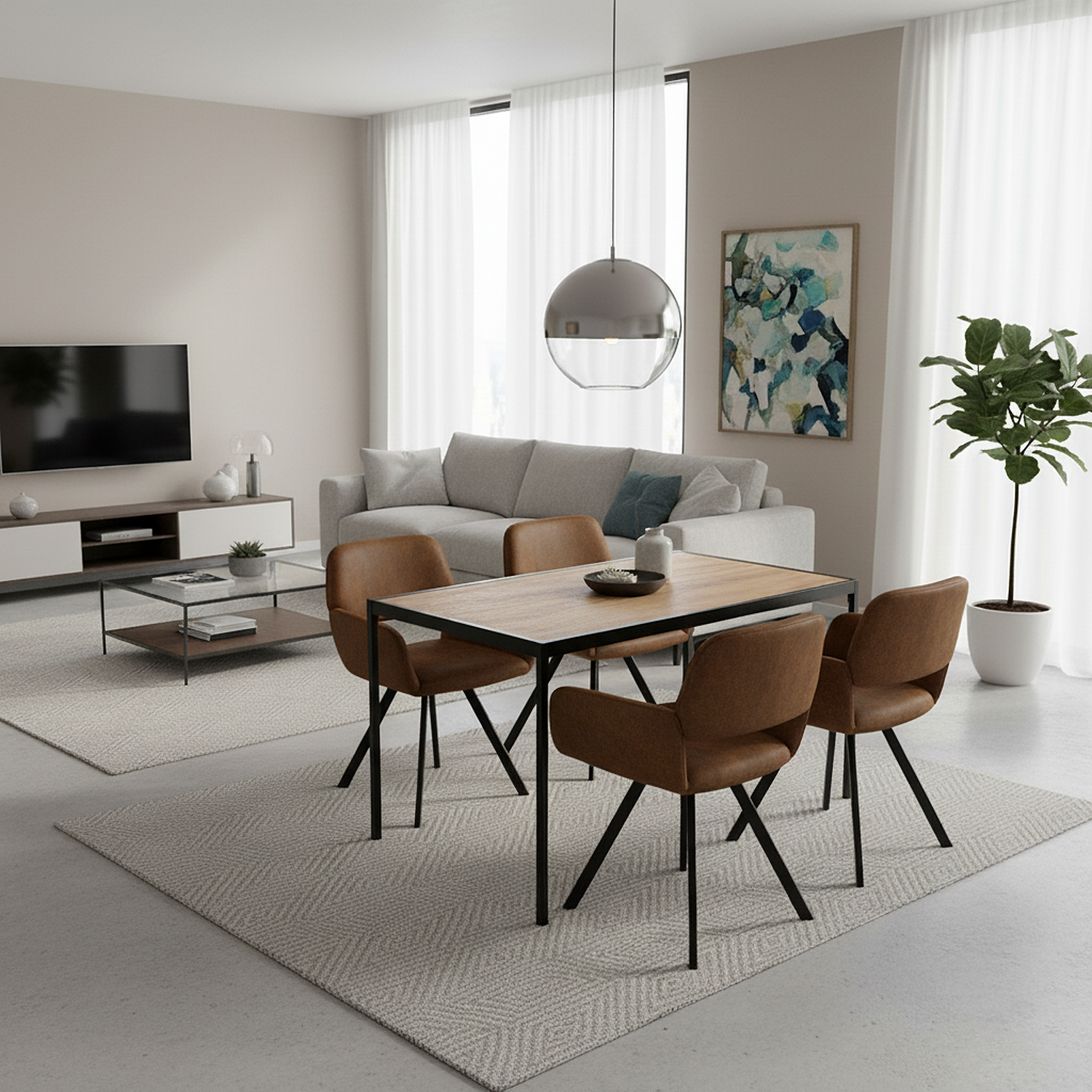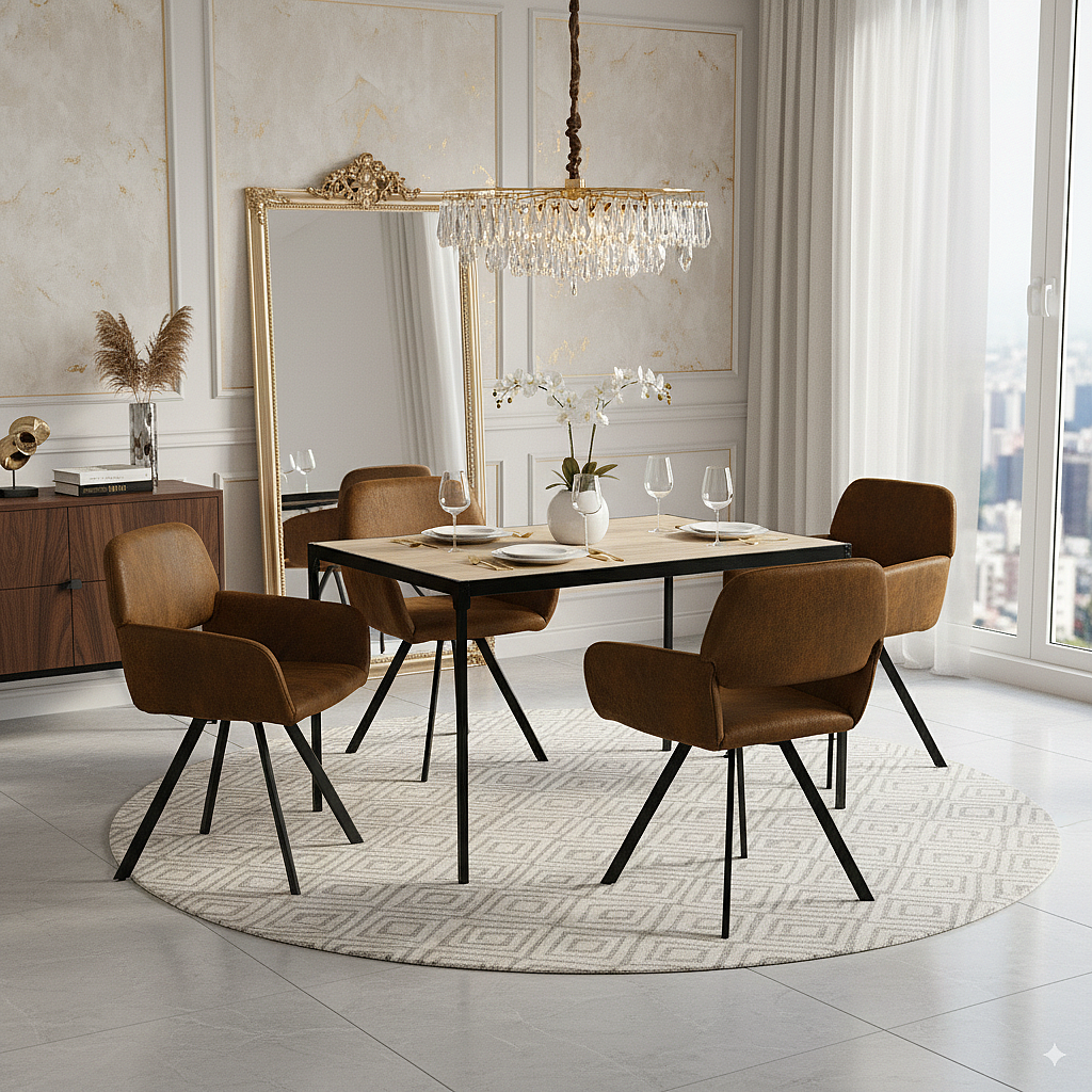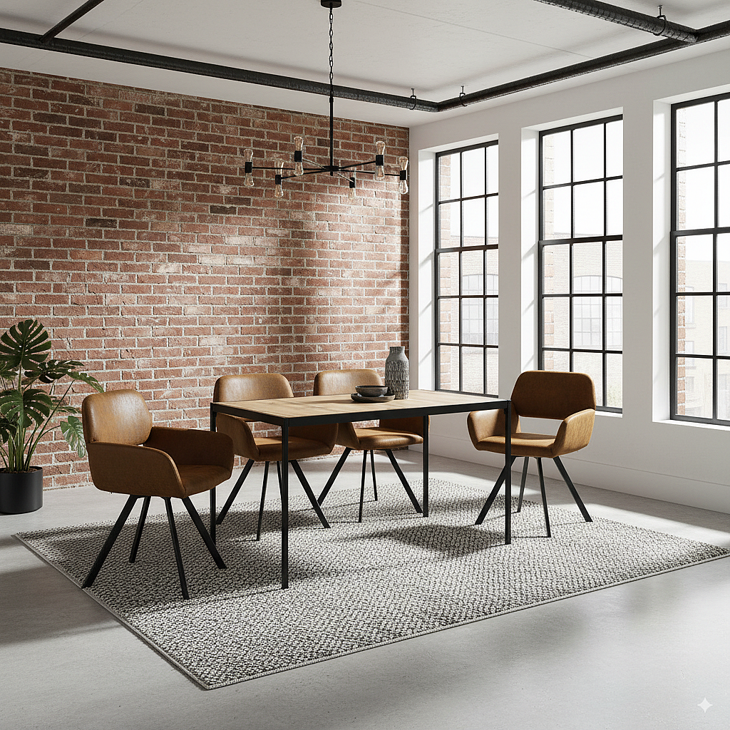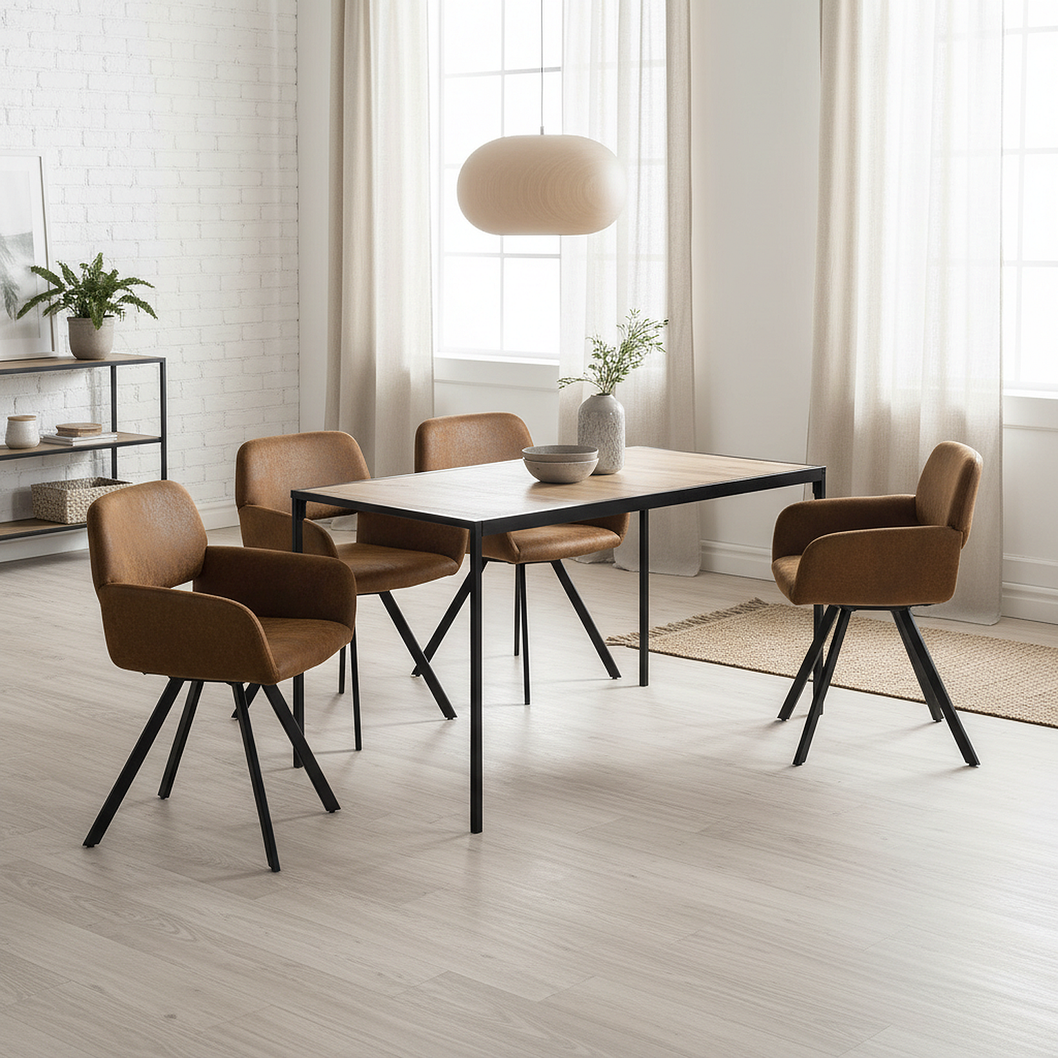URBAN MEUBLE Ensemble de table et 4 chaises de salle à manger pivotantes style industriel et effet bois