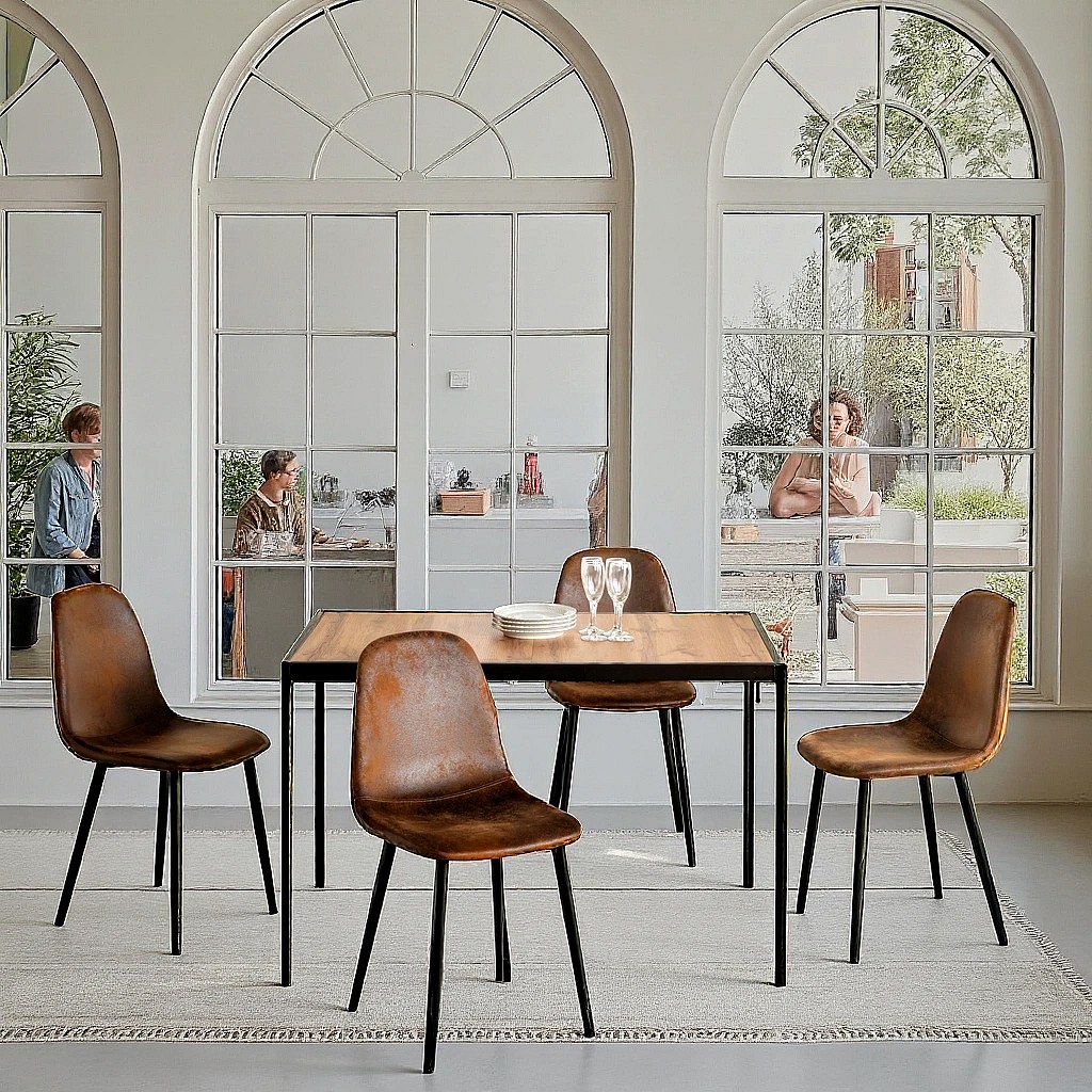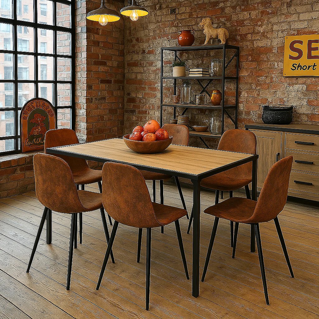 URBAN MEUBLE Ensemble table à manger bois clair et 6 chaises suède brun