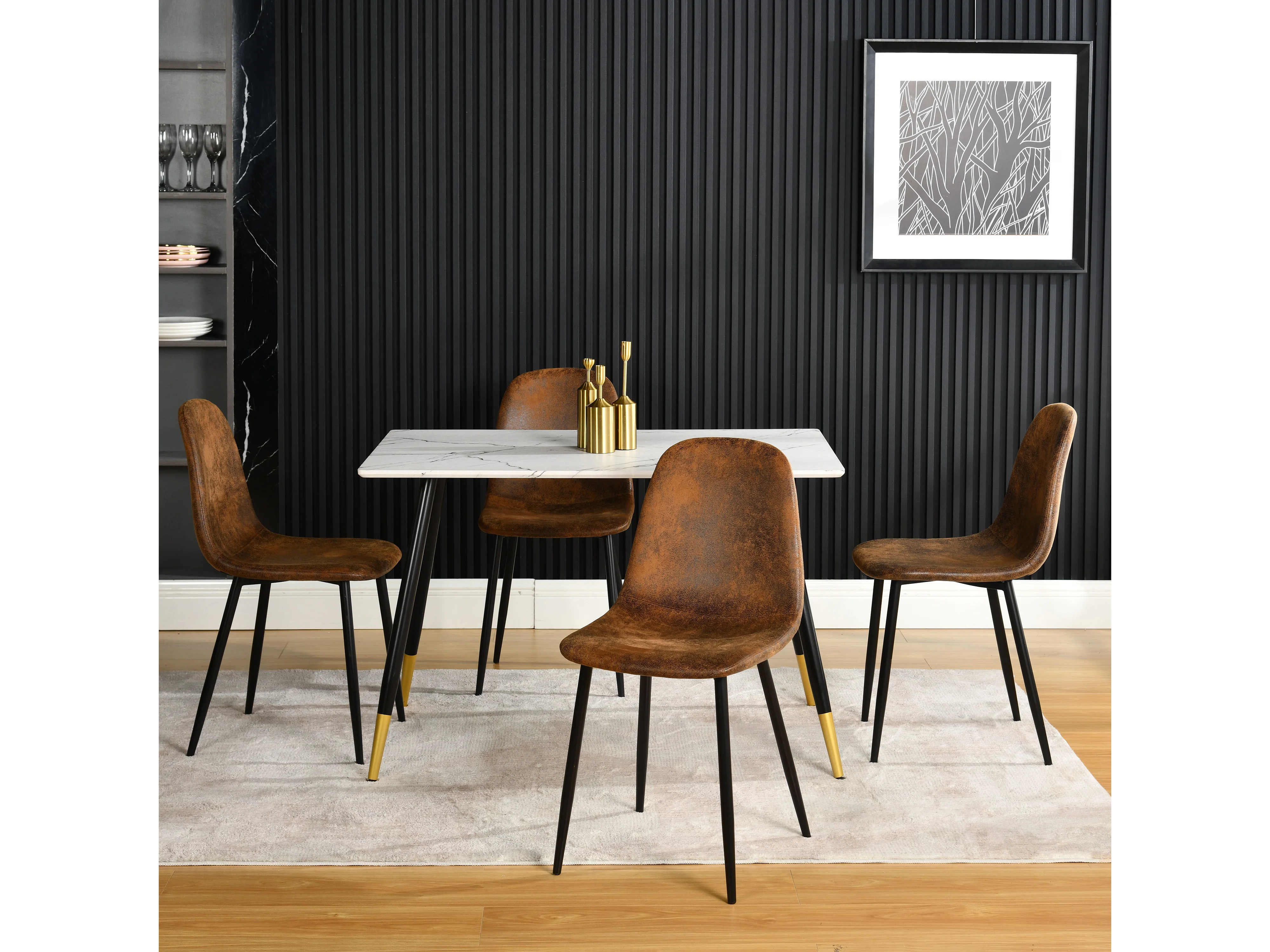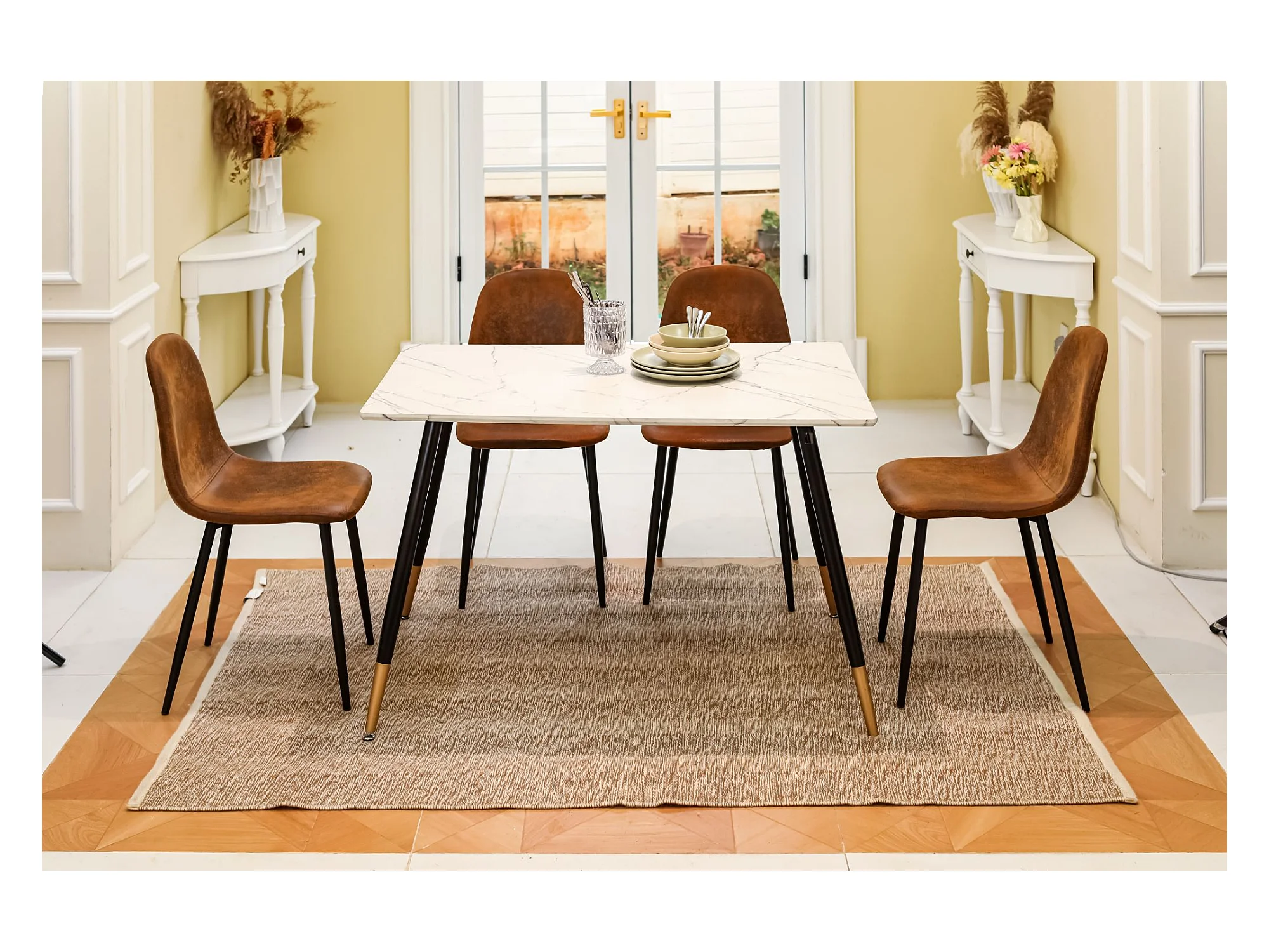 URBAN MEUBLE Ensemble table blanche effet marbre et 4 chaises scandinaves rétros