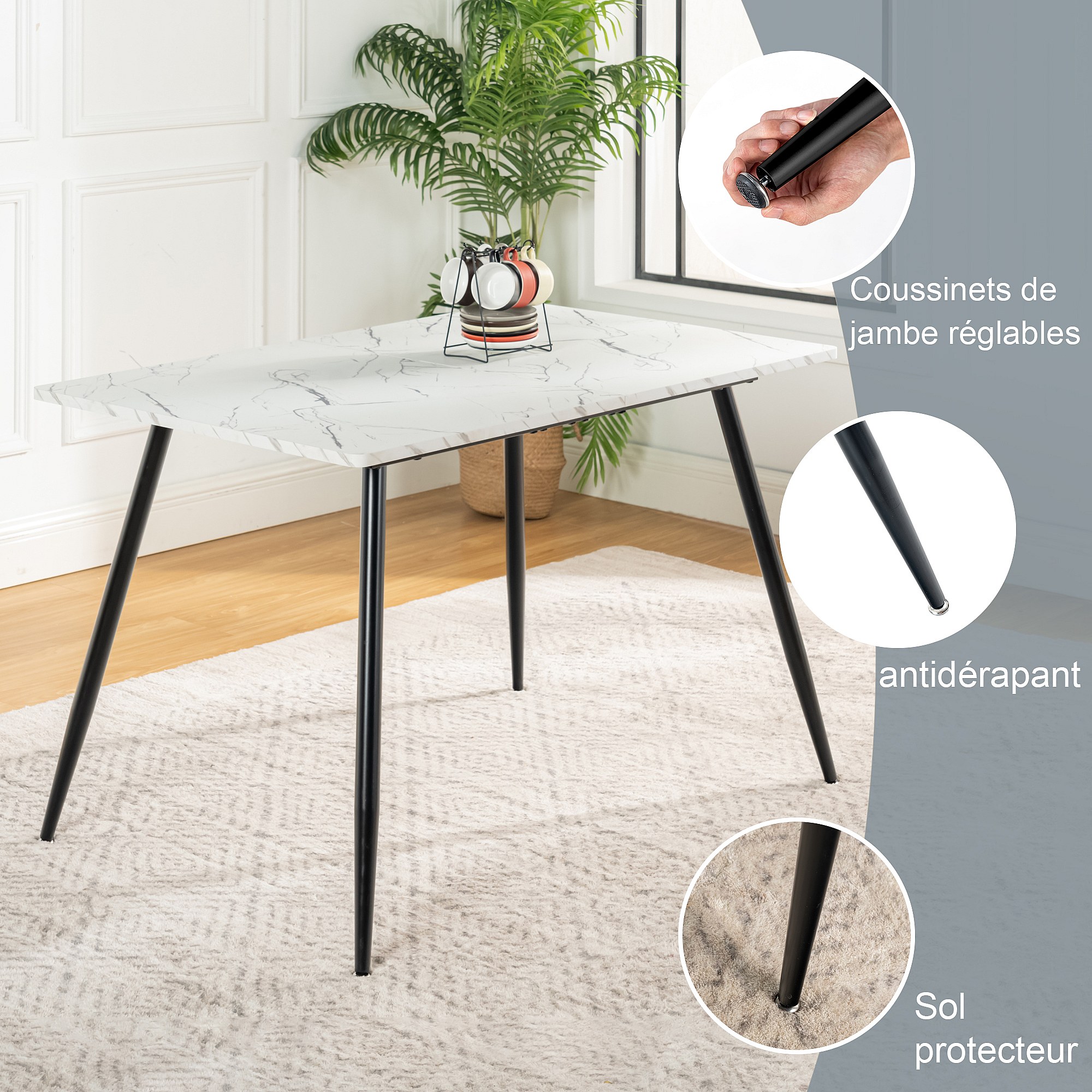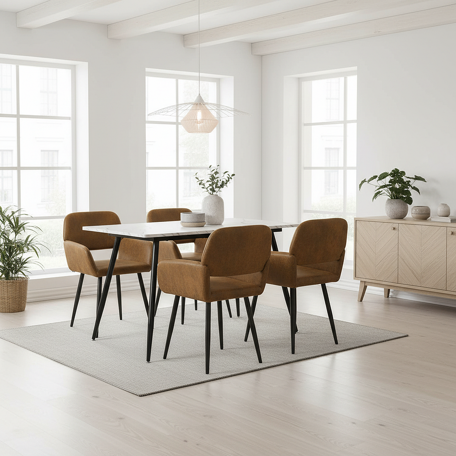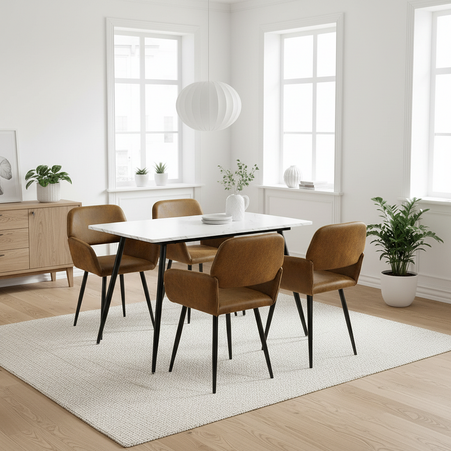 URBAN MEUBLE Ensemble table effet marbre blanc et 4 chaises suède brun