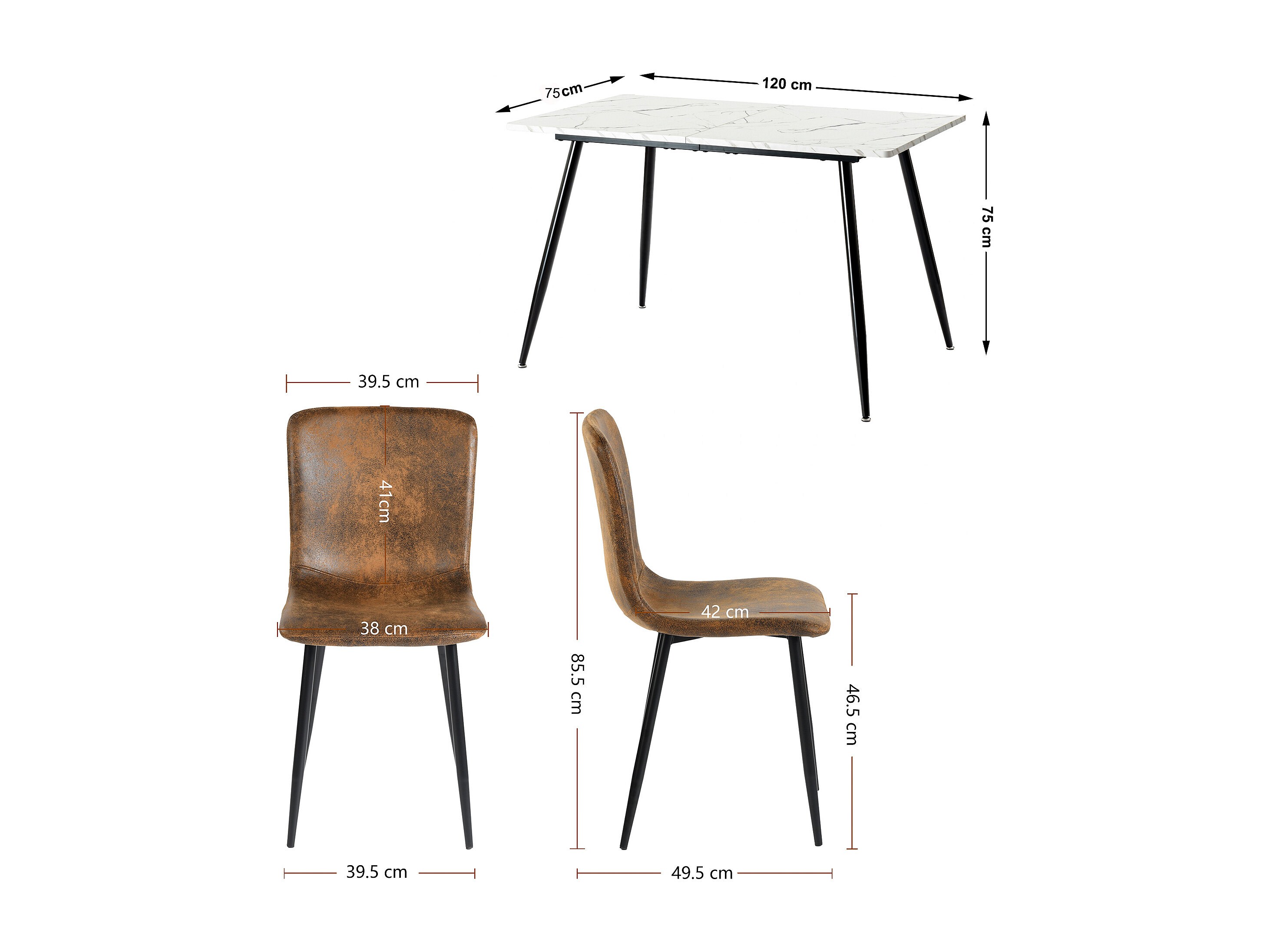 URBAN MEUBLE Ensemble table effet marbre blanc et 4 chaises suède brun