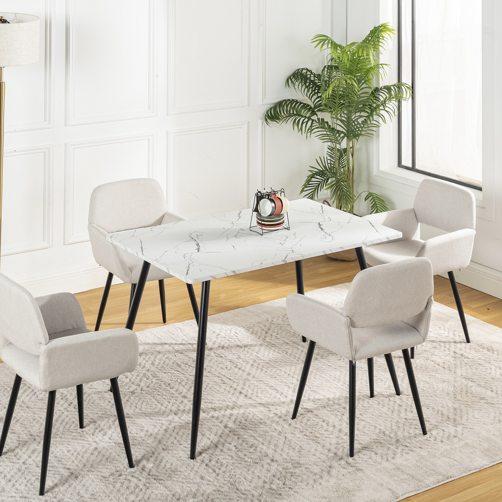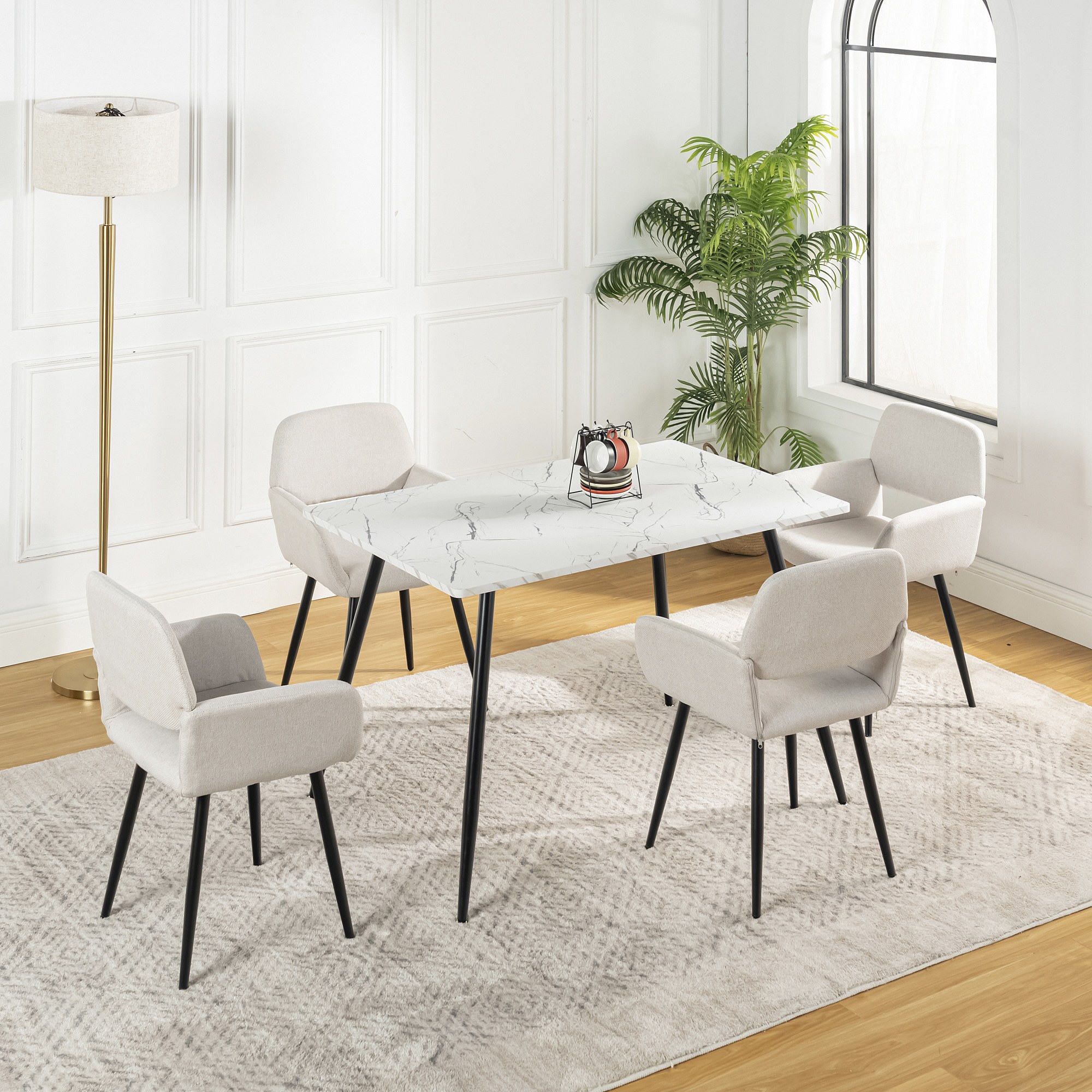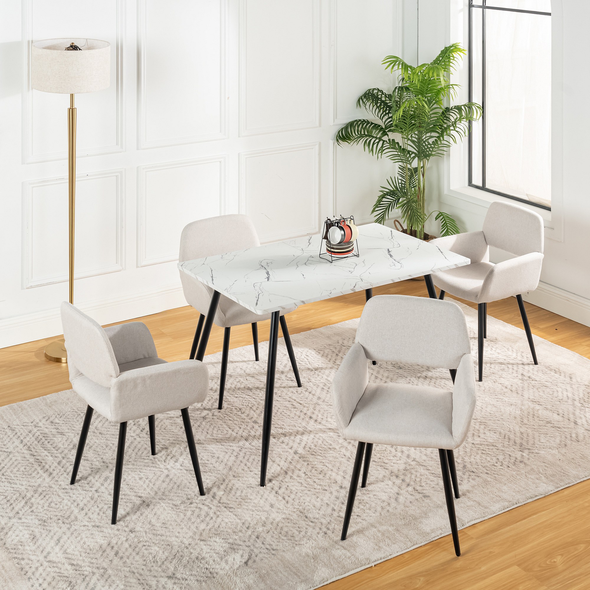 URBAN MEUBLE Ensemble table effet marbre blanc et 4 chaises tissu beige