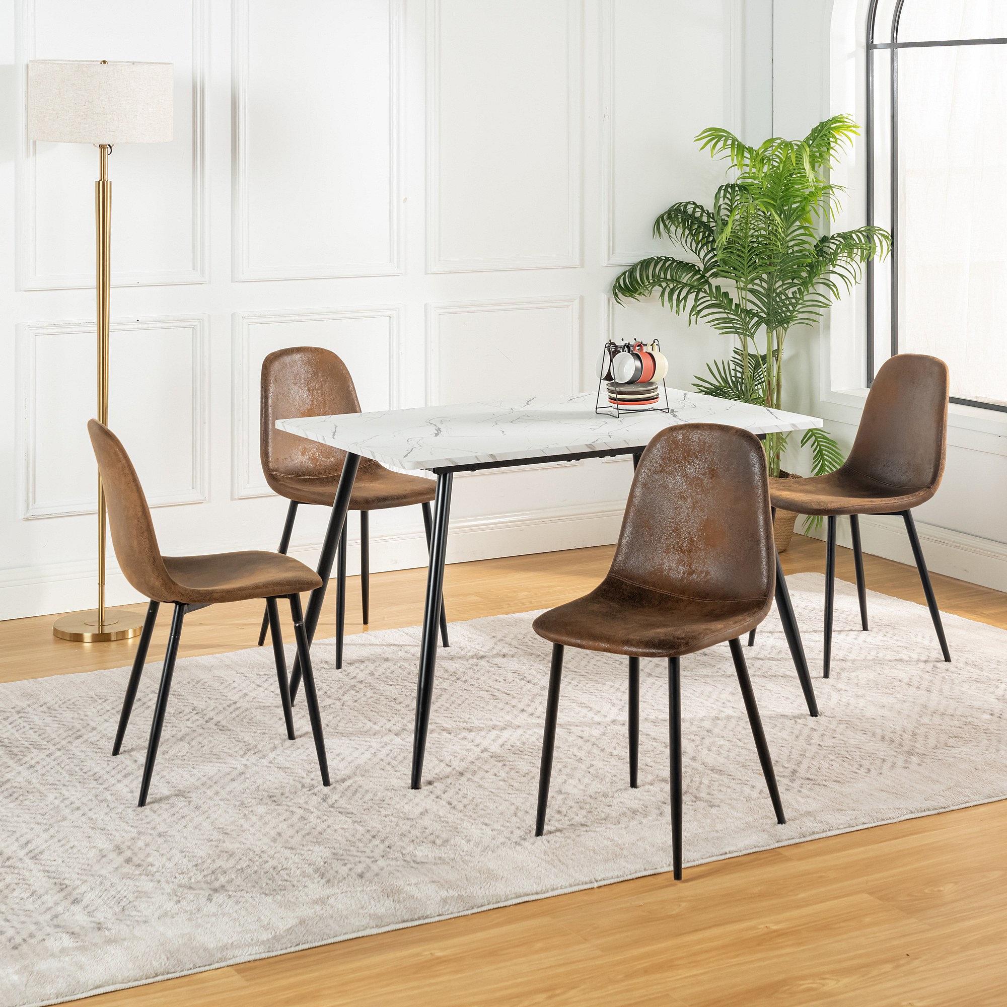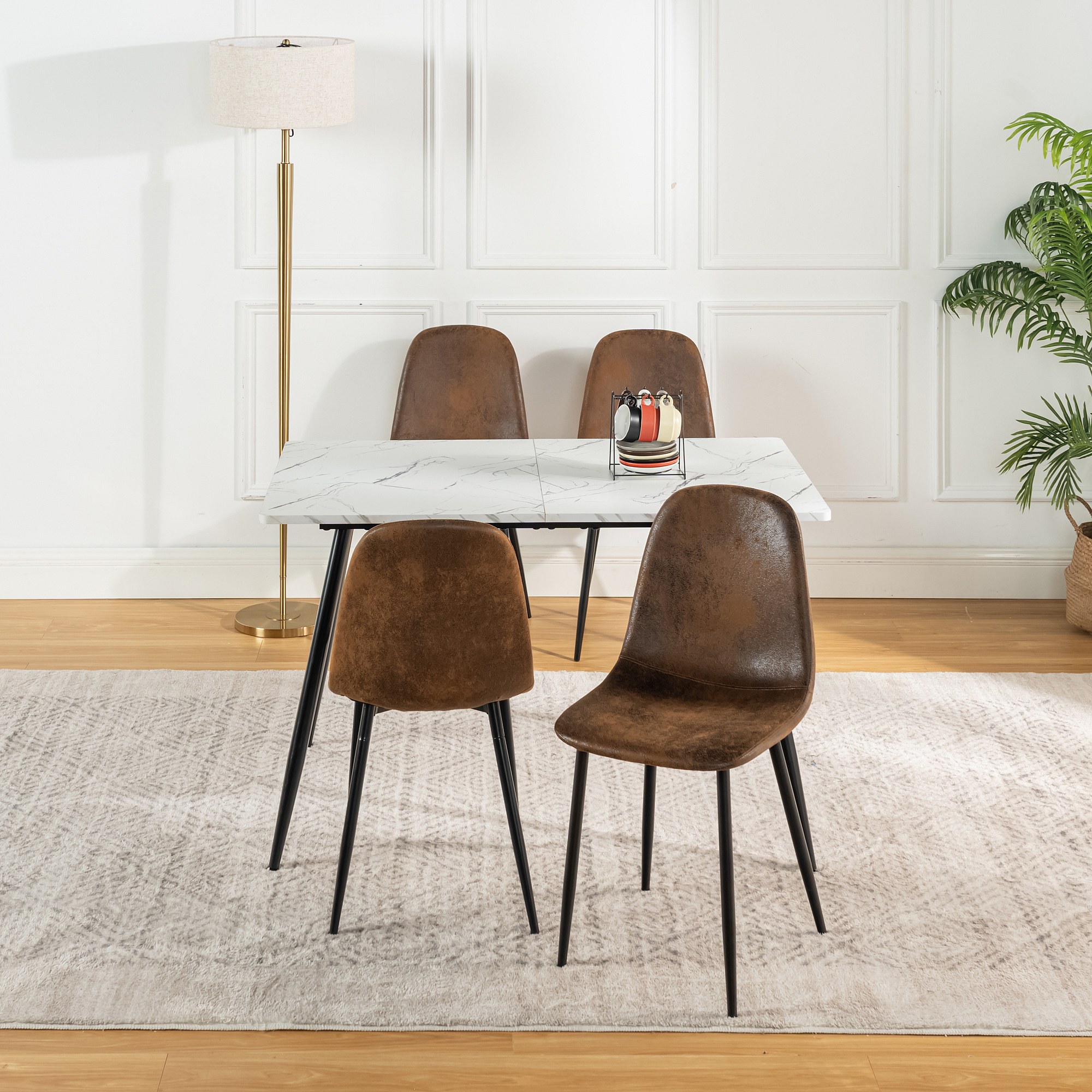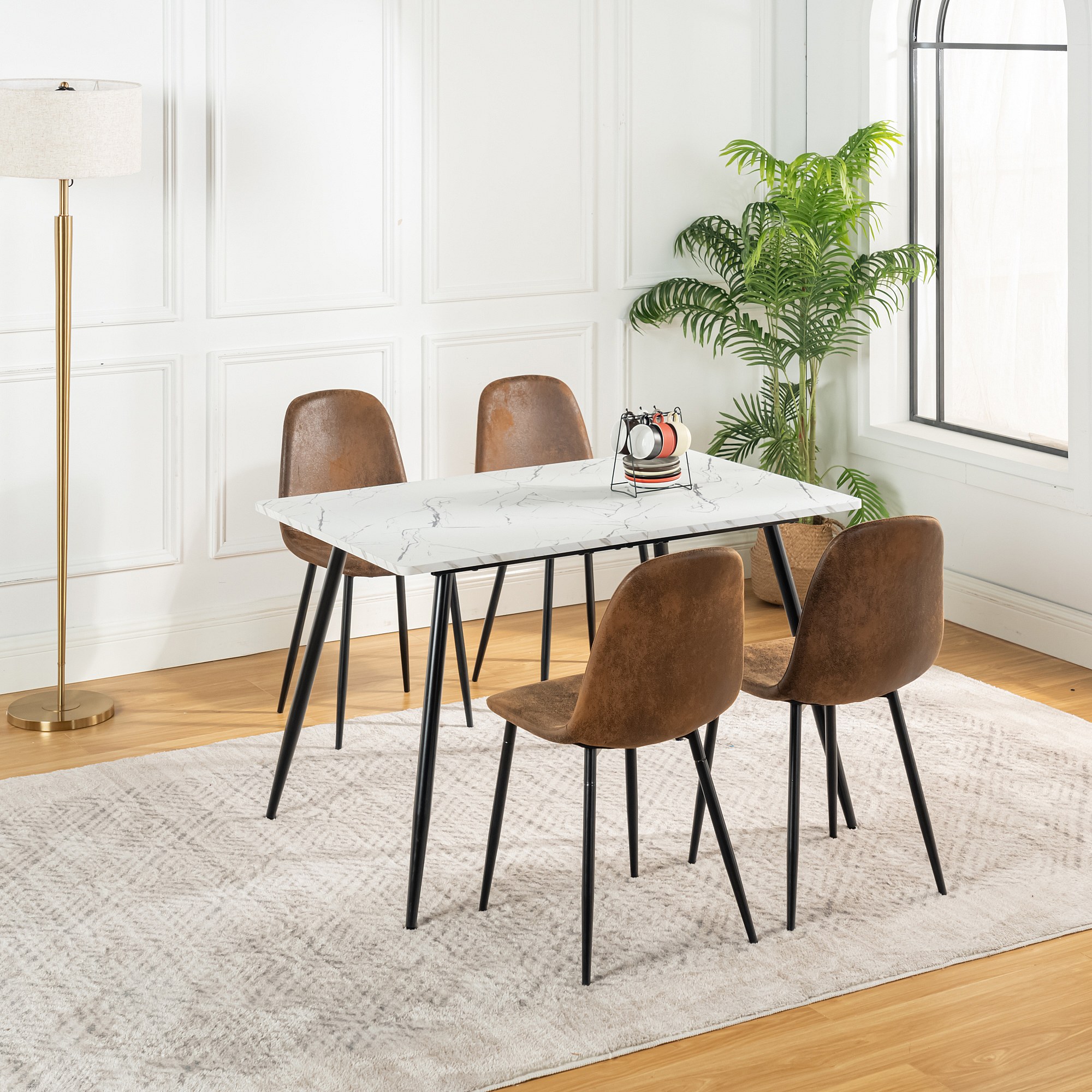 URBAN MEUBLE Ensemble table effet marbre blanc et 4 chaises vintage marron