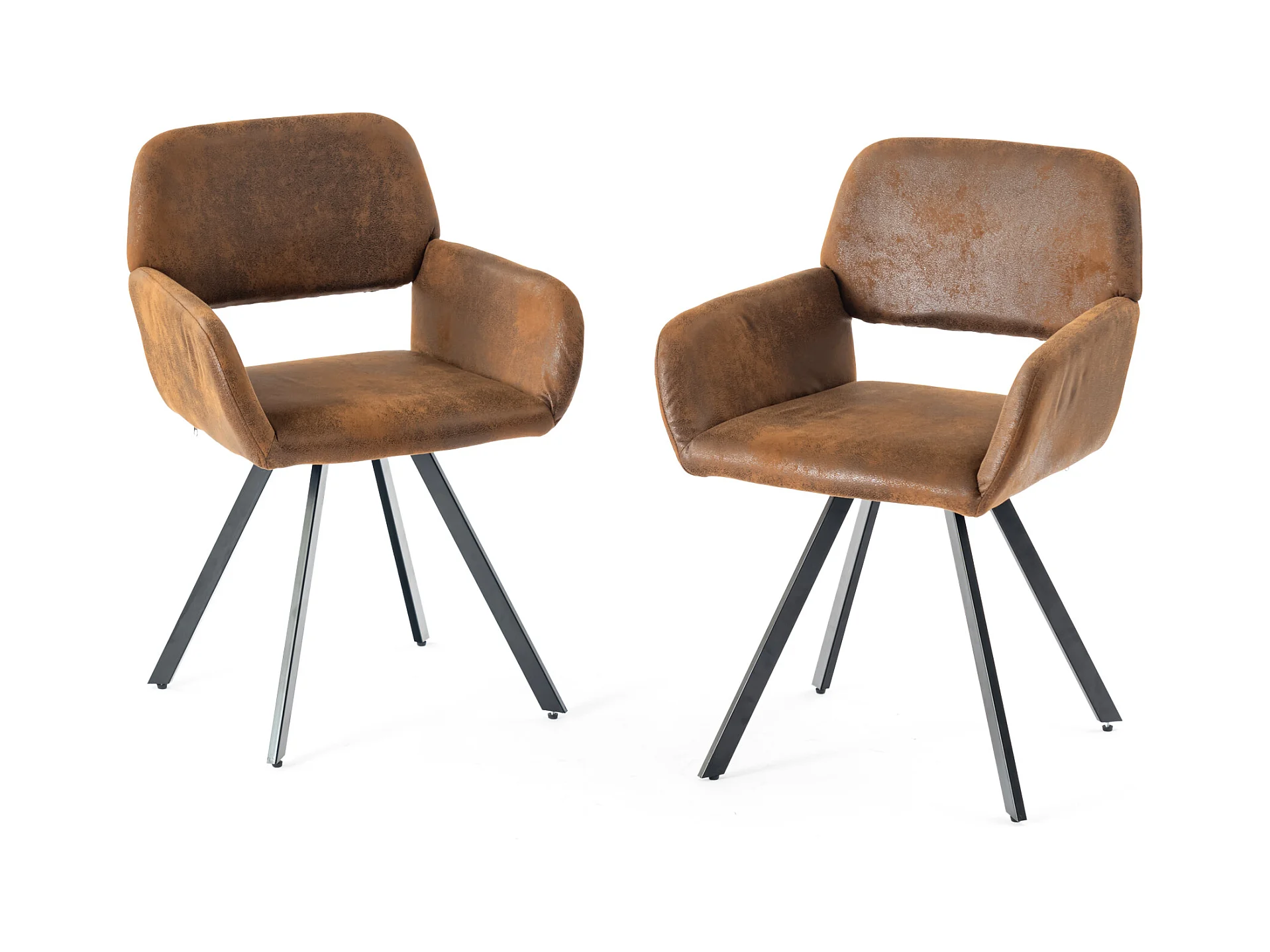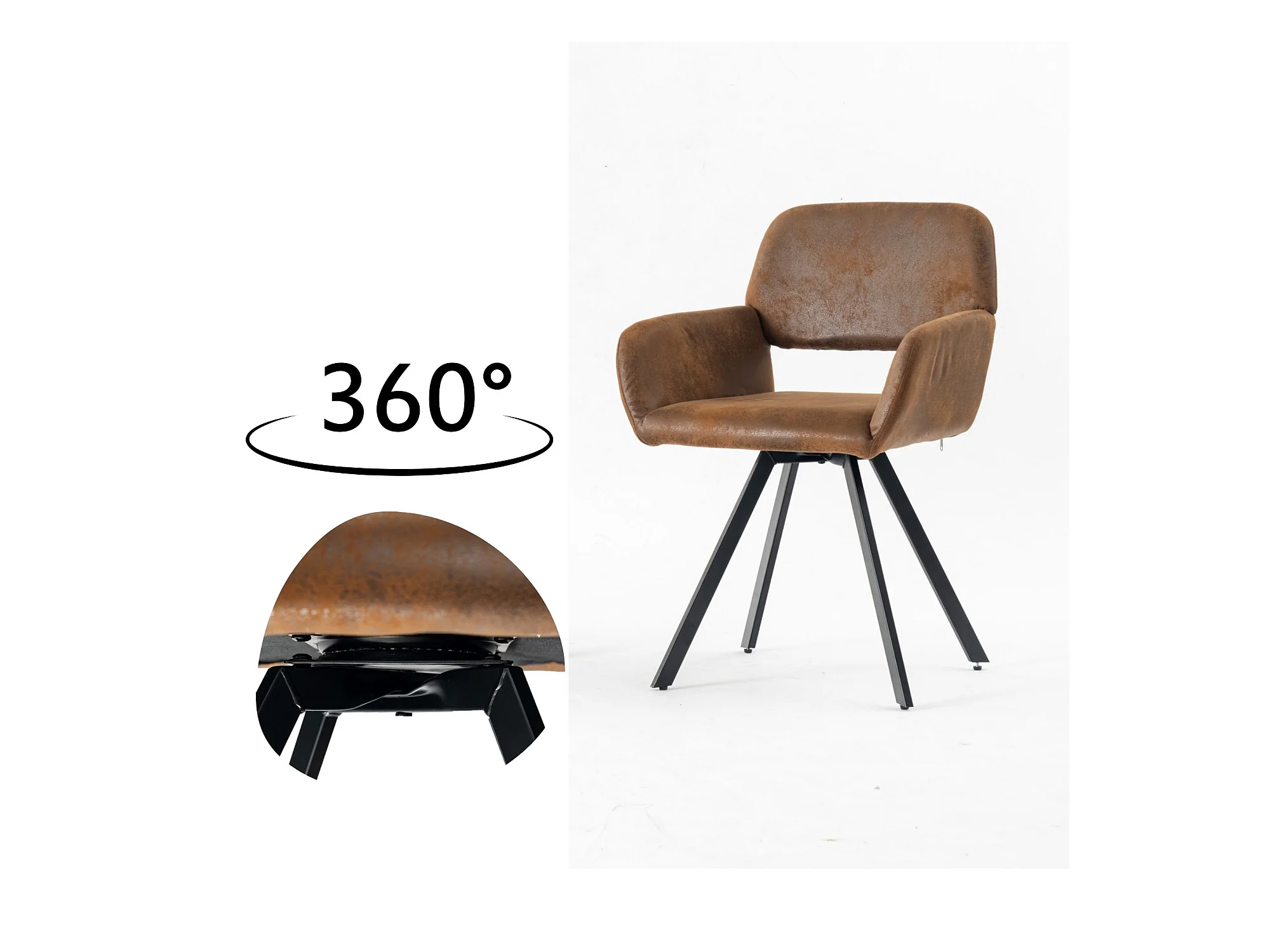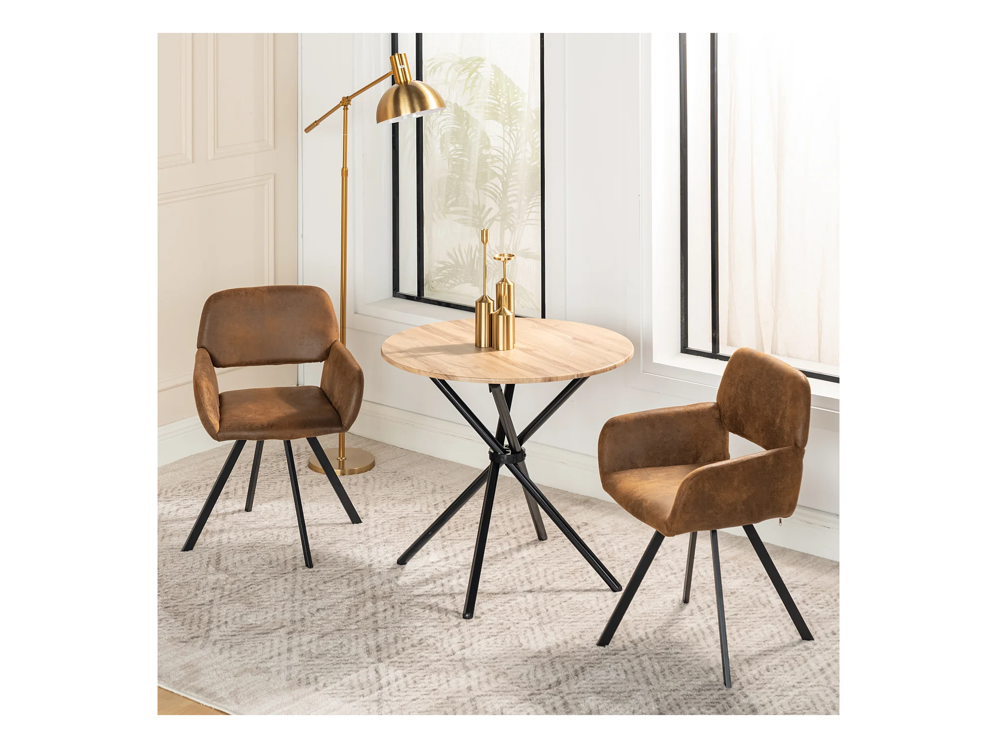 URBAN MEUBLE Ensemble table et 2 pivotantes chaises de salle à manger style industriel FONTANA KD 80CM DARK+CALIFORNIA KD SUEDE BROWN SWIVEL