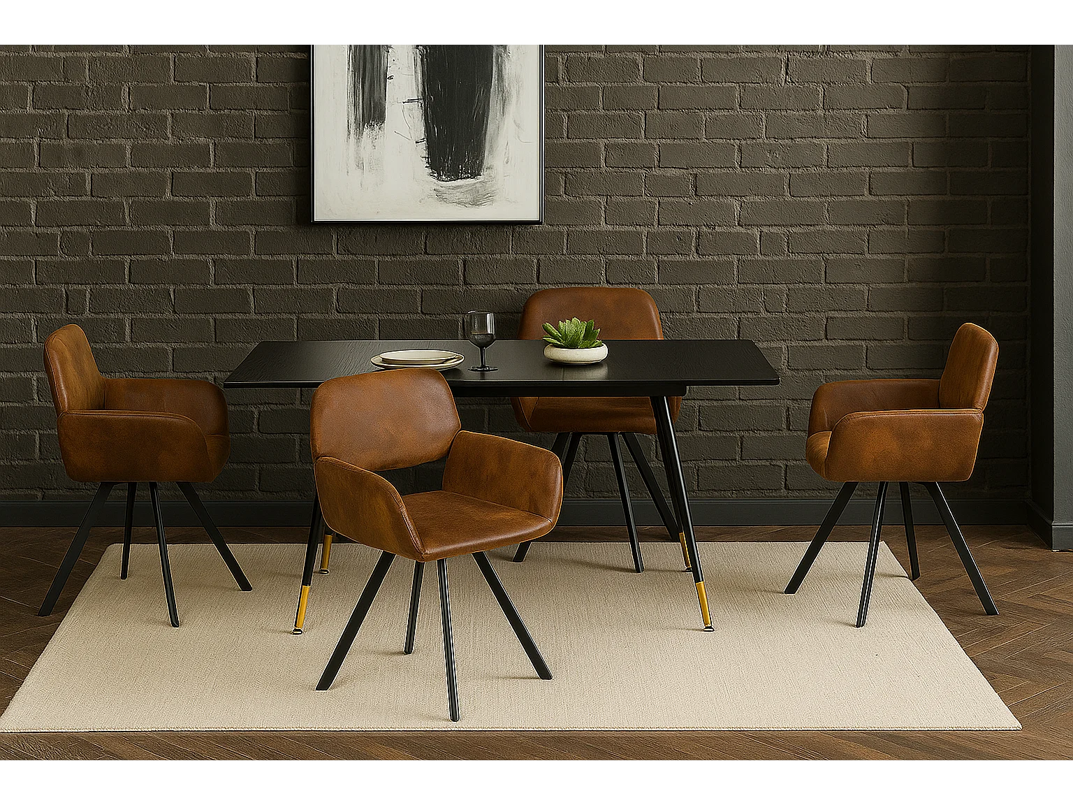 URBAN MEUBLE Ensemble table extensible bois foncé et 4 chaises suède brun