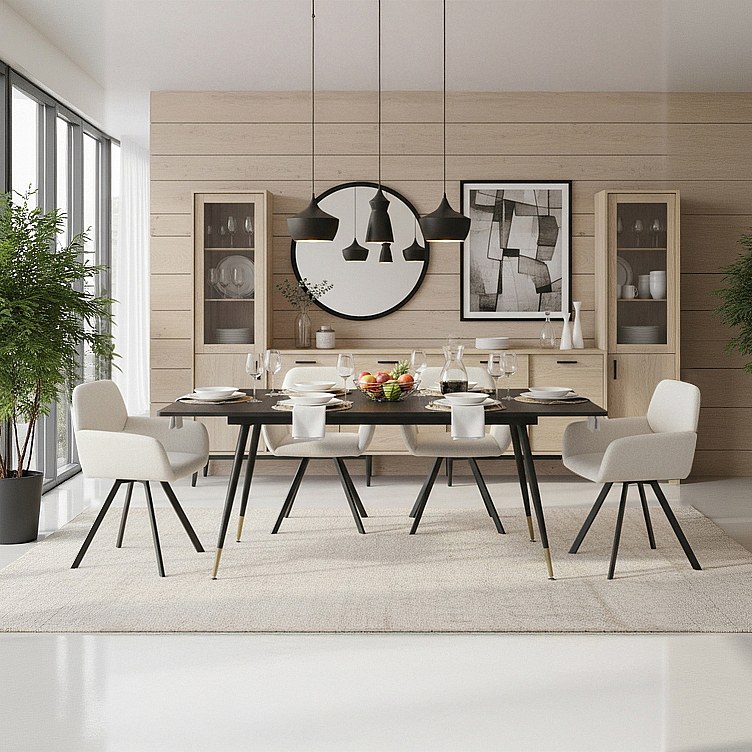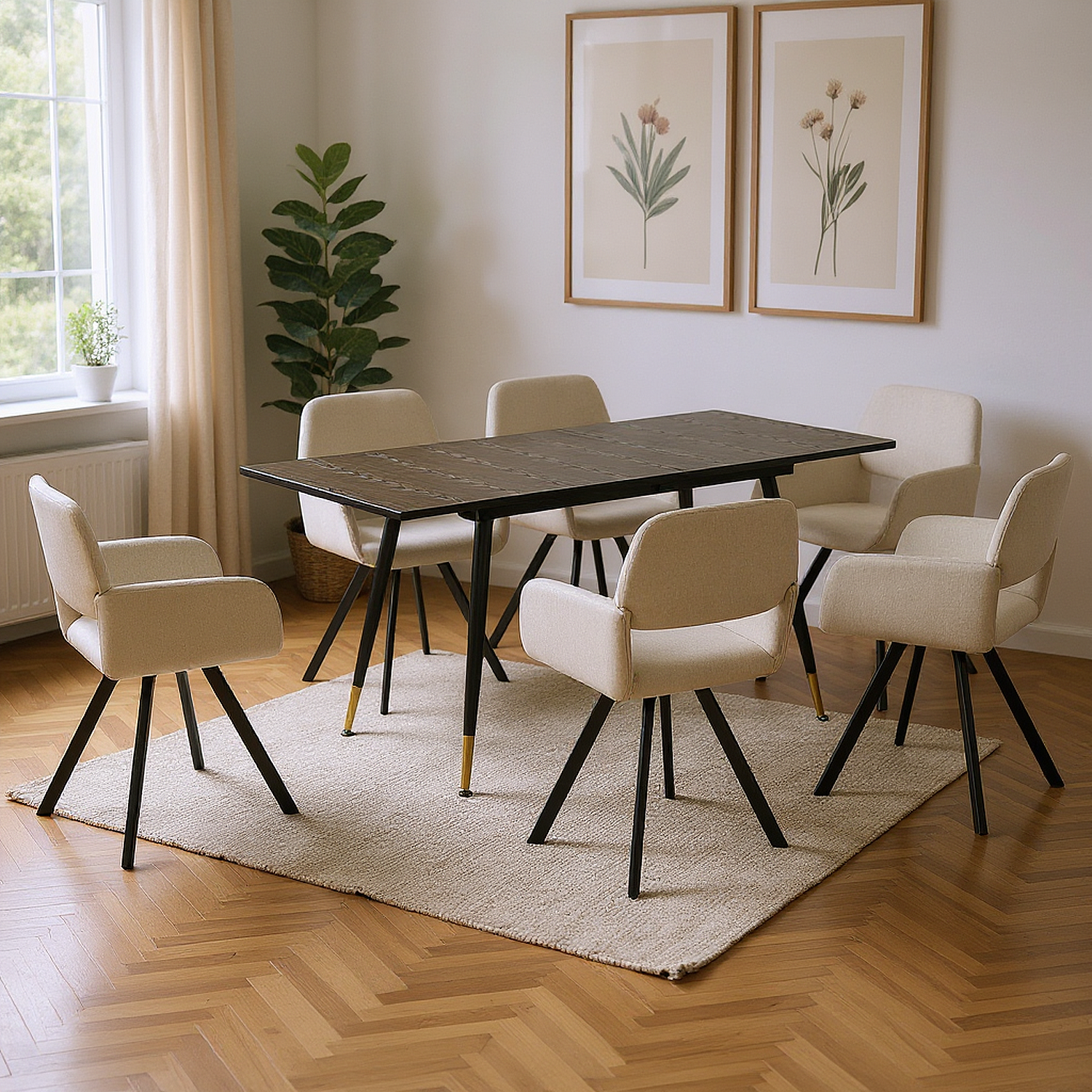 URBAN MEUBLE Ensemble table extensible bois noir et 4 chaises pivotantes beige