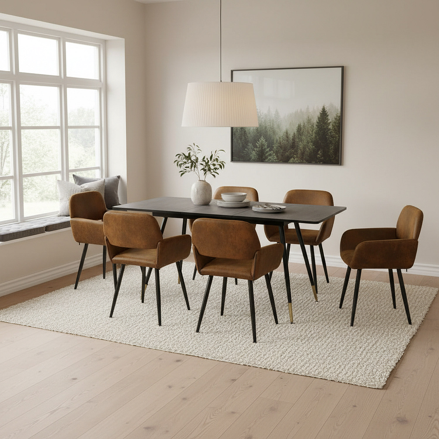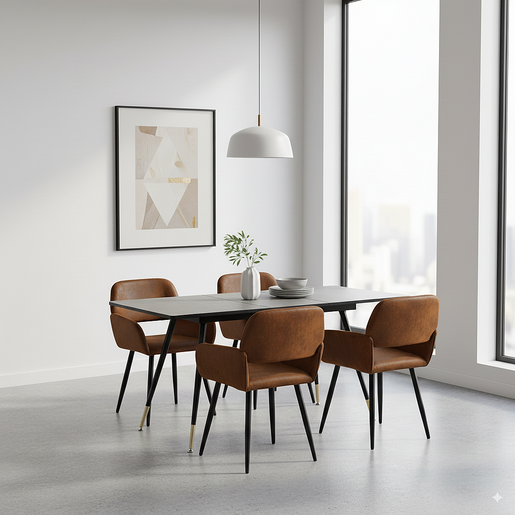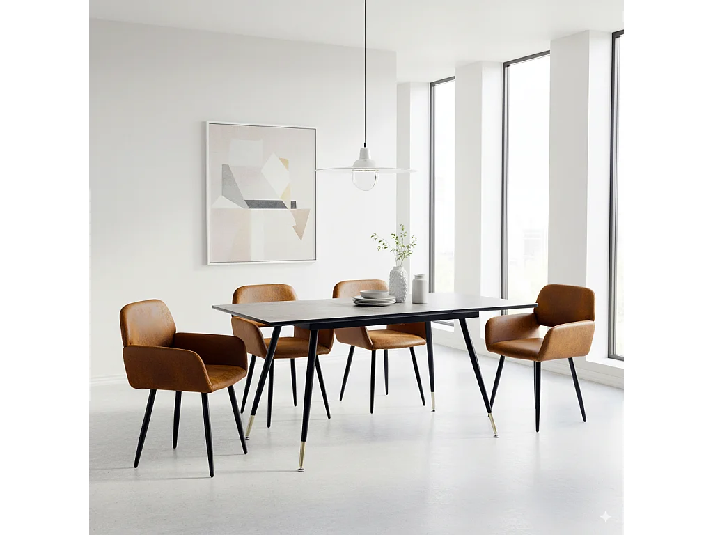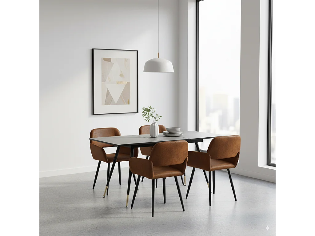URBAN MEUBLE Ensemble table extensible effet bois noire 120-160 et 4 chaises style scandinave retro