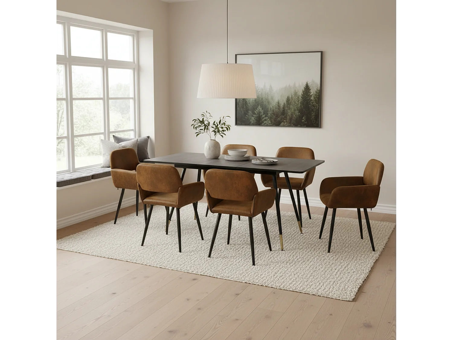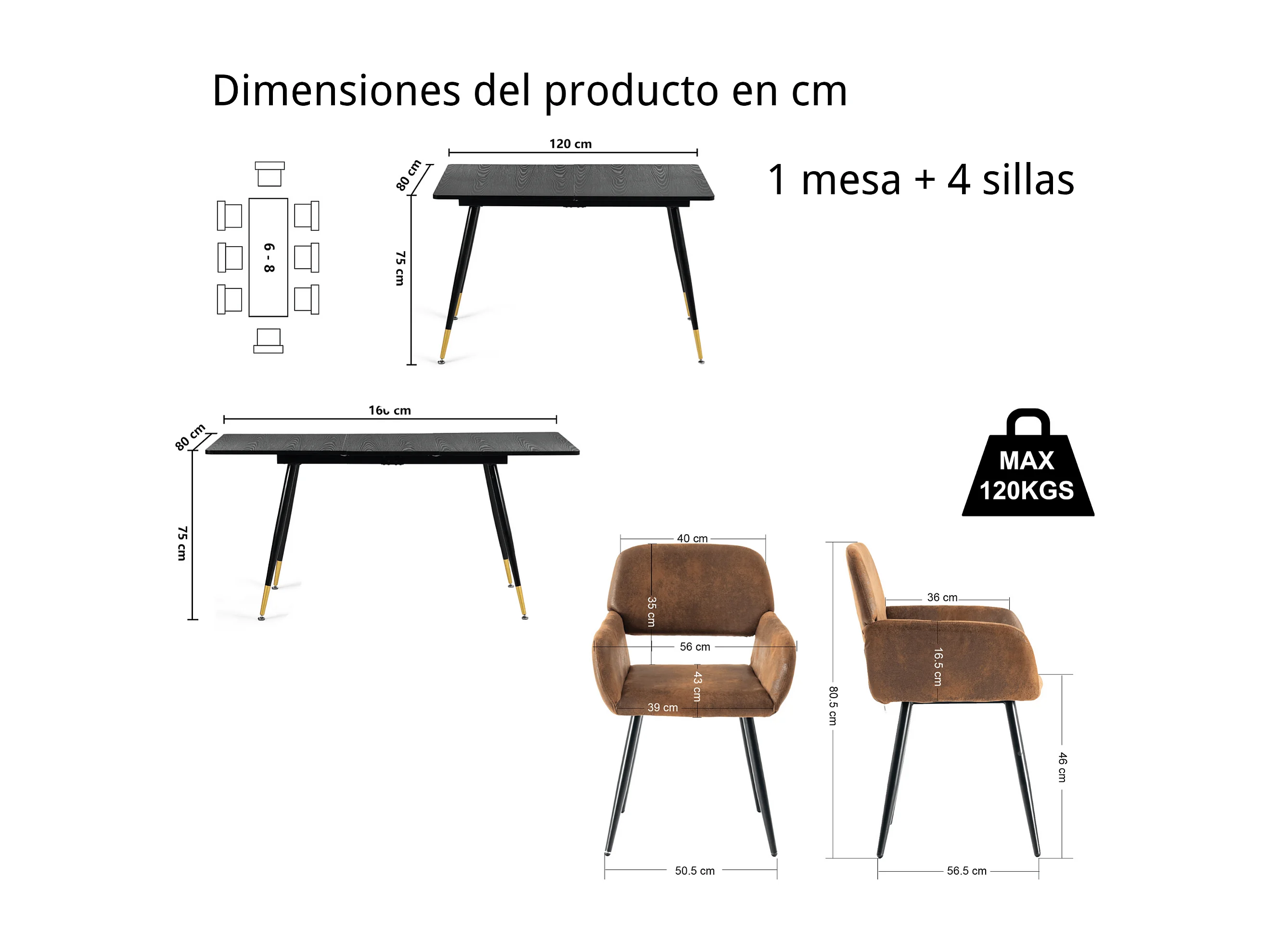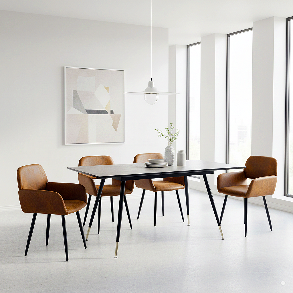 URBAN MEUBLE Ensemble table extensible effet bois noire 120-160 et 4 chaises style scandinave retro