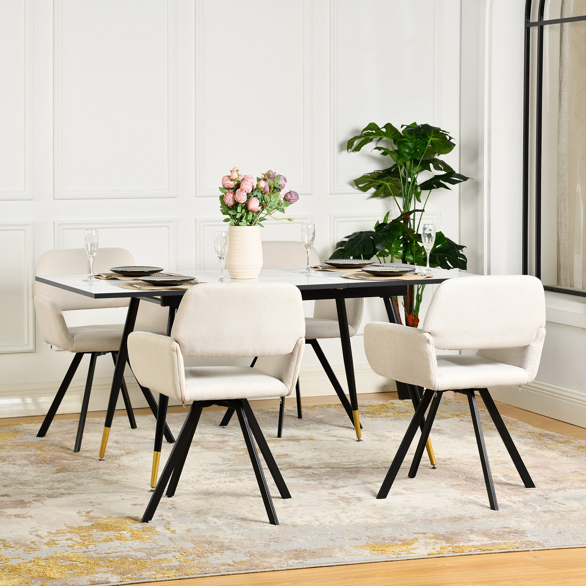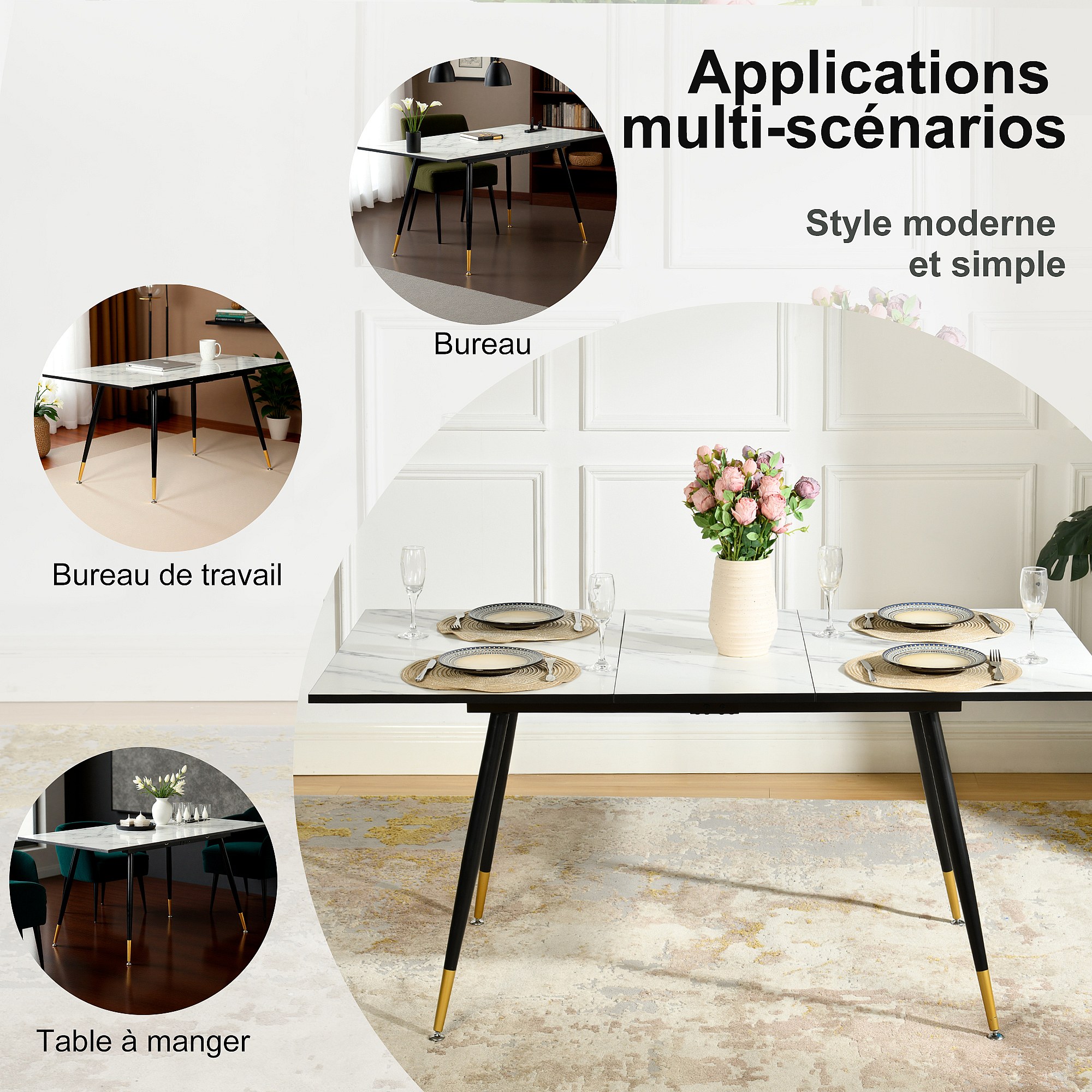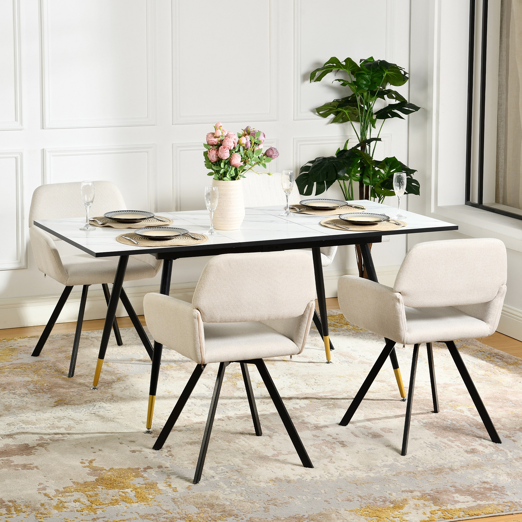 URBAN MEUBLE Ensemble table extensible effet marbre blanc et 4 chaises beige pivotantes