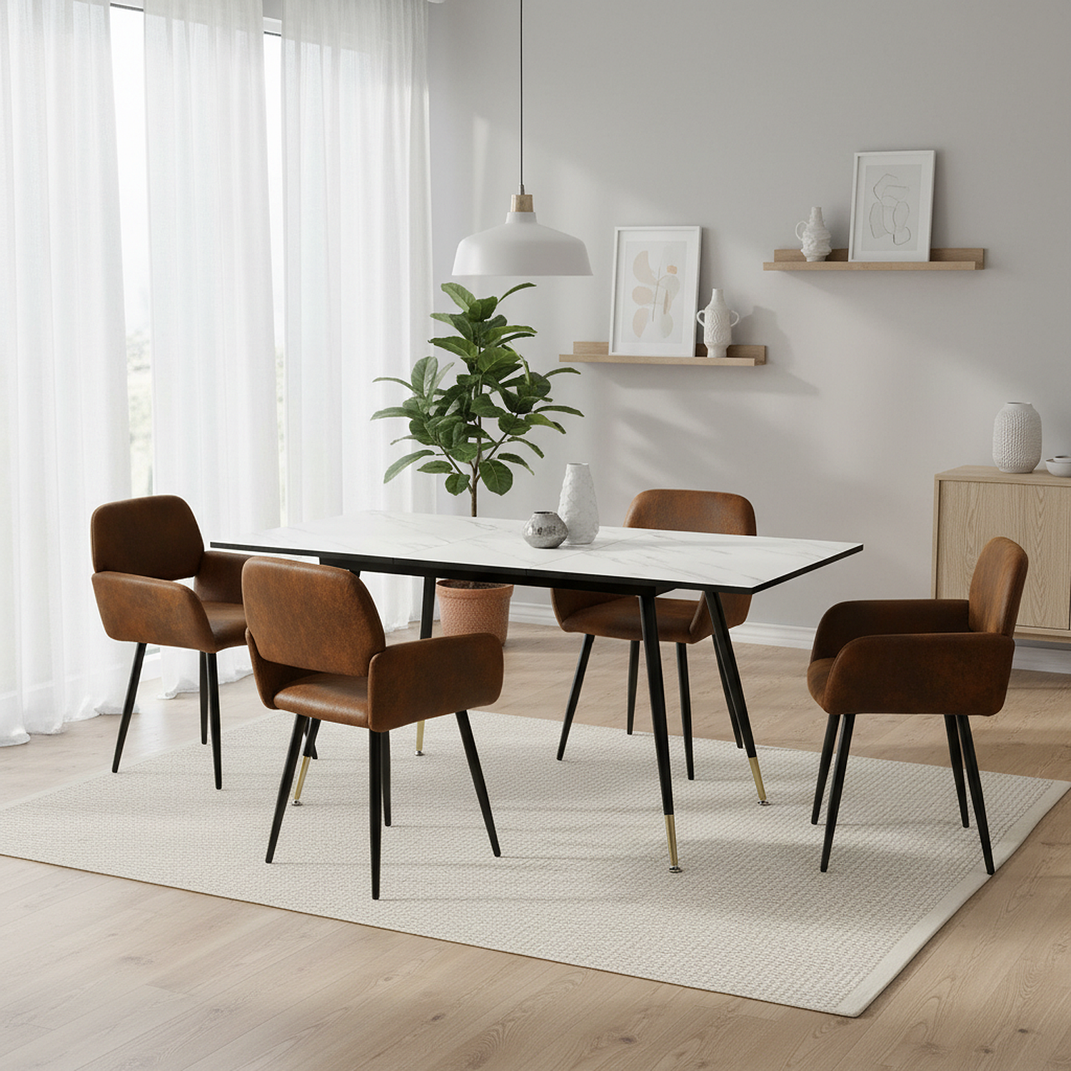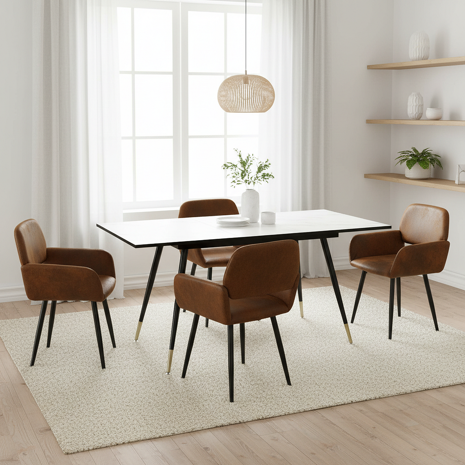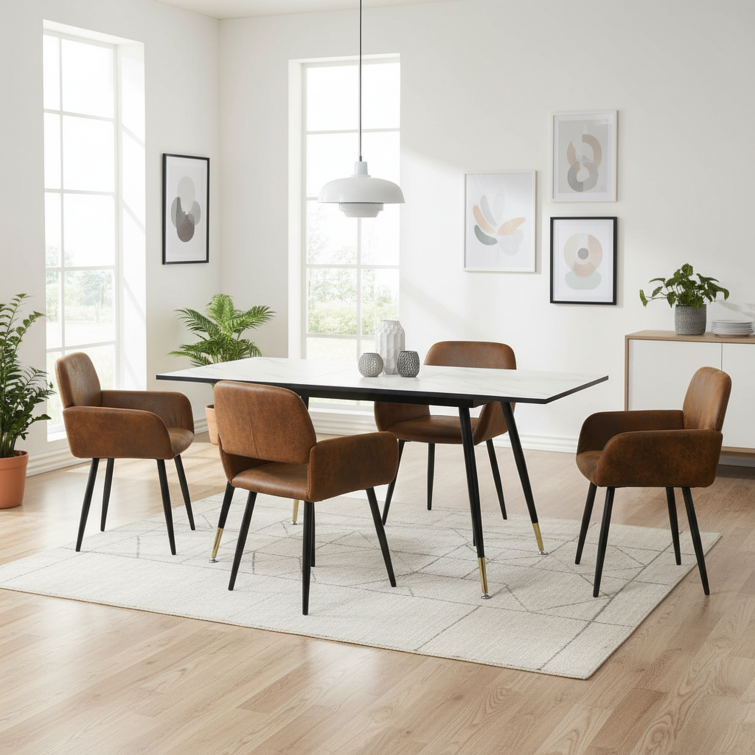 URBAN MEUBLE Ensemble table extensible marbre blanc et 4 chaises suède brun