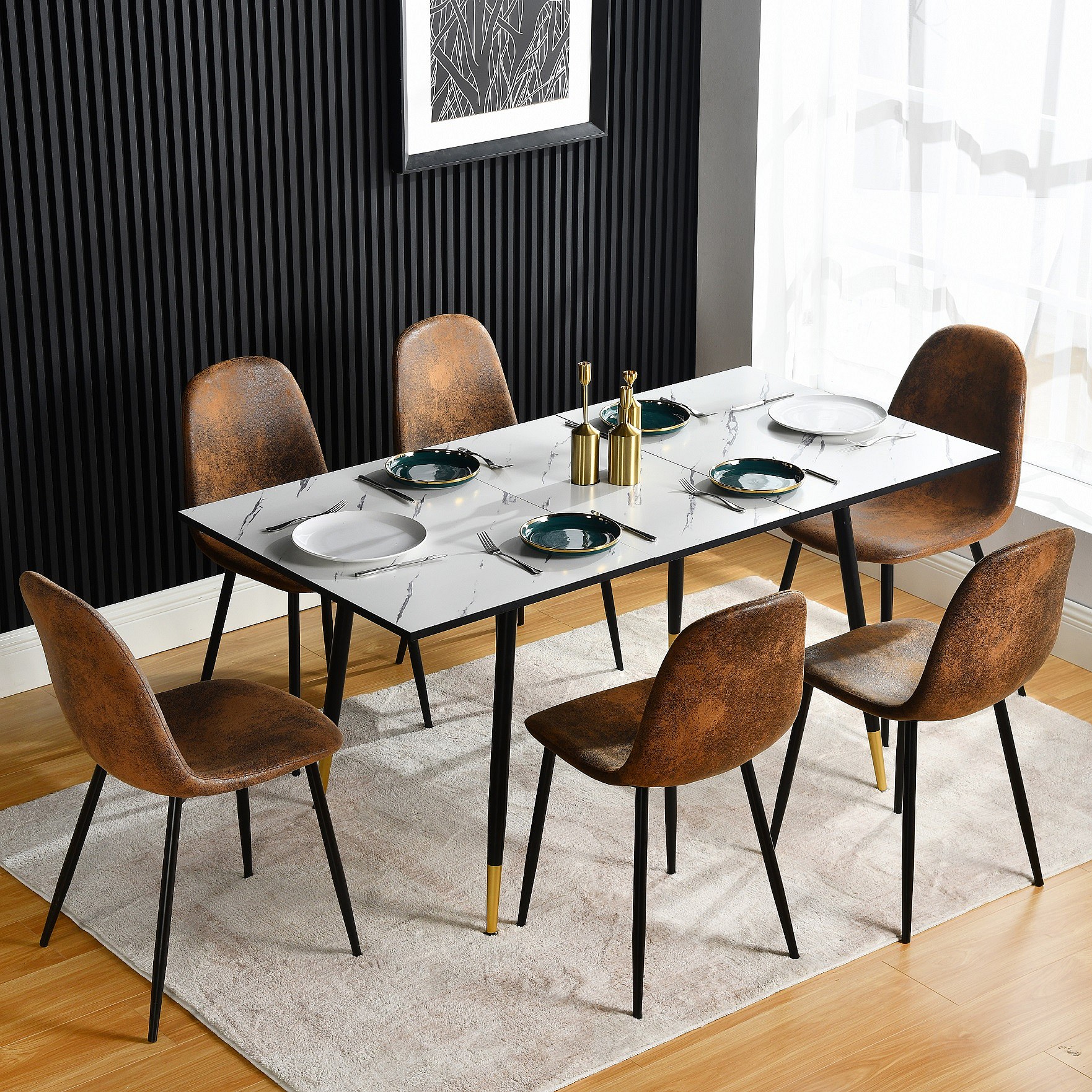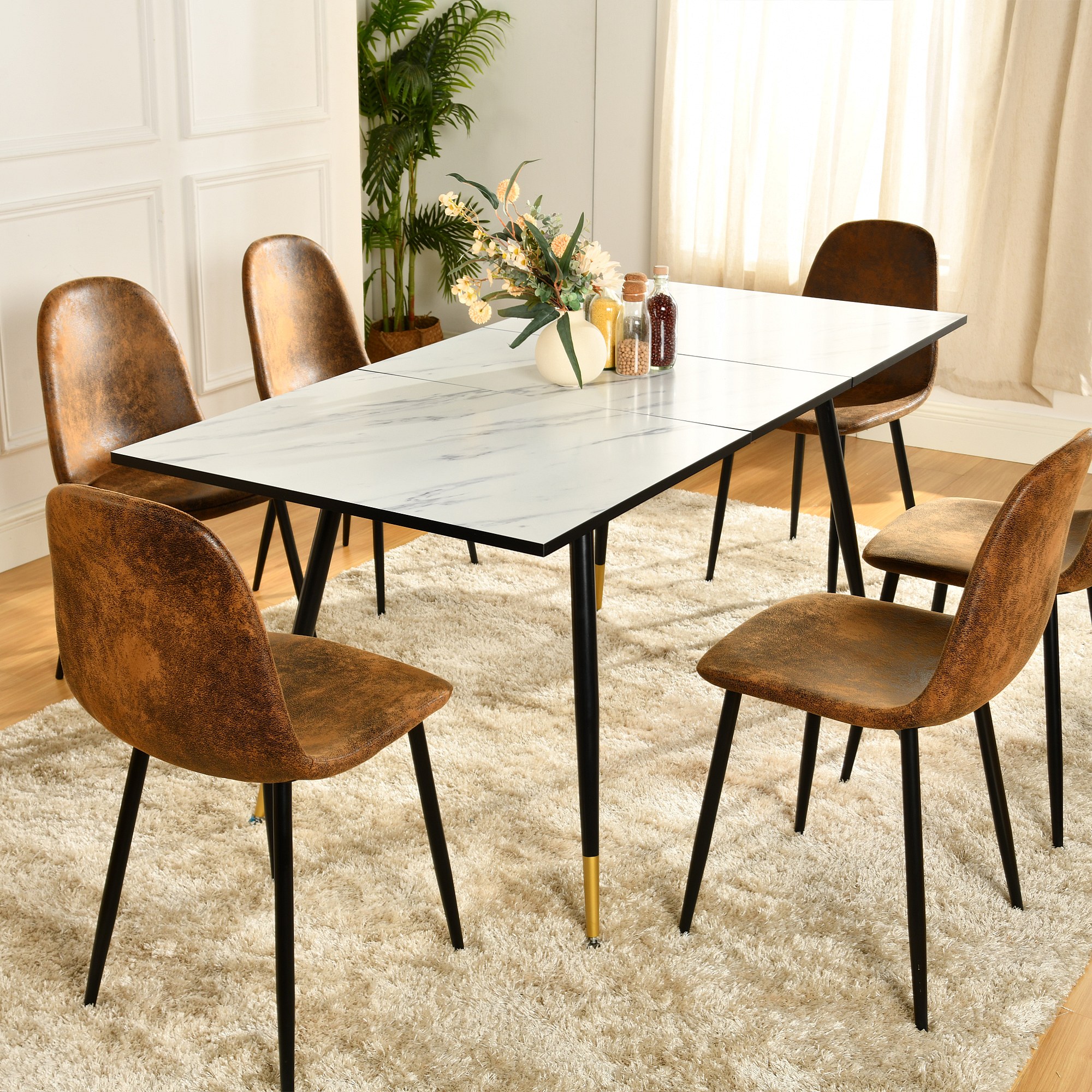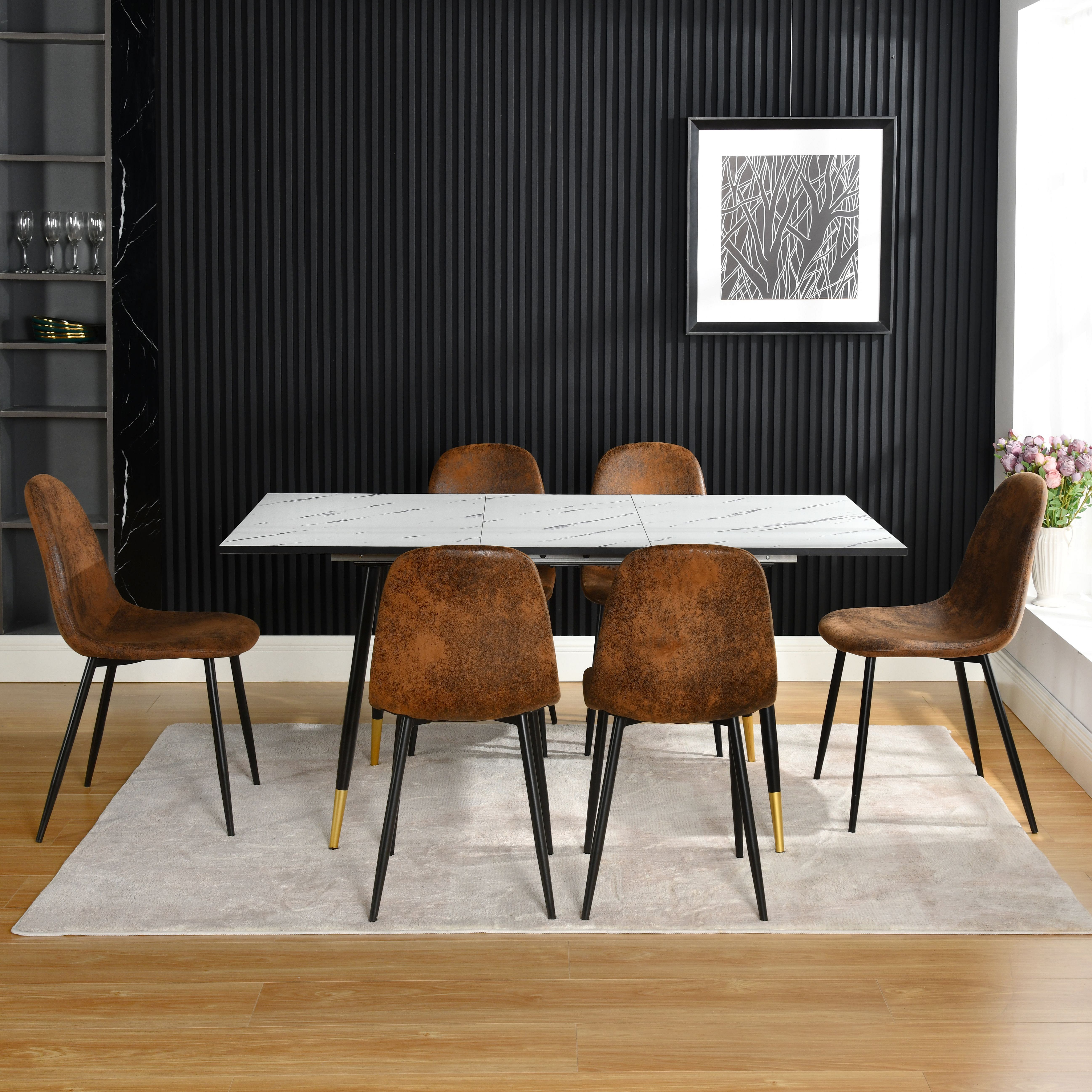 URBAN MEUBLE Ensemble table extensible marbre blanc et 6 chaises suède brun
