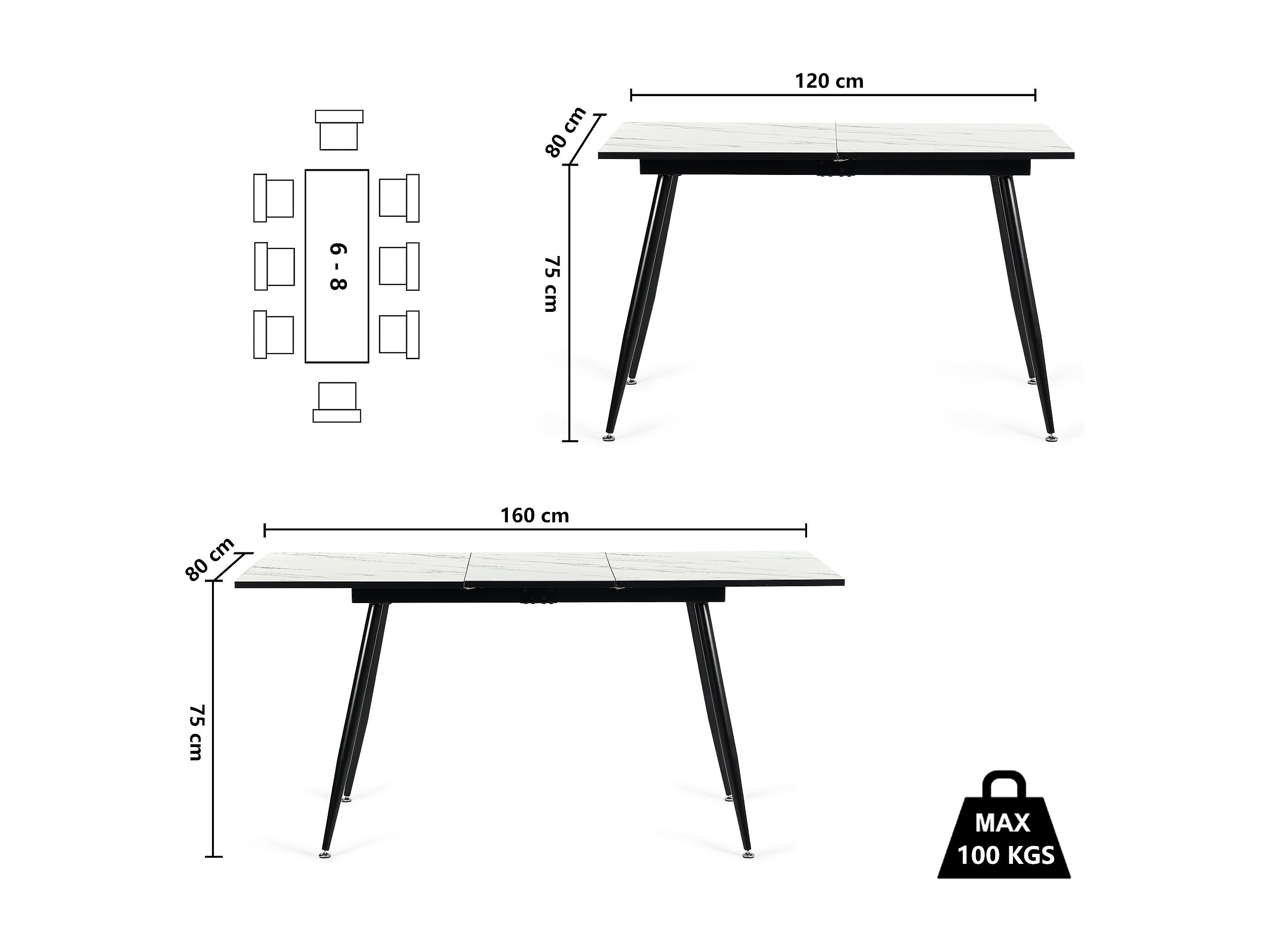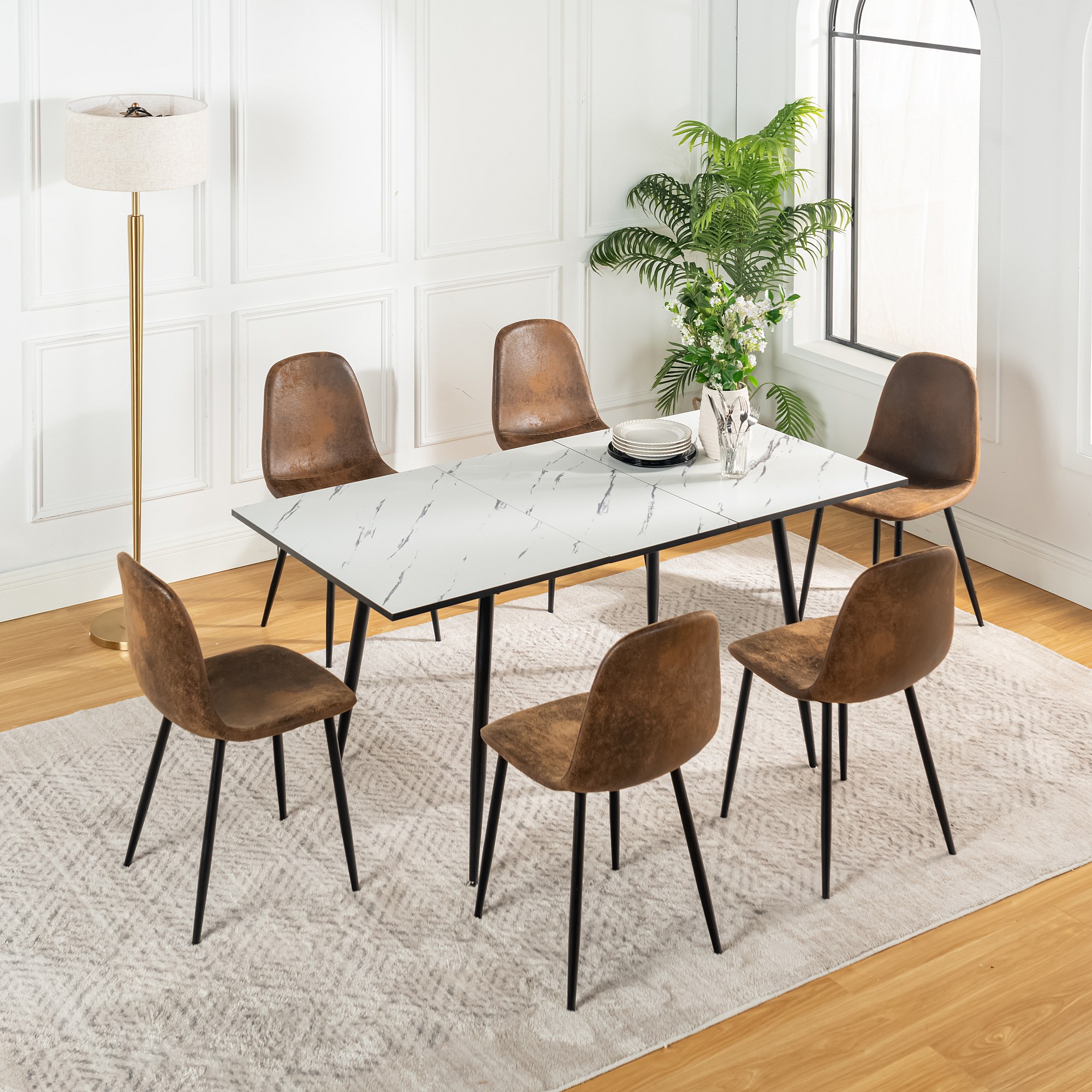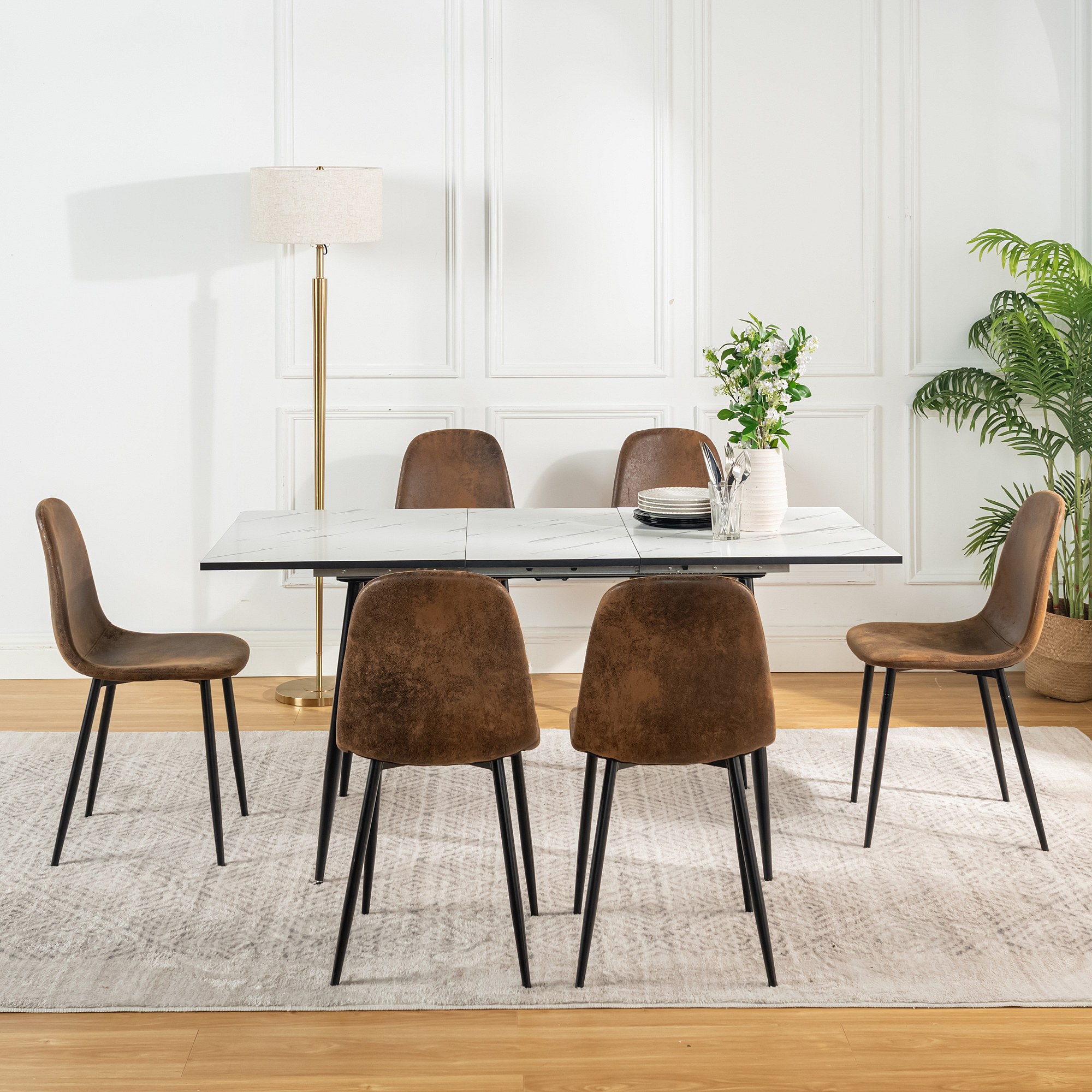 URBAN MEUBLE Ensemble table extensible marbre blanc et 6 chaises suède brun