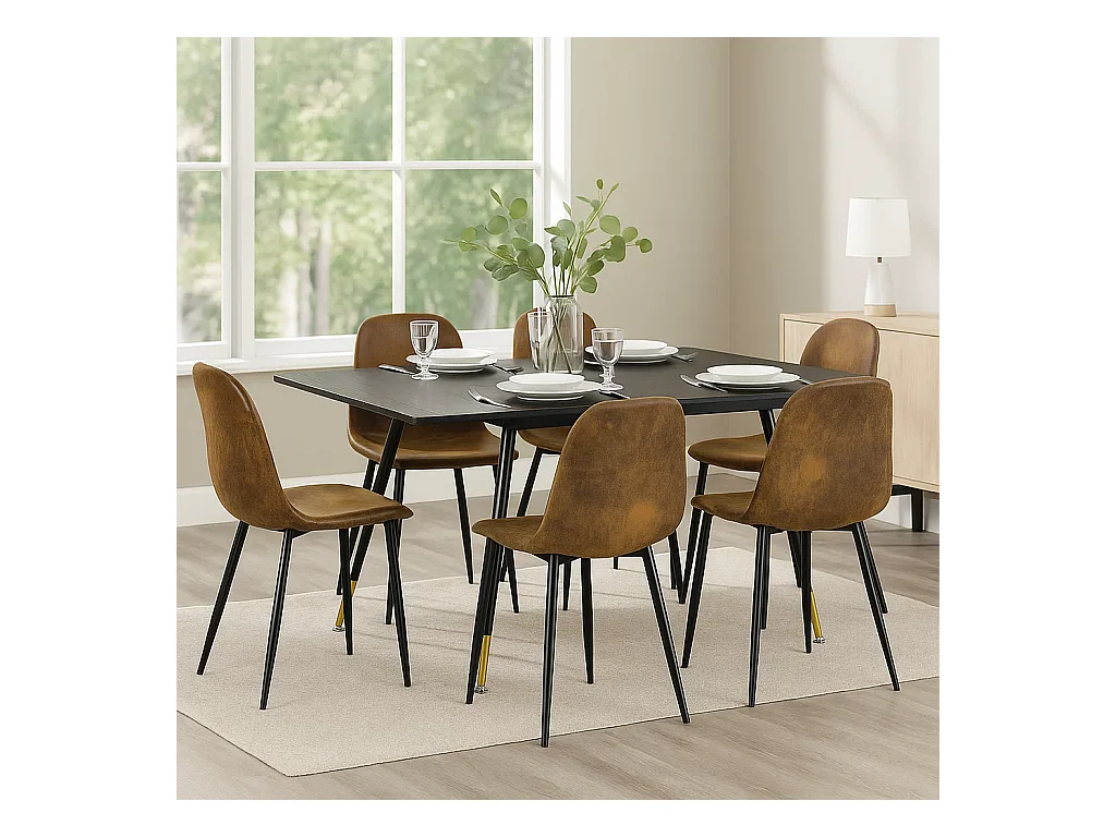 URBAN MEUBLE Ensemble table extensible noir effet bois 120-160 et 4 chaises style scandinave retro